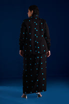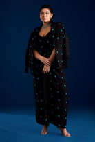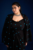 Dress to impress in this amazingly stylish bandhej wrap dress with blazer set.Made in soft modal cotton satin.Tie the waist in a twist to get a flatering drape.Features a hand tie and dyed bandhej.The dress has an elasticated waist for a better fit.The Blazer is double breasted with a notch collar with front buttoned closure.It has two front welt pockets and full sleeves with elasticated cuffs.This set is the perfect outfit for a night out."