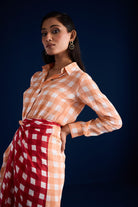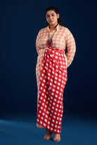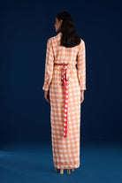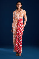 Dress to impress in this amazingly stylish block printed wrap dress.Made in viscose crepe.Tie the waist in a twist to get a flatering drape.Features a fun checkered print and a contrast colour print.The dress has an elasticated waist for a better fit.This dress is the perfect outfit to take from day to night.