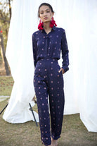 It is the season of co-ords. Our Bandhej shirt features a beautiful hand tie and dye print, shirt collar, placket and cuffs highlighted with contrast crochet lace and a comfort fit. Adding to the comfort and style, it is teamed up with matching pants with elastic back for comfort, pin tucks on the princess line, rolled up hem, contrast seam finishes on the bottom and side seam pockets. Perfect for smart casuals, this one works from summer to fall.