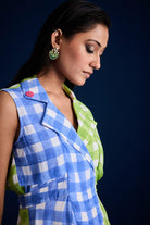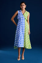 A simple, yet elegant design that will be sure to catch your eye. Featuring elegant colour block, flared trench dress inspired by trench jacket.Hand block printed in Jaipur, Rajasthan.Made in Vegan Crepe.The dress features a double-breasted lapel collar highlighted with hand made crochet flowers.Closure: front zipper and button. It also features two side pockets