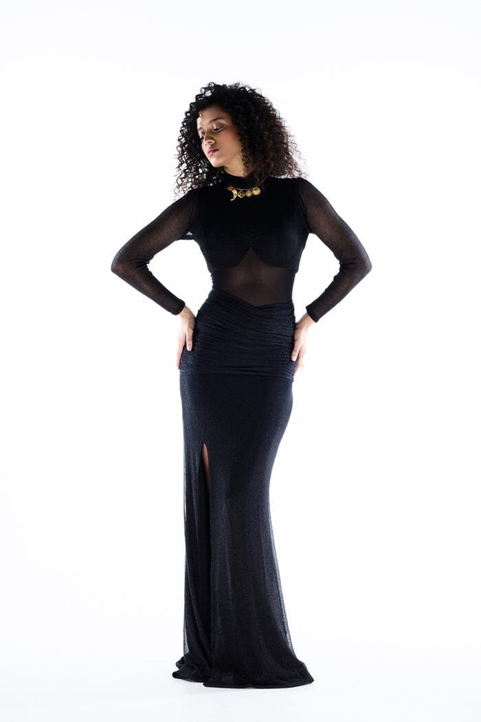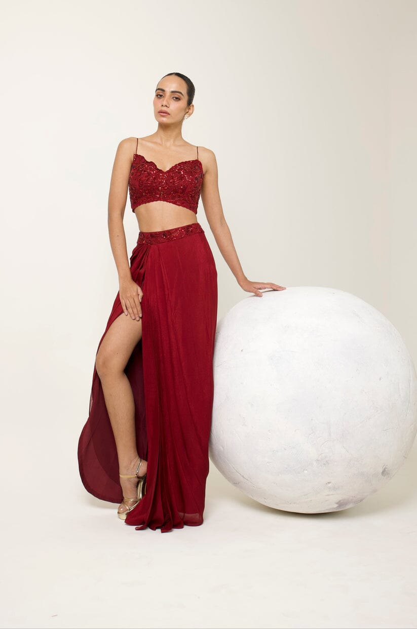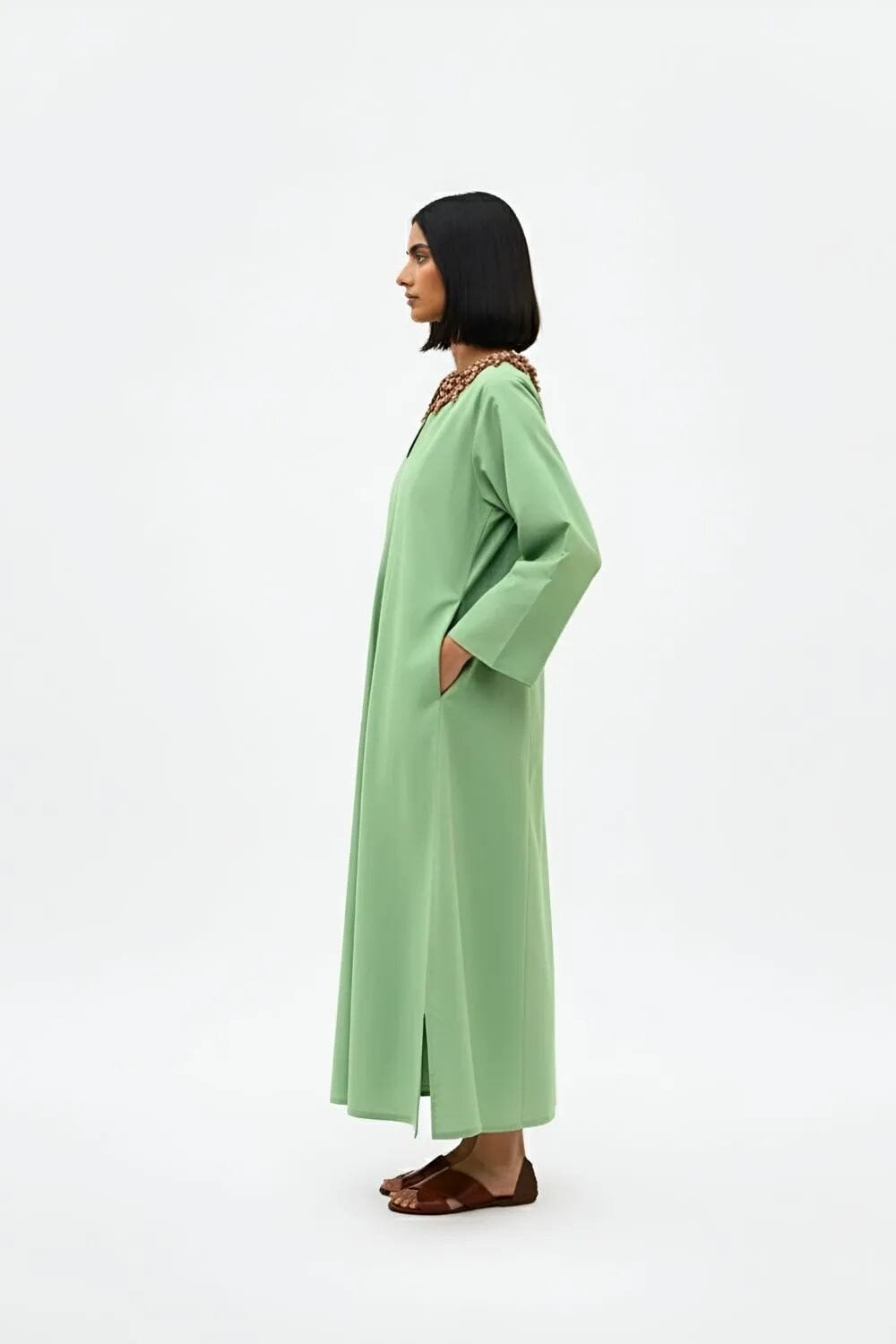 Asparagus Green-Tuscan Red Beaded Collar Maxi Dress