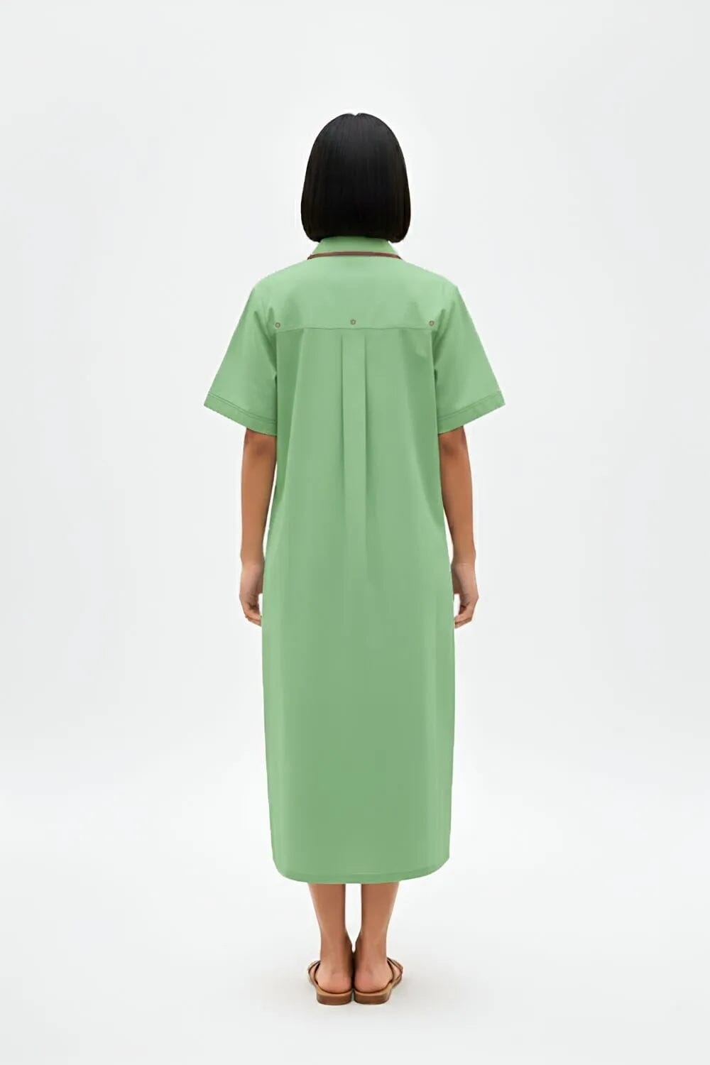 Asparagus Green-Tuscan Red Collared Stripe Dress
