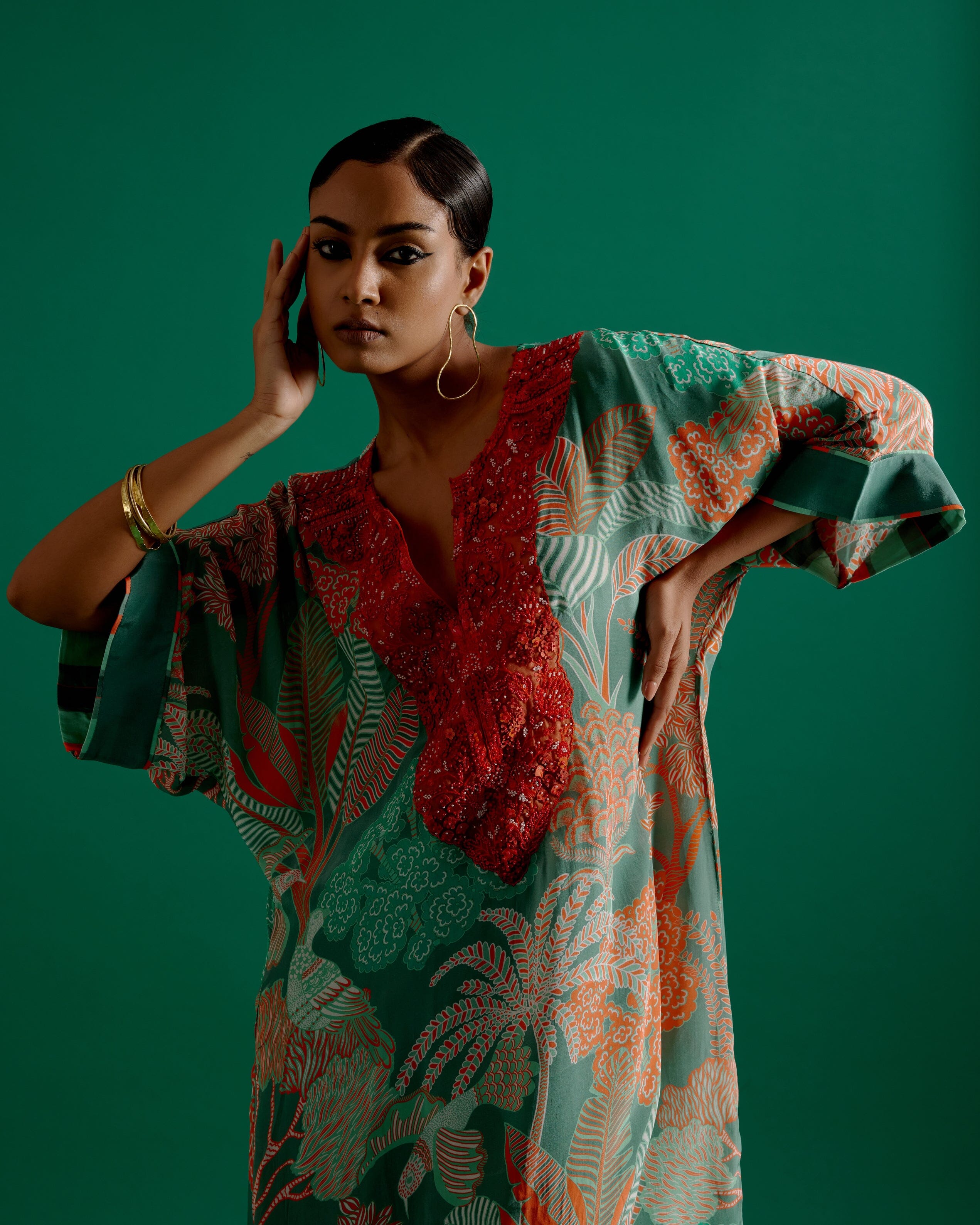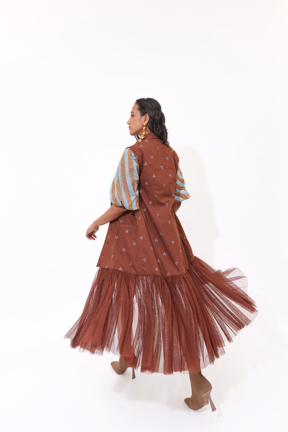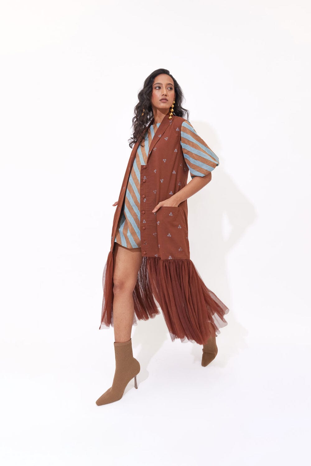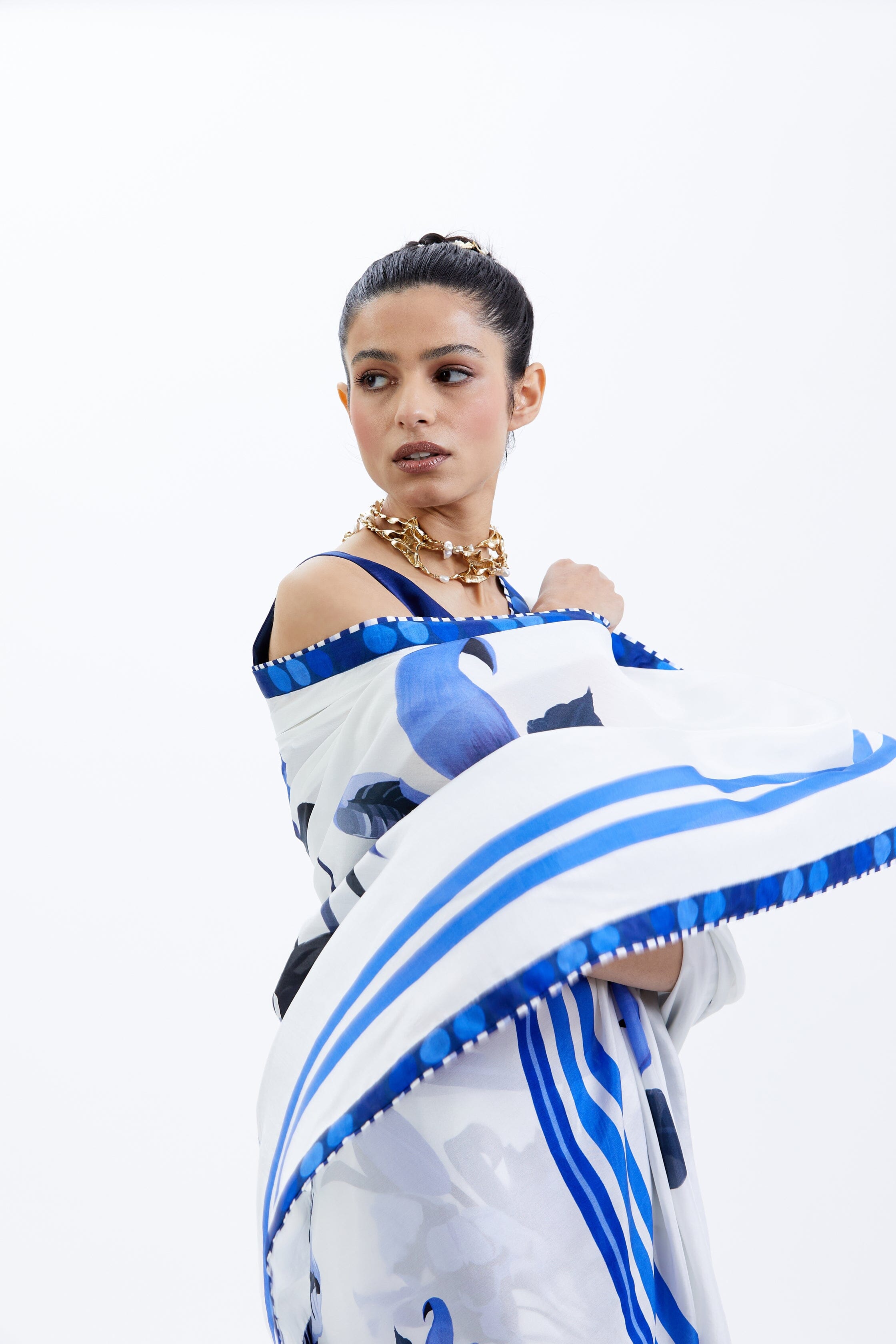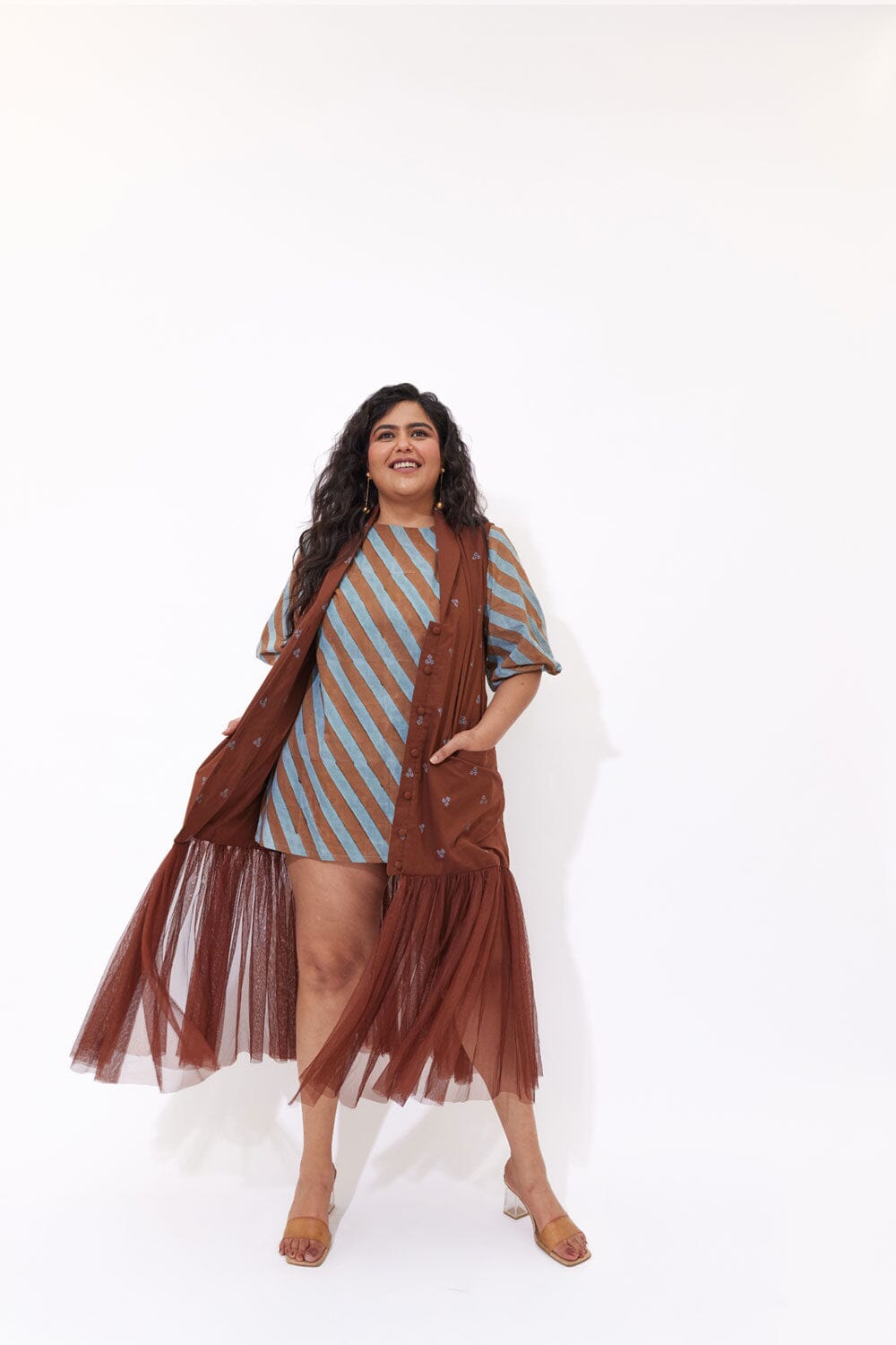 AZARIN BLOCKPRINTED BRALETTE AND FRILLY LONG SKIRT