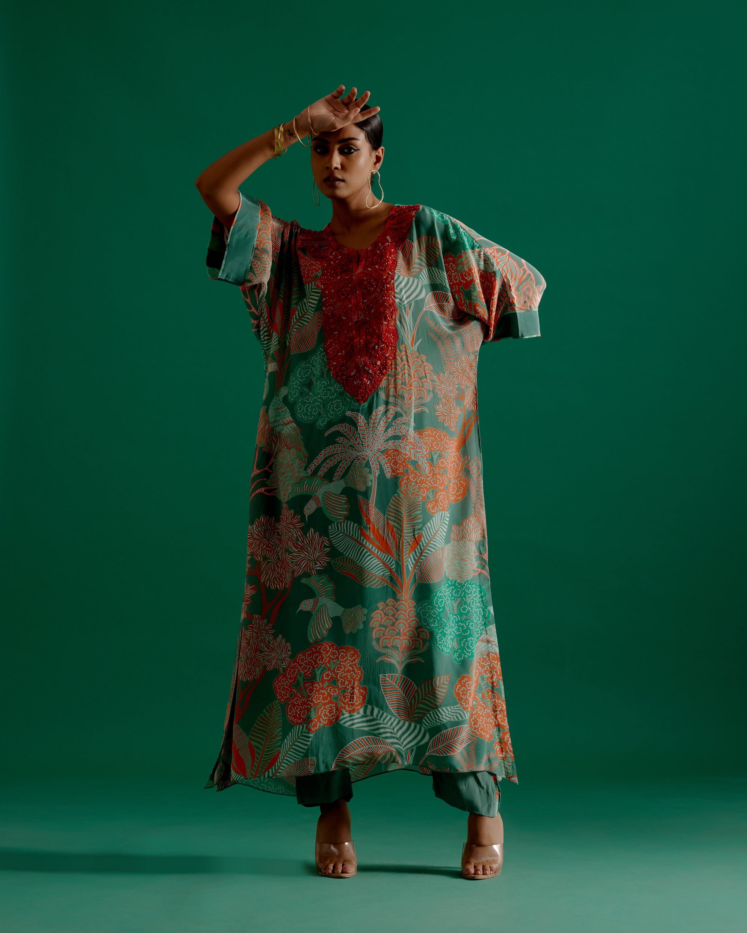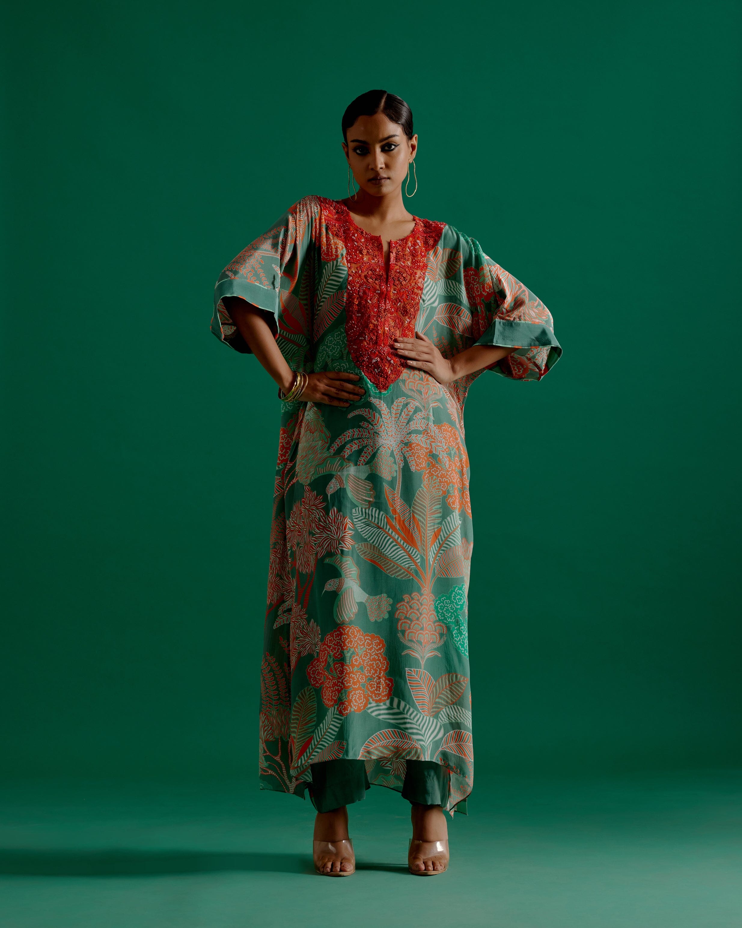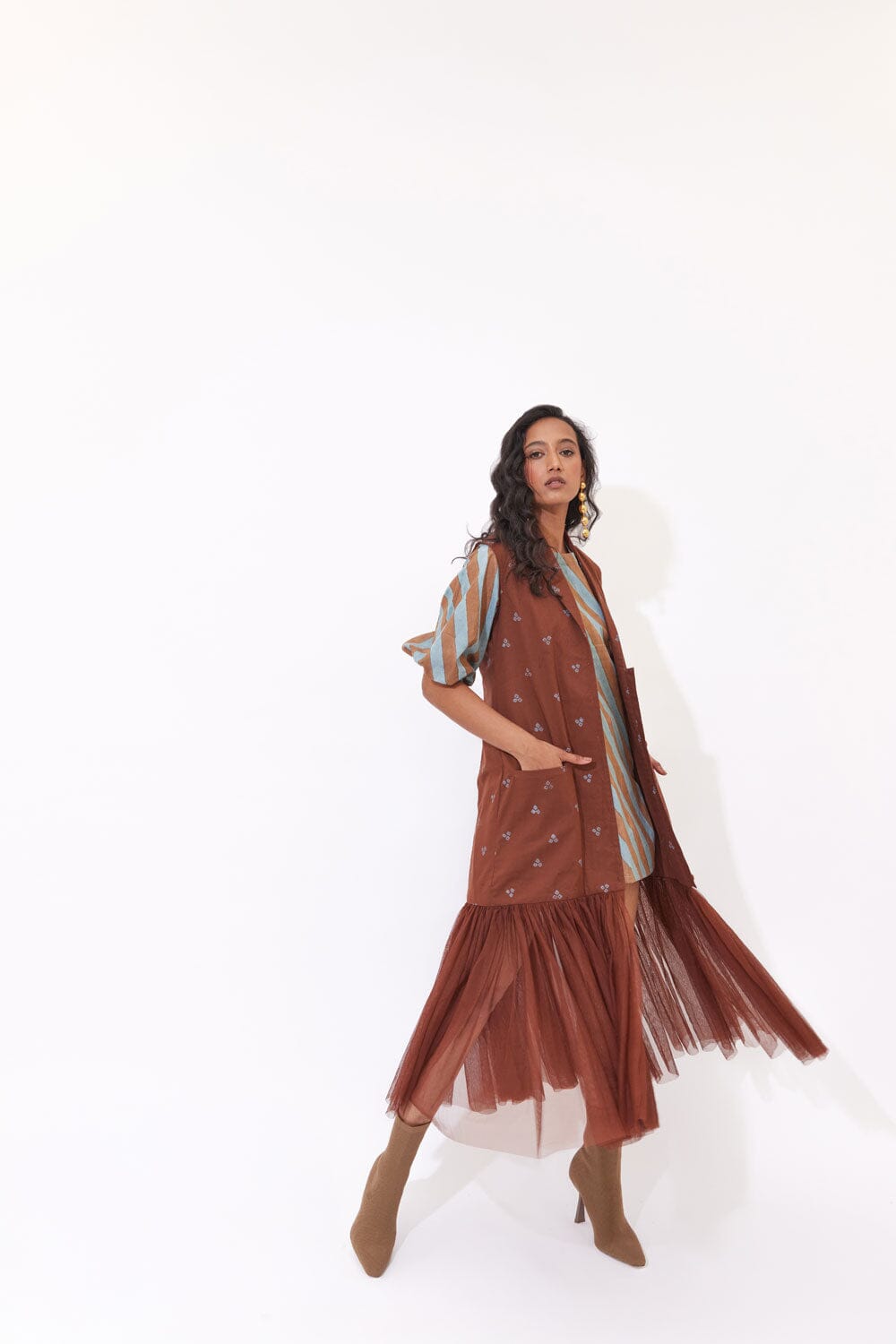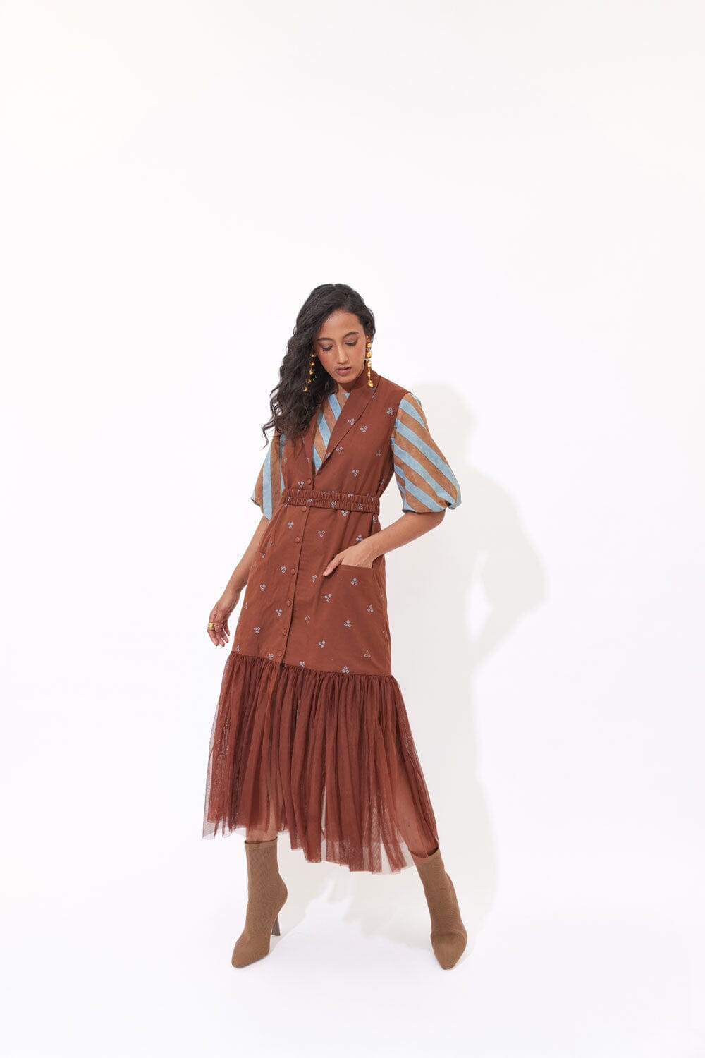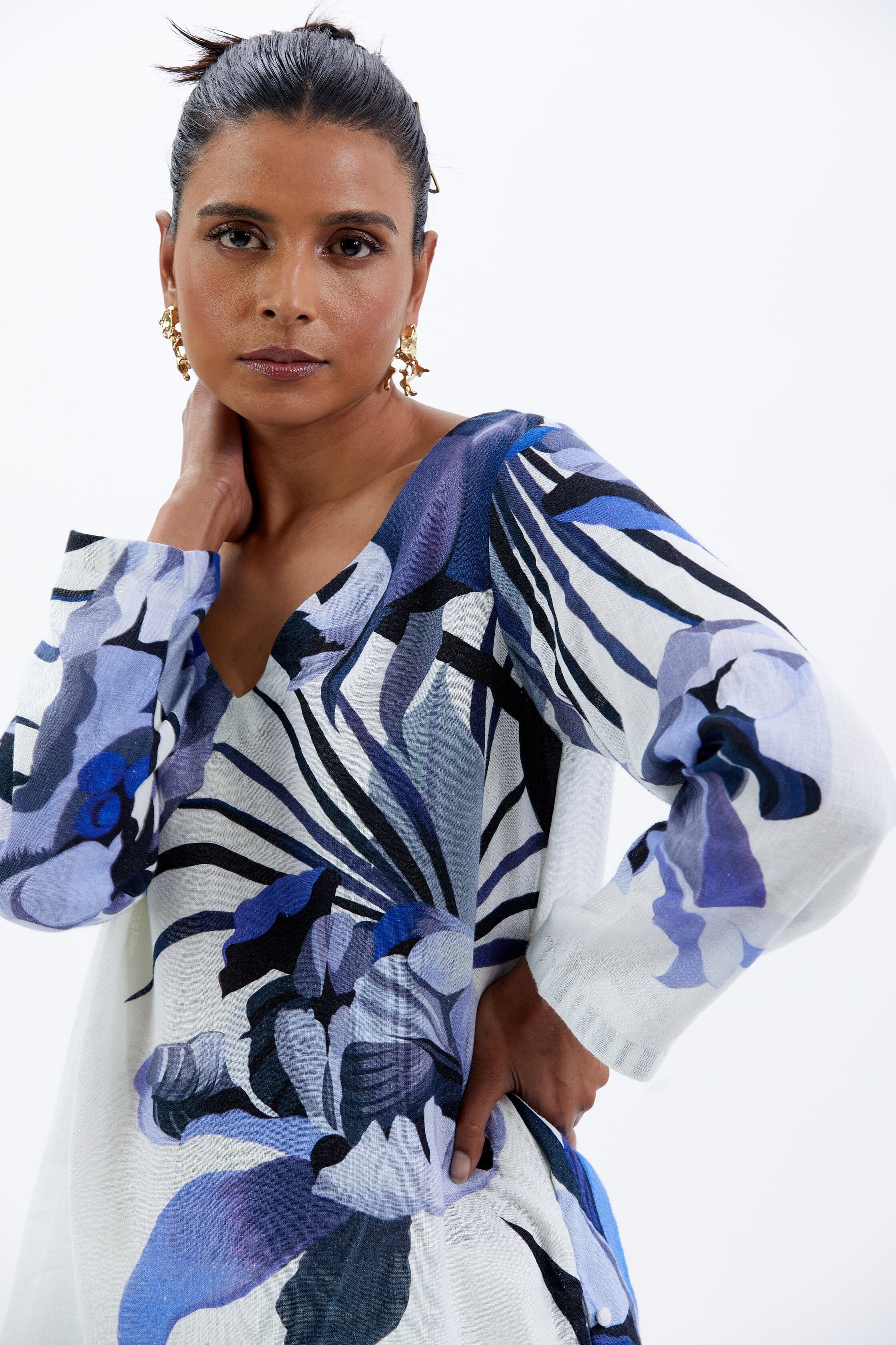 AZARIN BLOCKPRINTED BRALETTE AND FRILLY LONG SKIRT