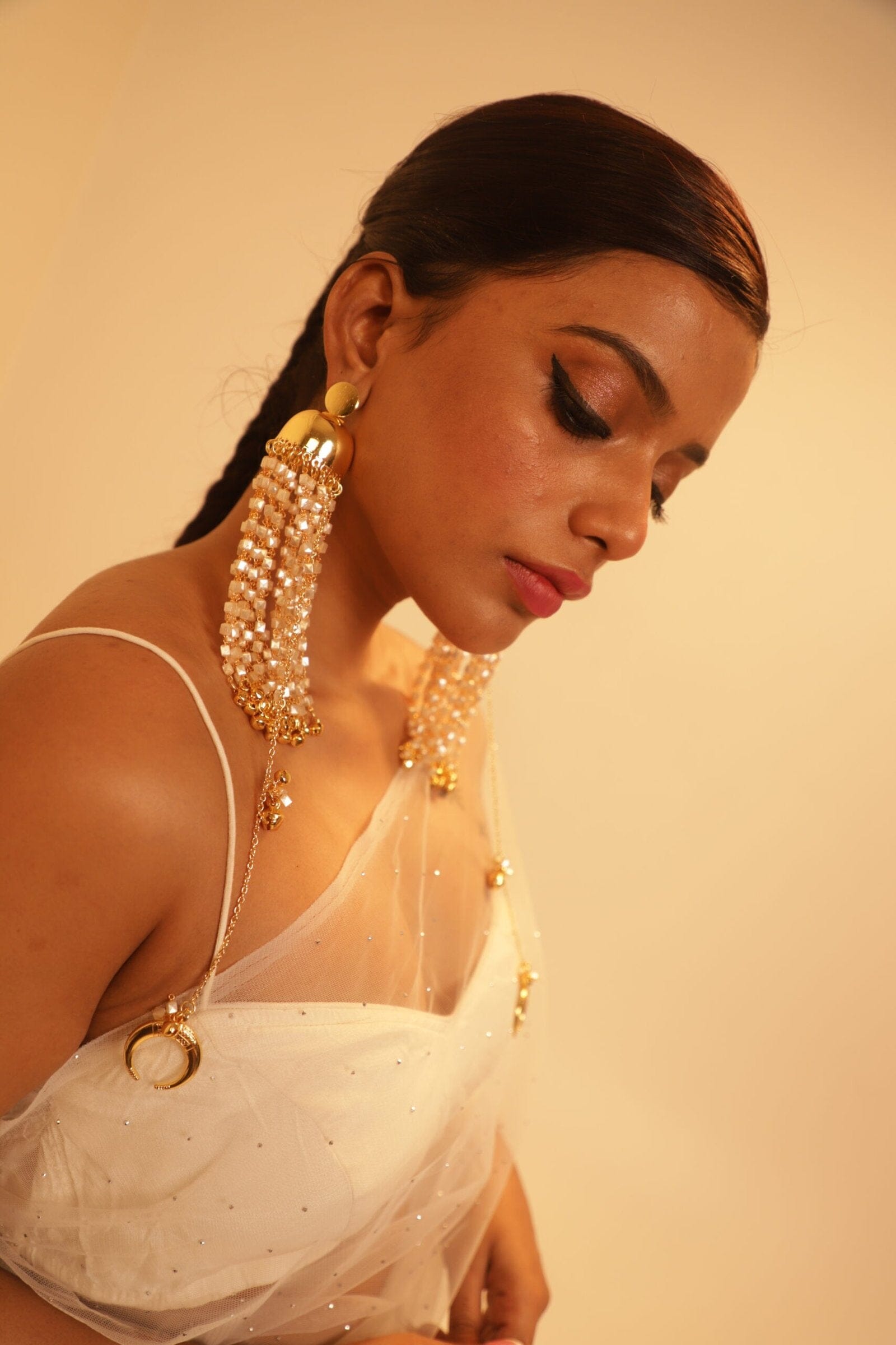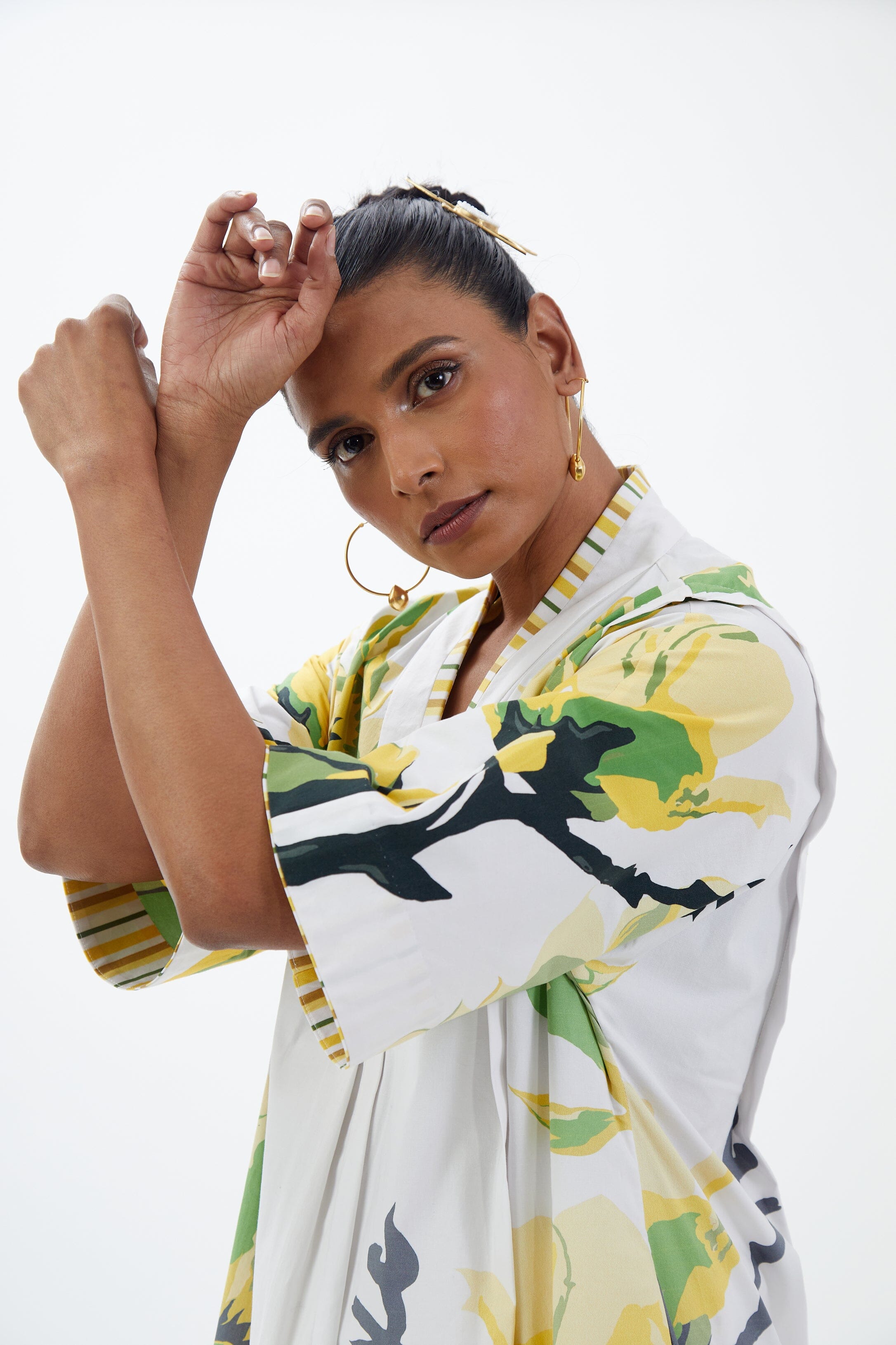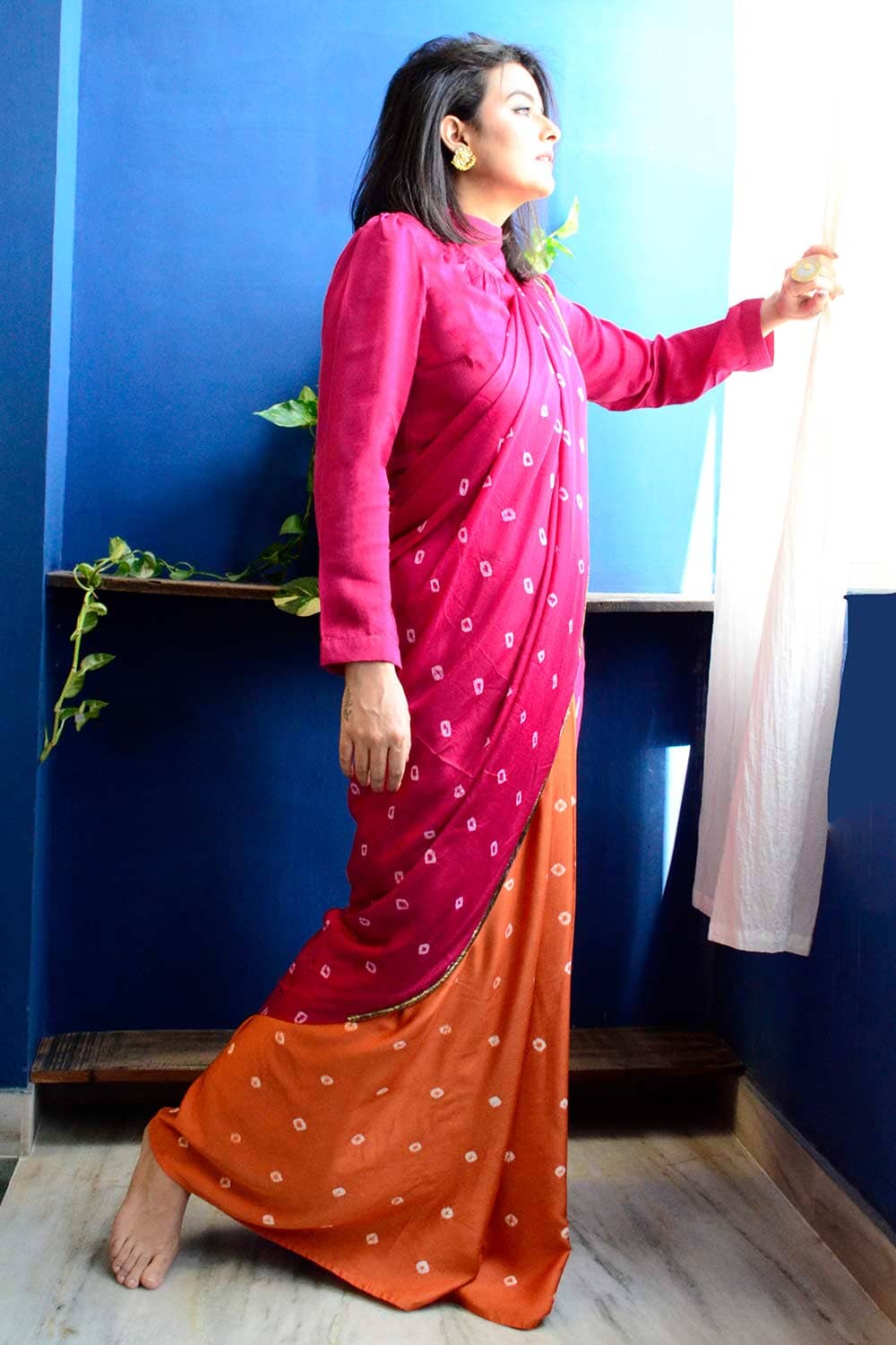 Bandhej Wrap Skirt With Lehriya Sleeves Crop Set