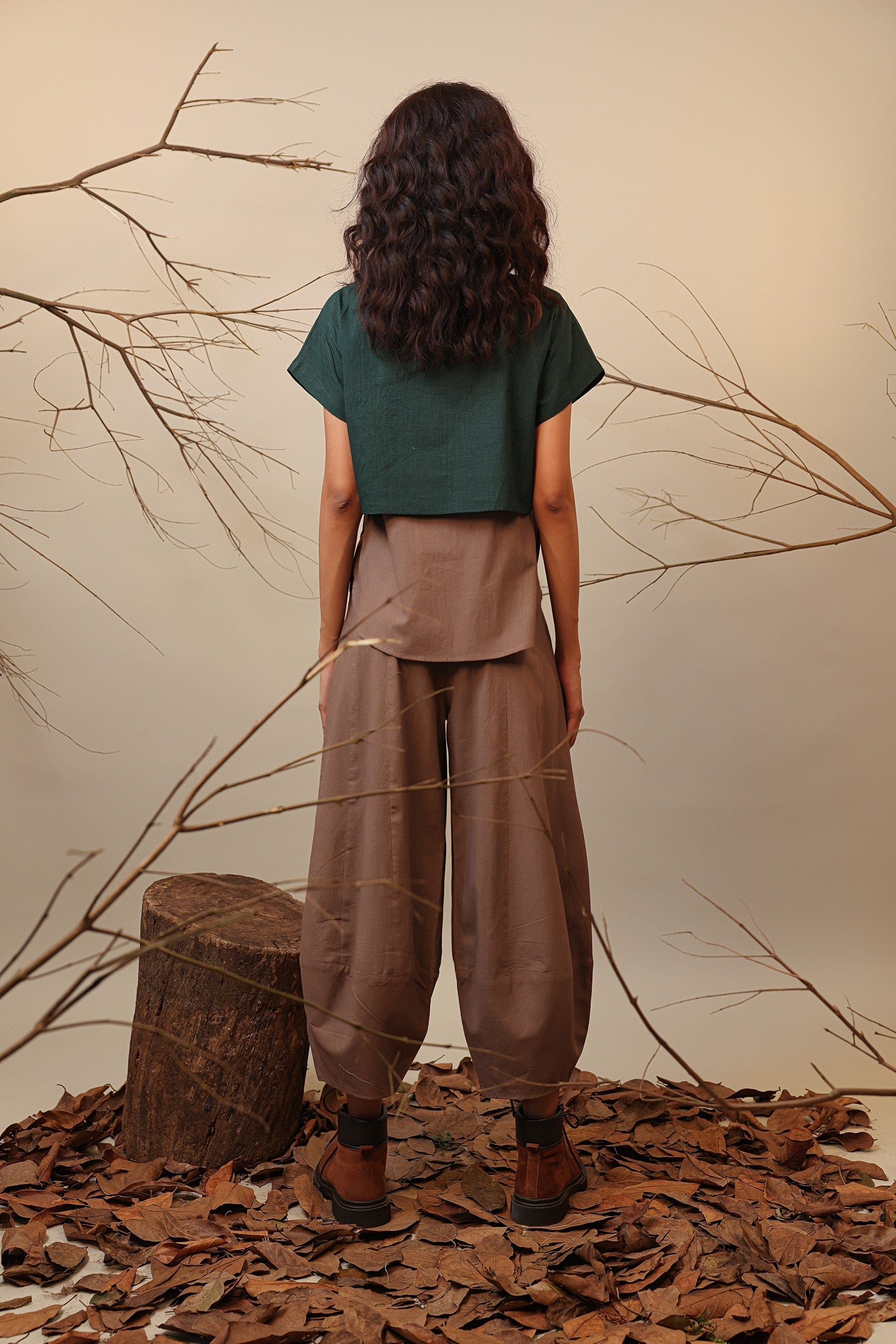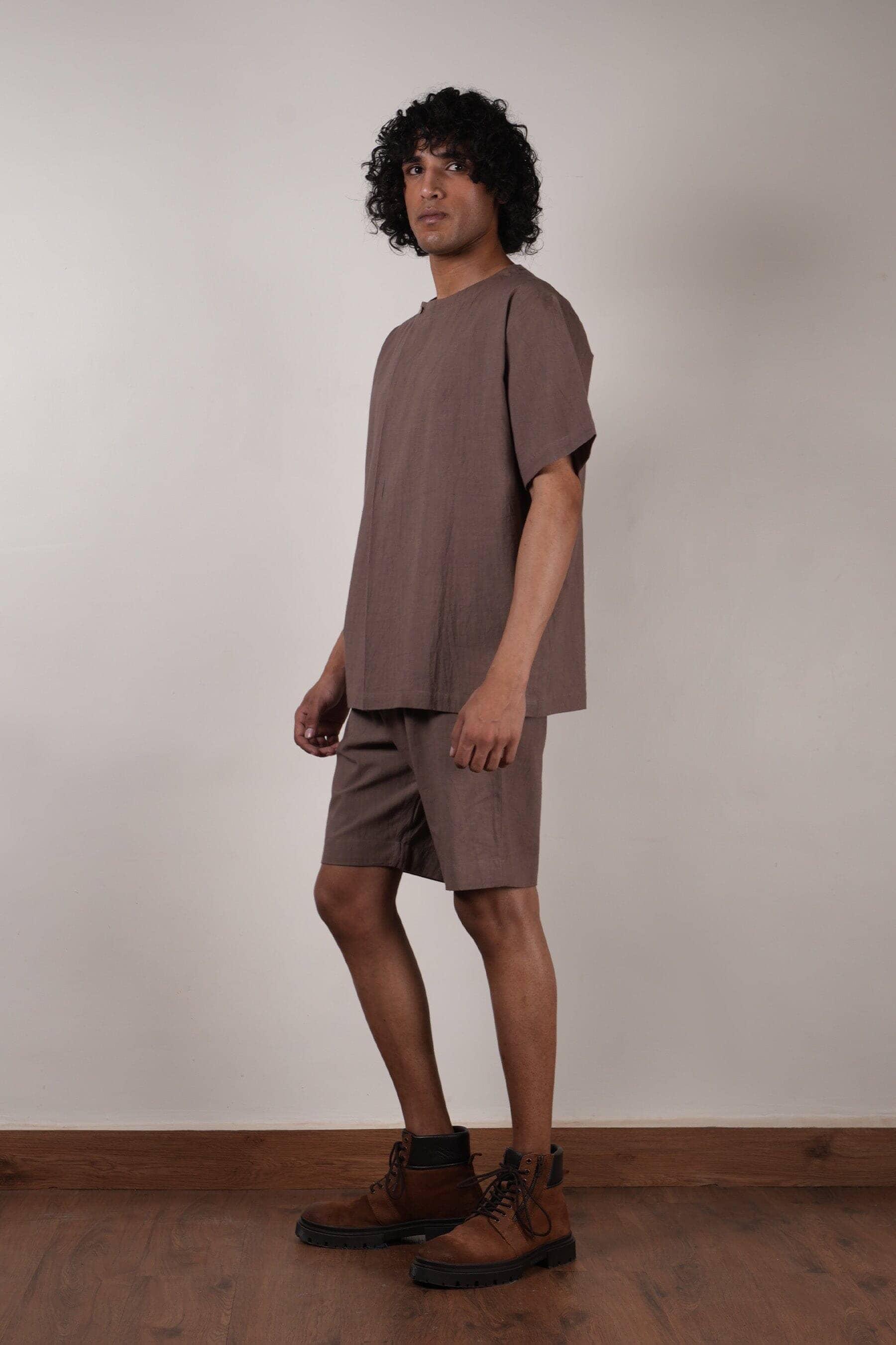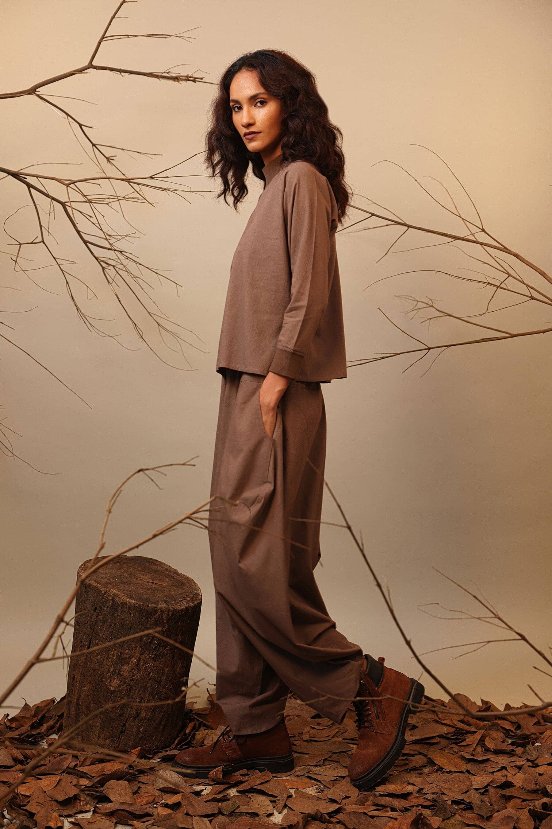 Beige & Brown Shirt Tunic Set (2 PCS)