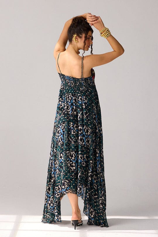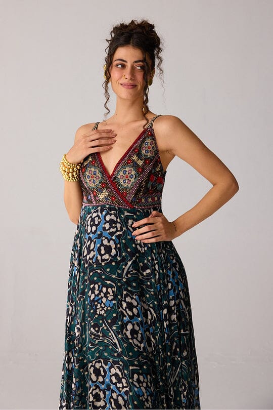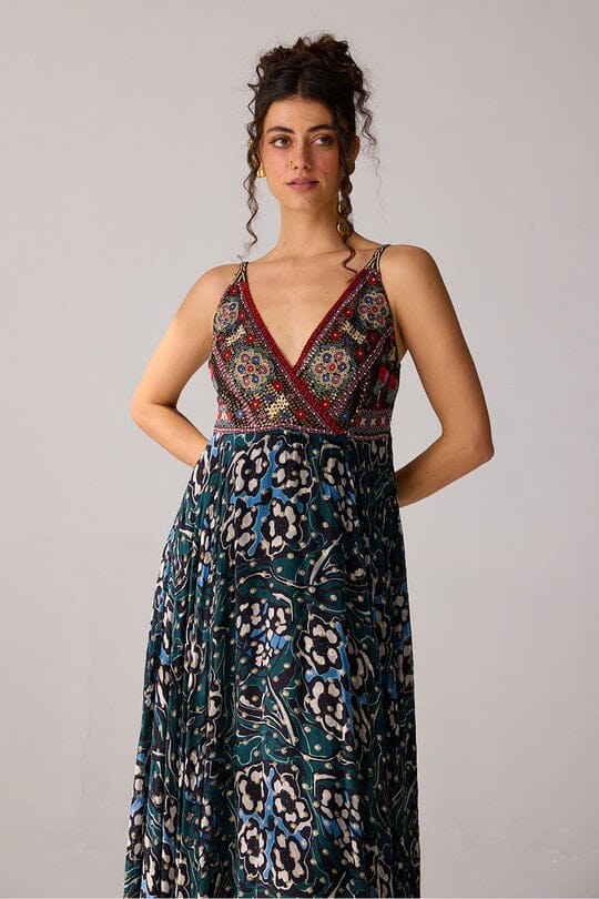 Wine-Green Gather Dress
