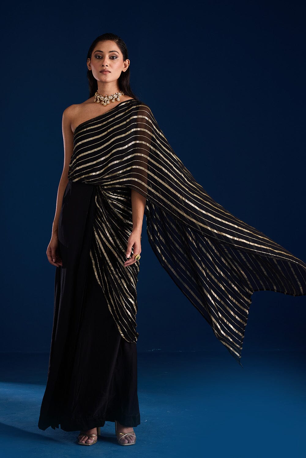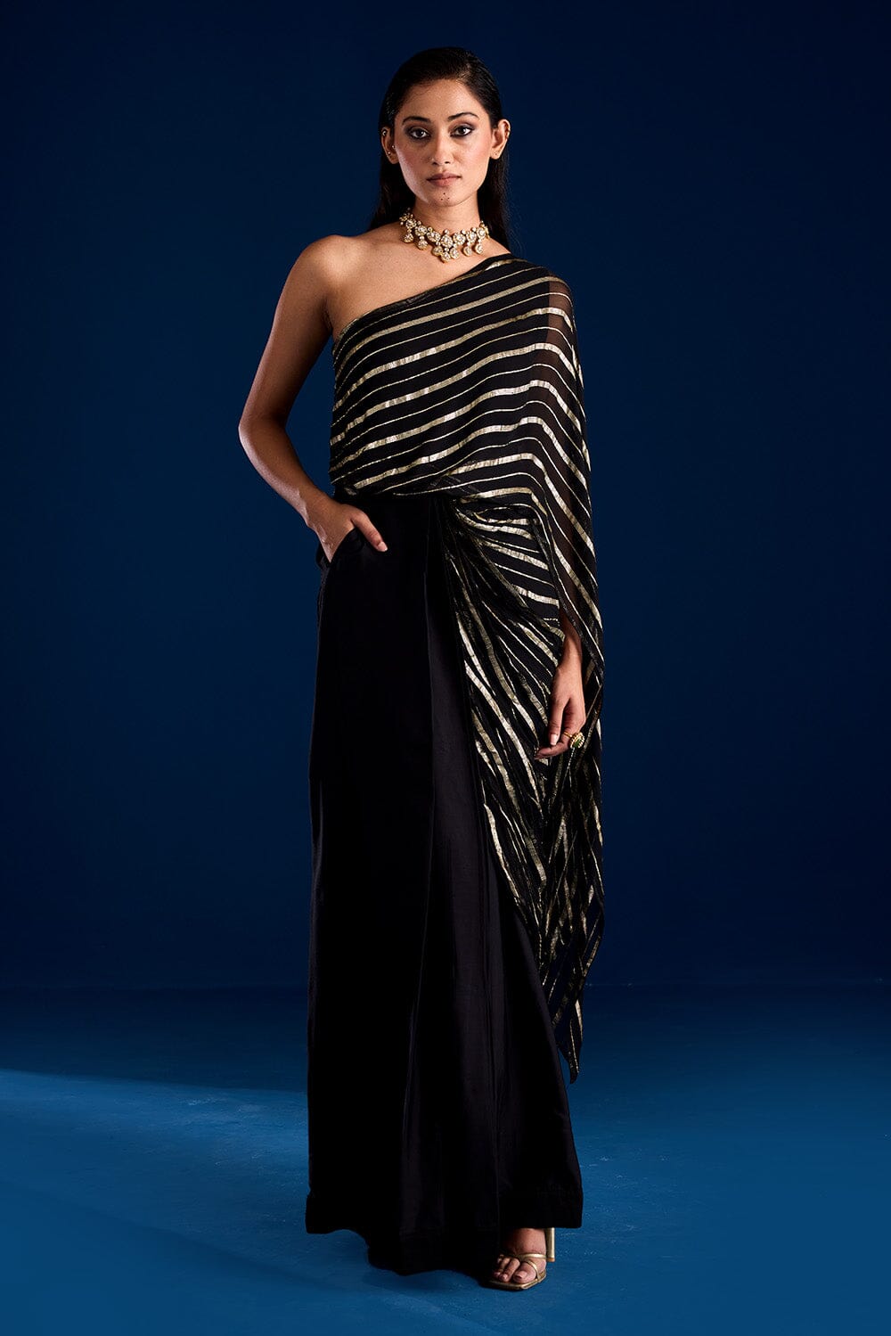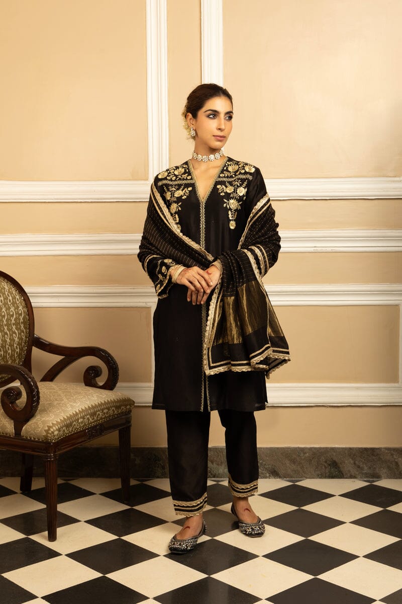 ZAHRA BLACK SILK CHANDERI KURTA SET