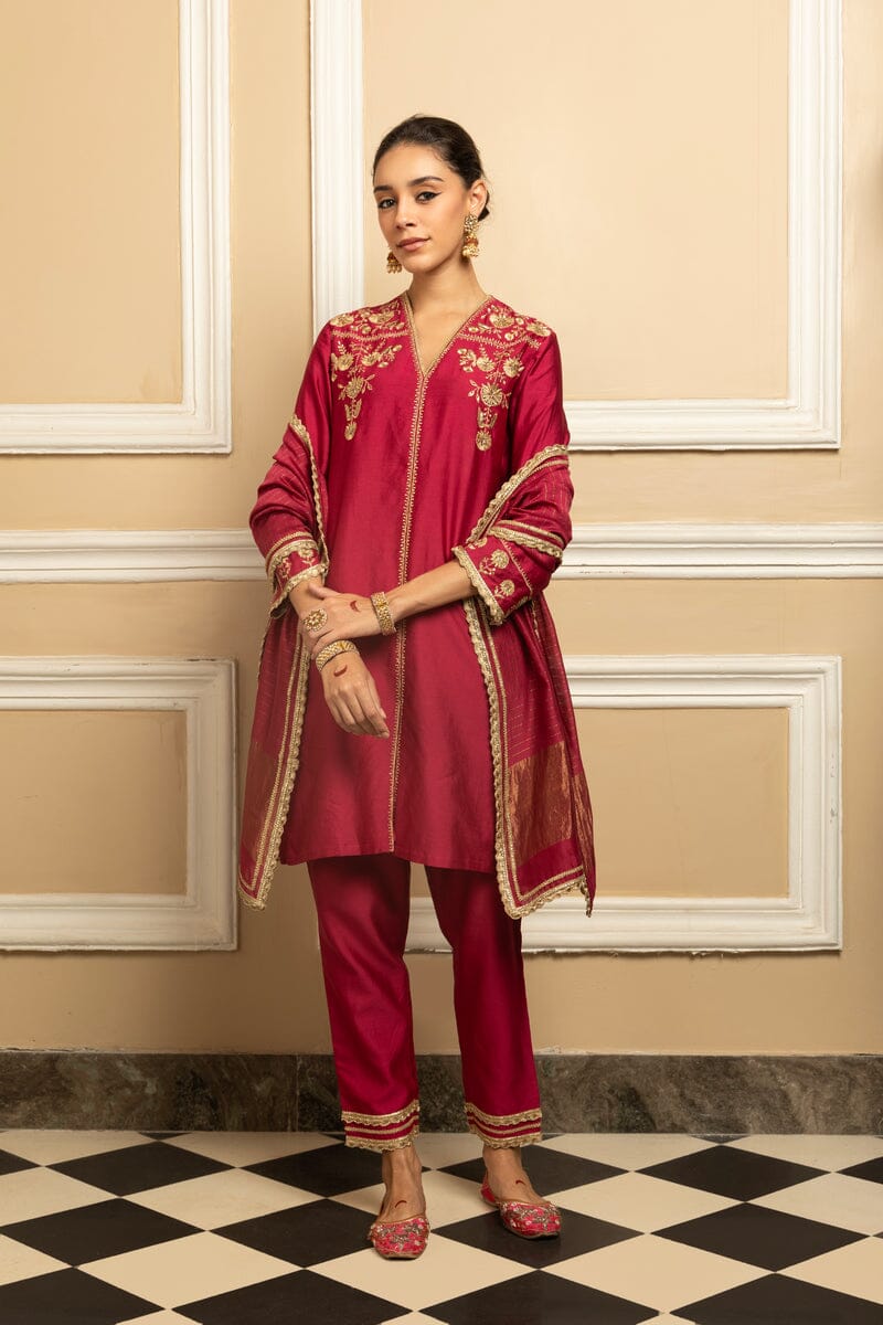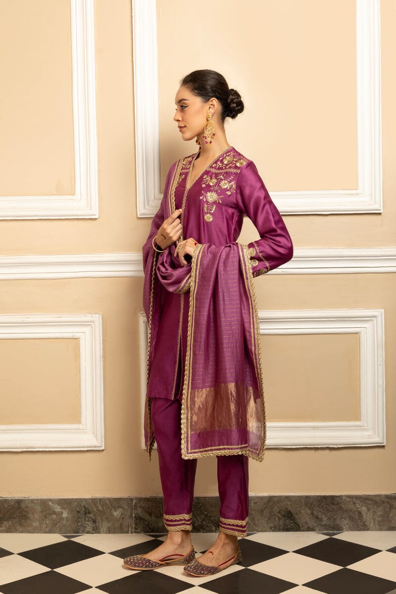 ZAHRA PLUM SILK CHANDERI KURTA SET