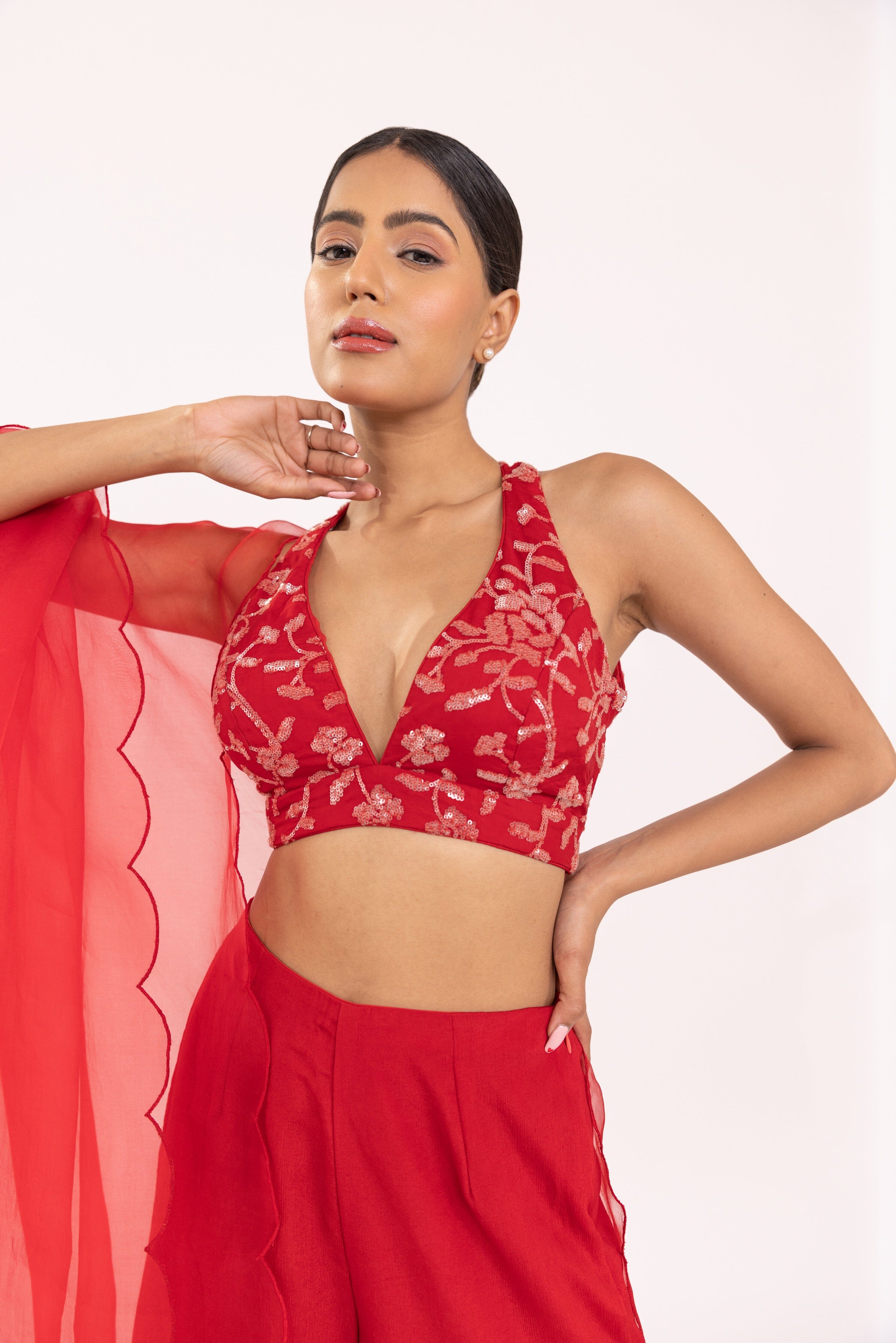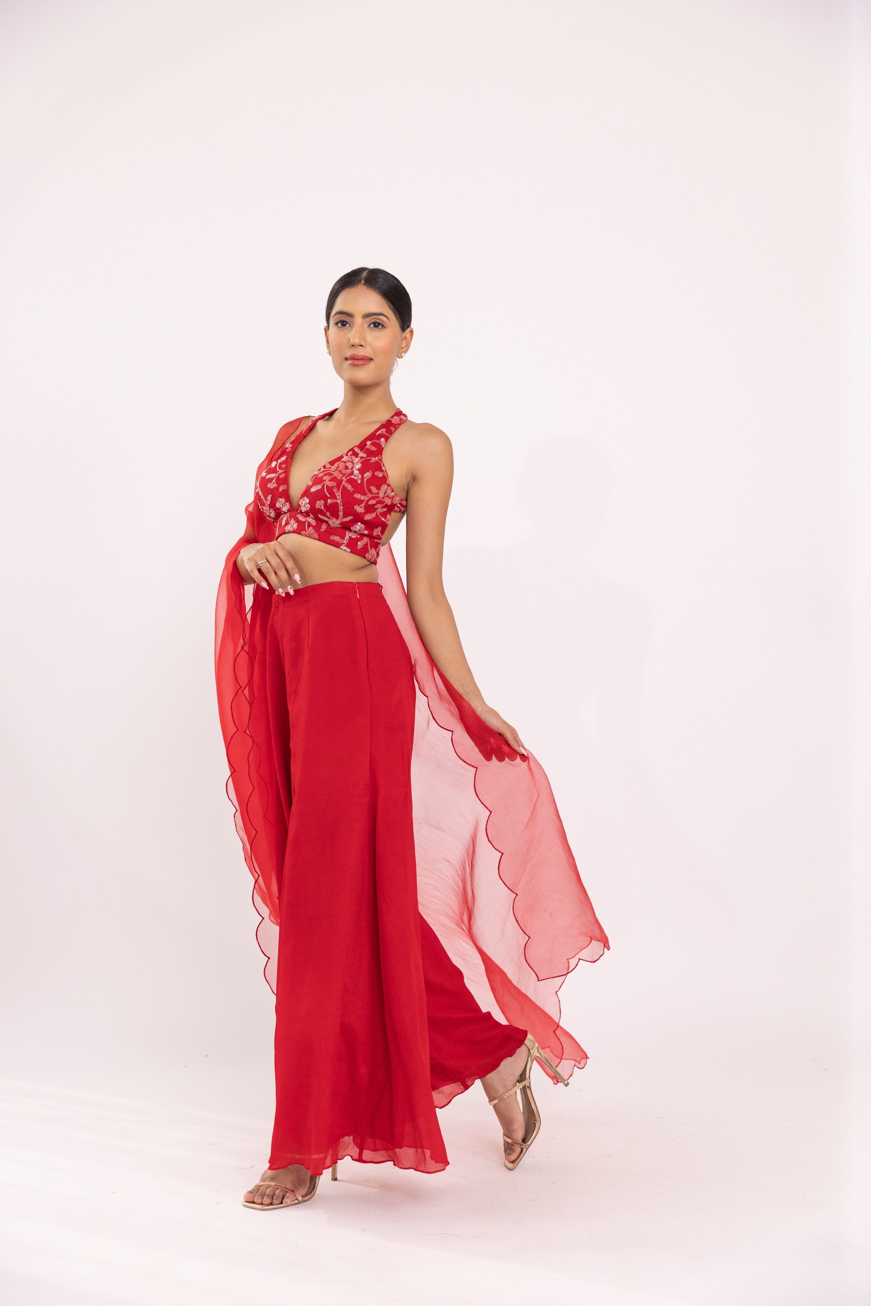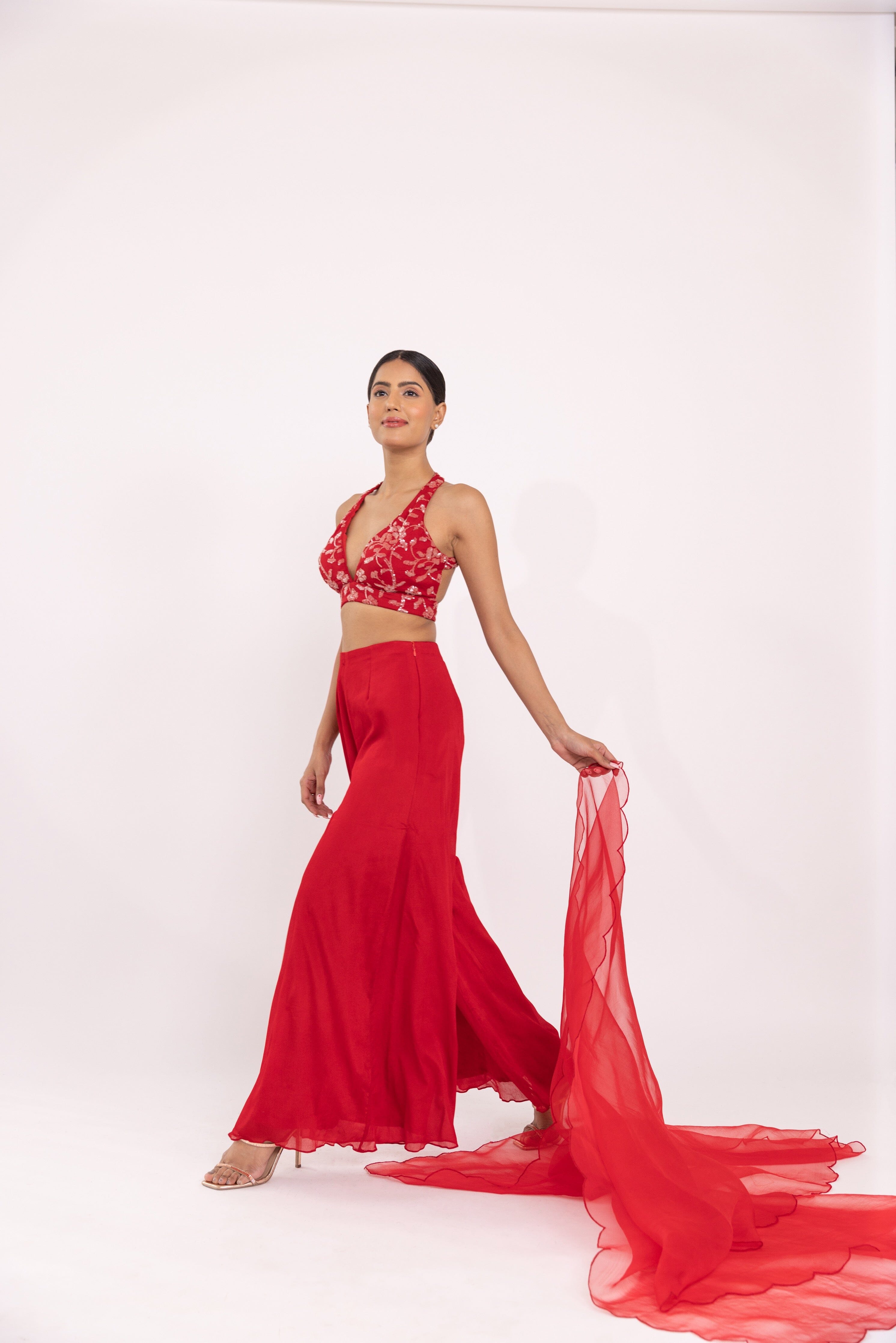 ZIYA BANDEAU AND PALLAZO SET WITH DUPATTA