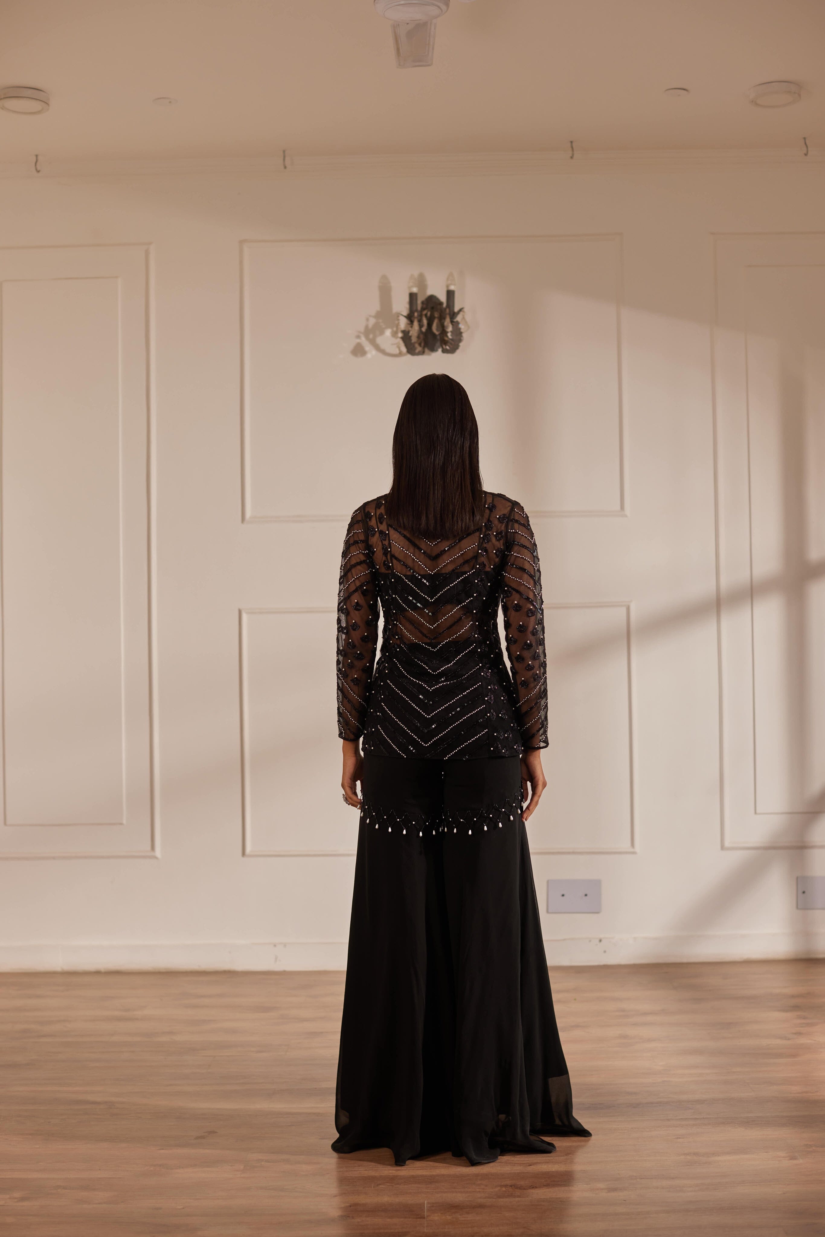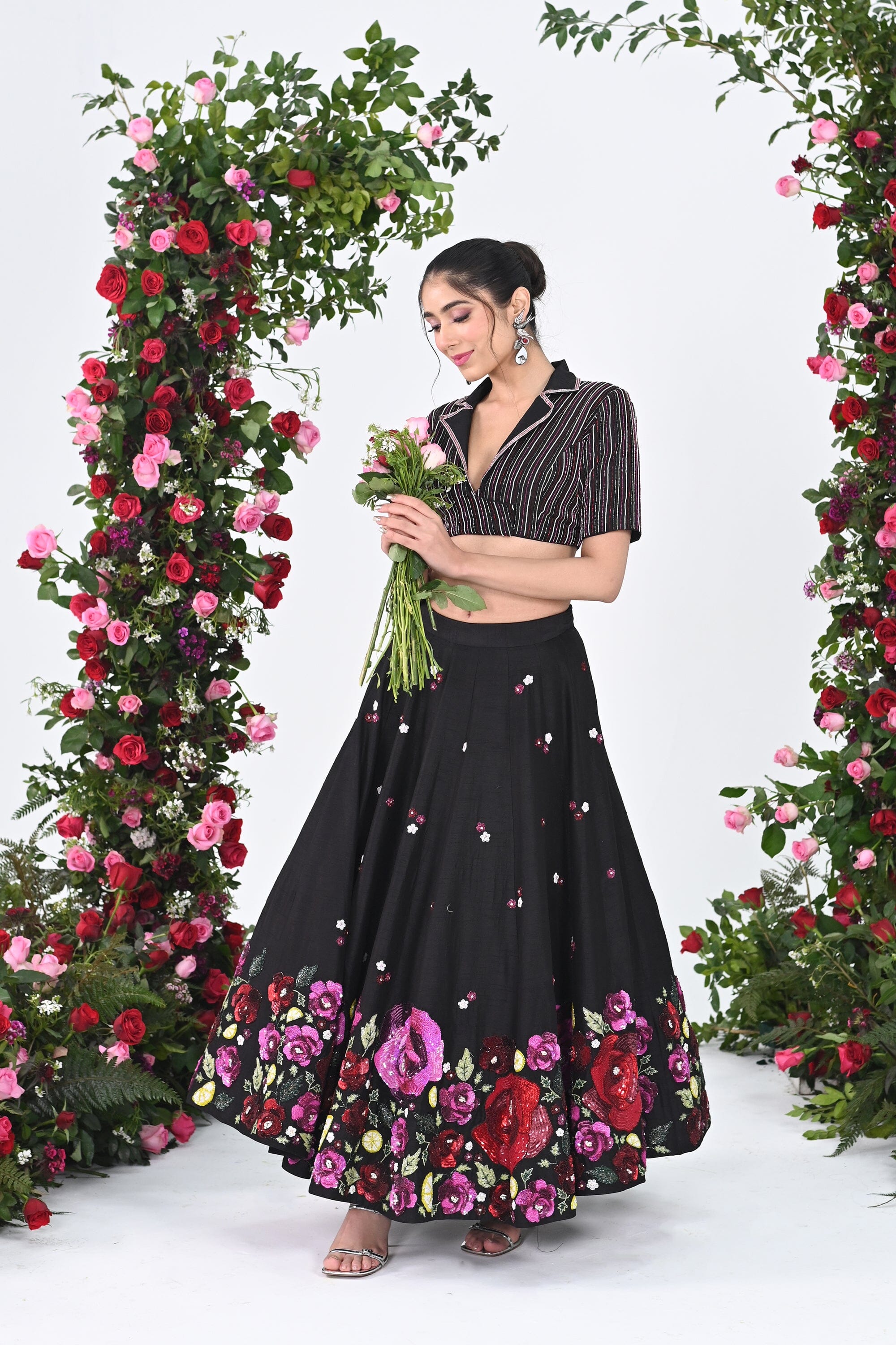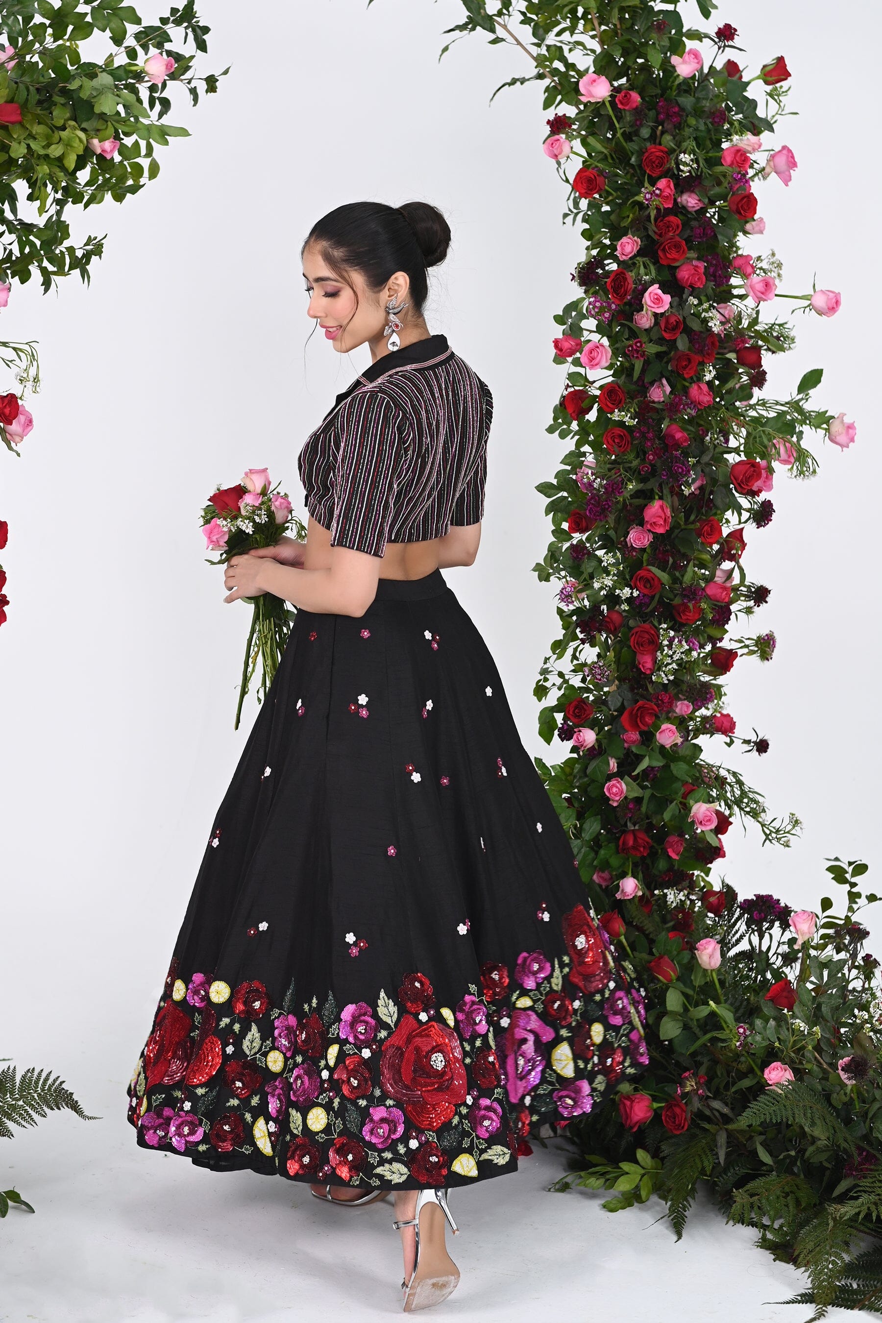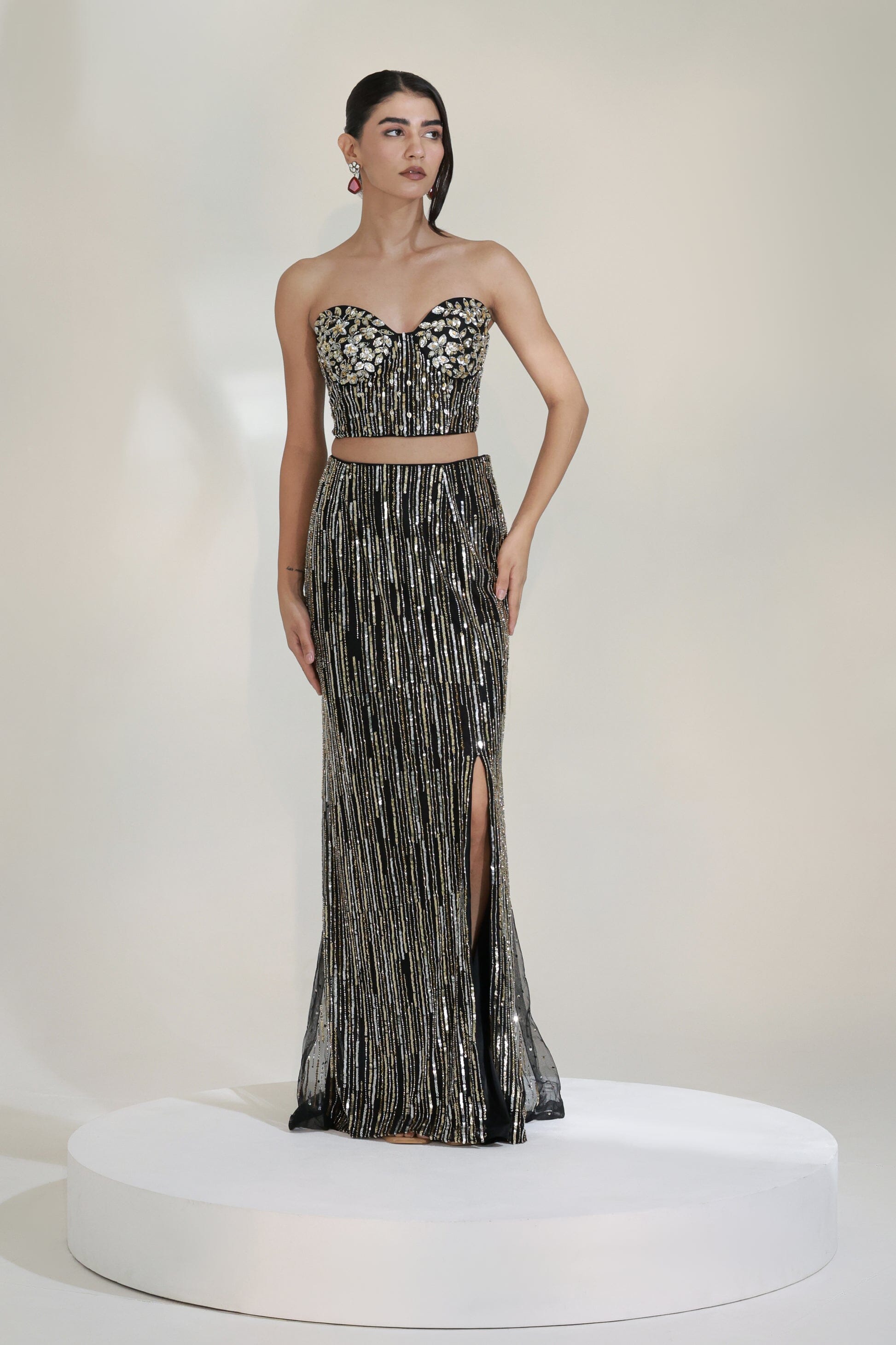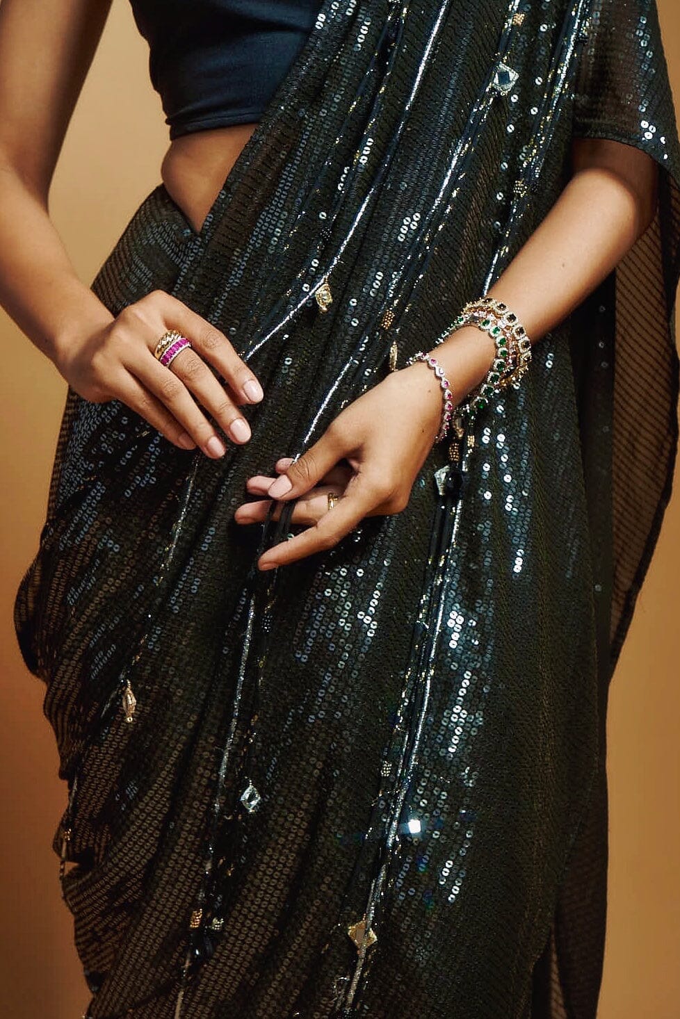 BLACK SEQUIN SKIRT WITH DETACHABLE SEQ PALLU