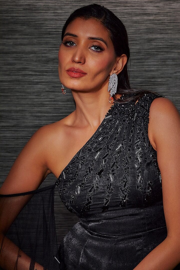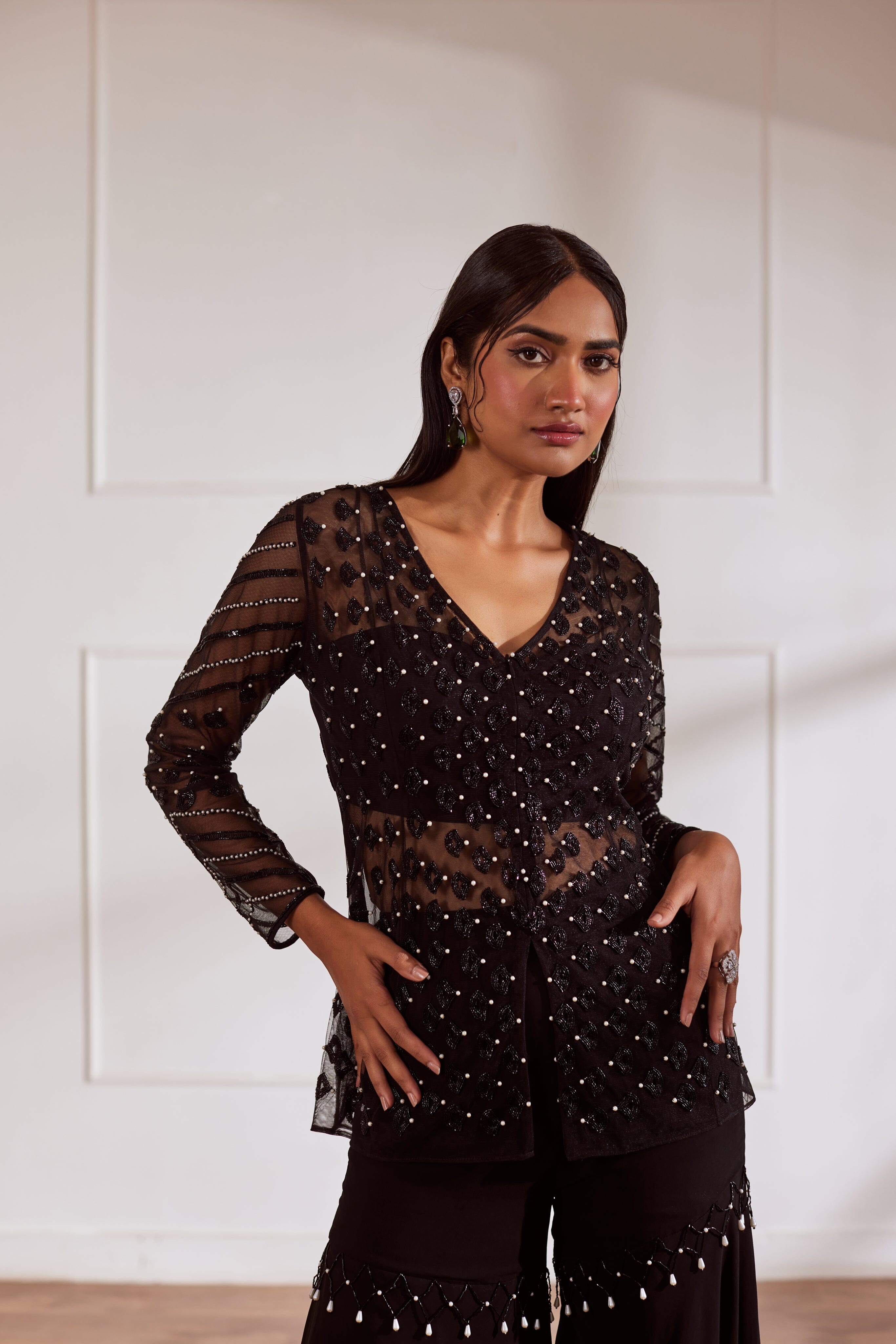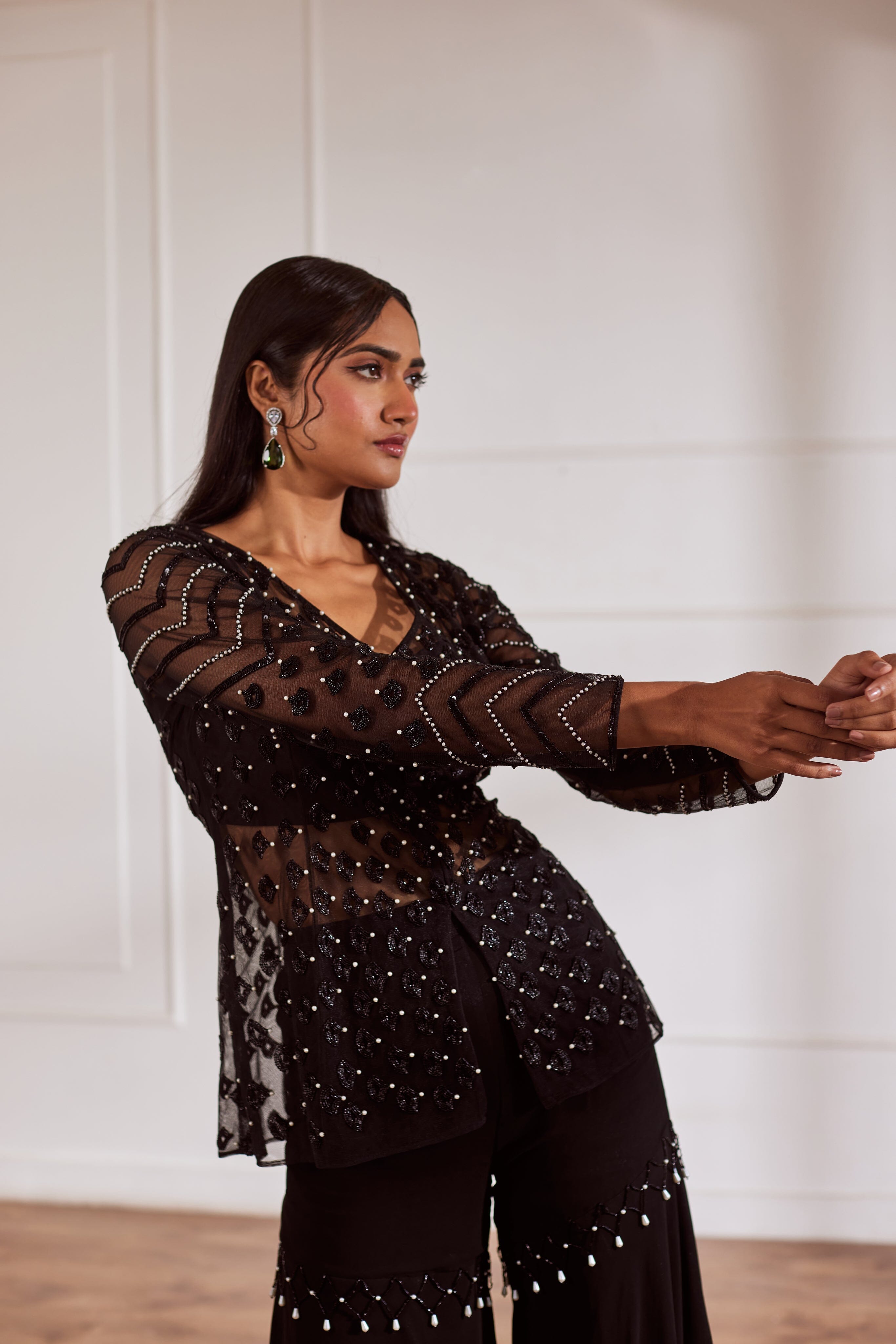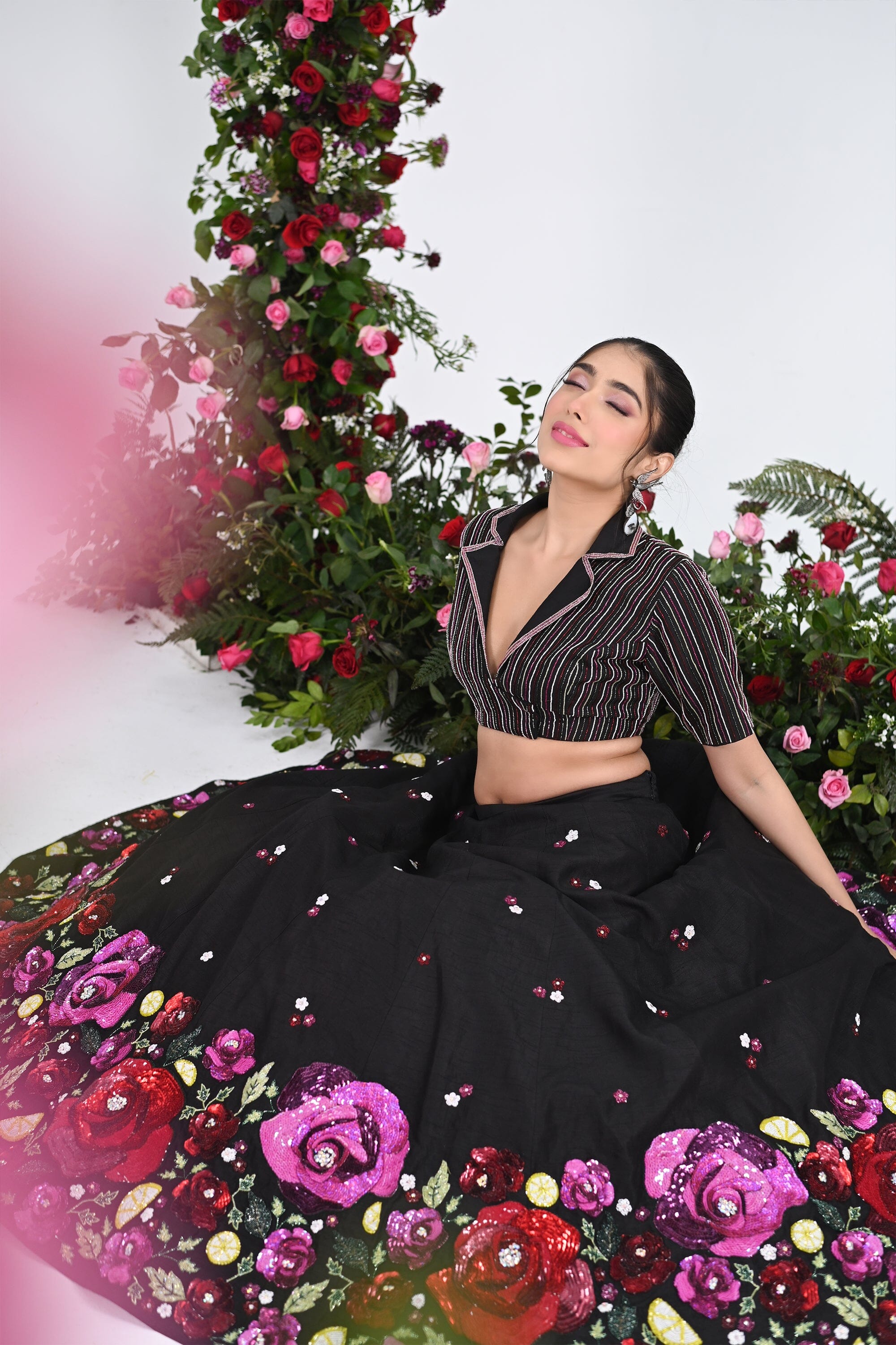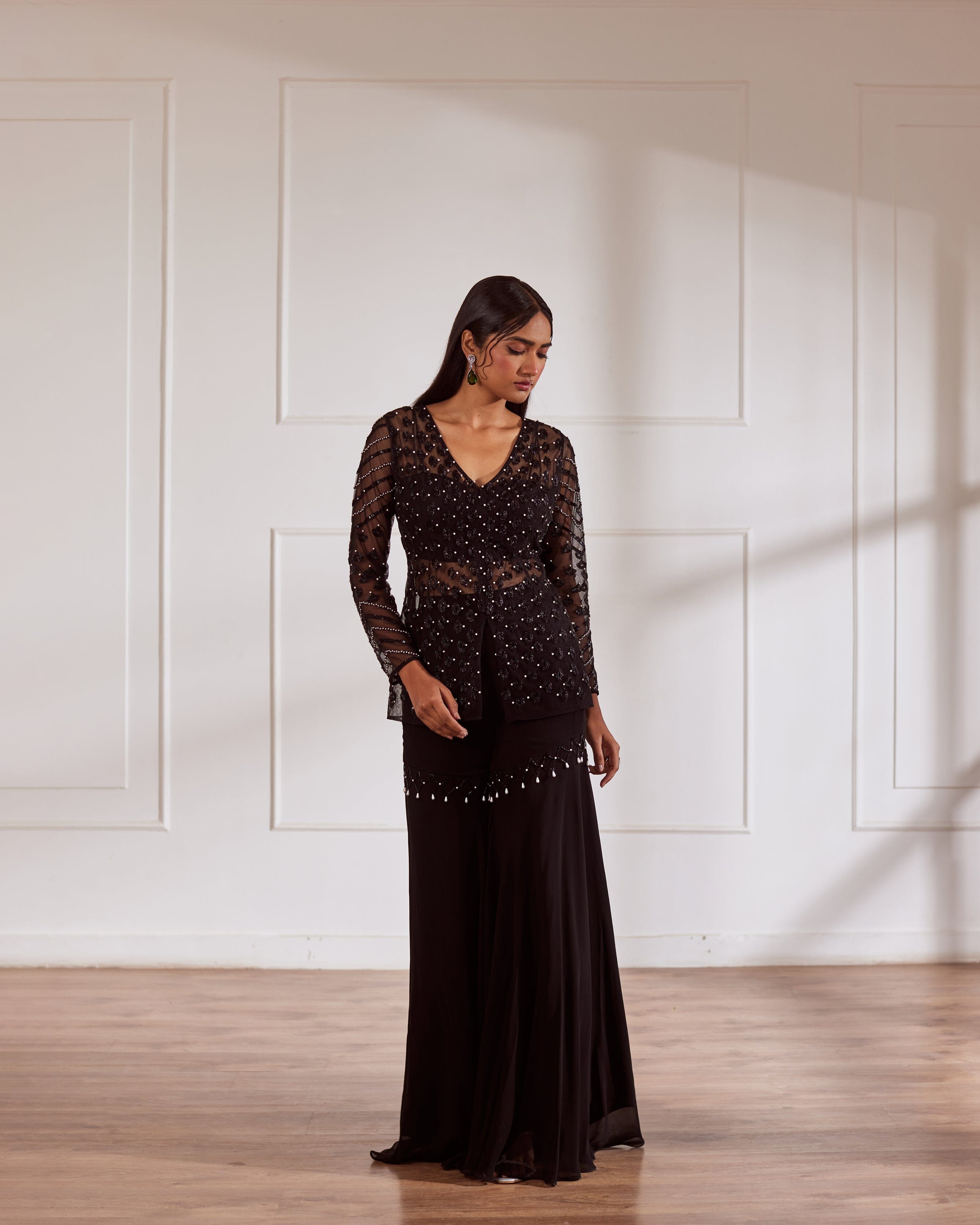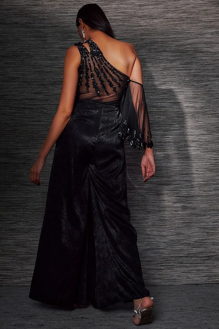 BLACK SEQUIN SKIRT WITH DETACHABLE SEQ PALLU