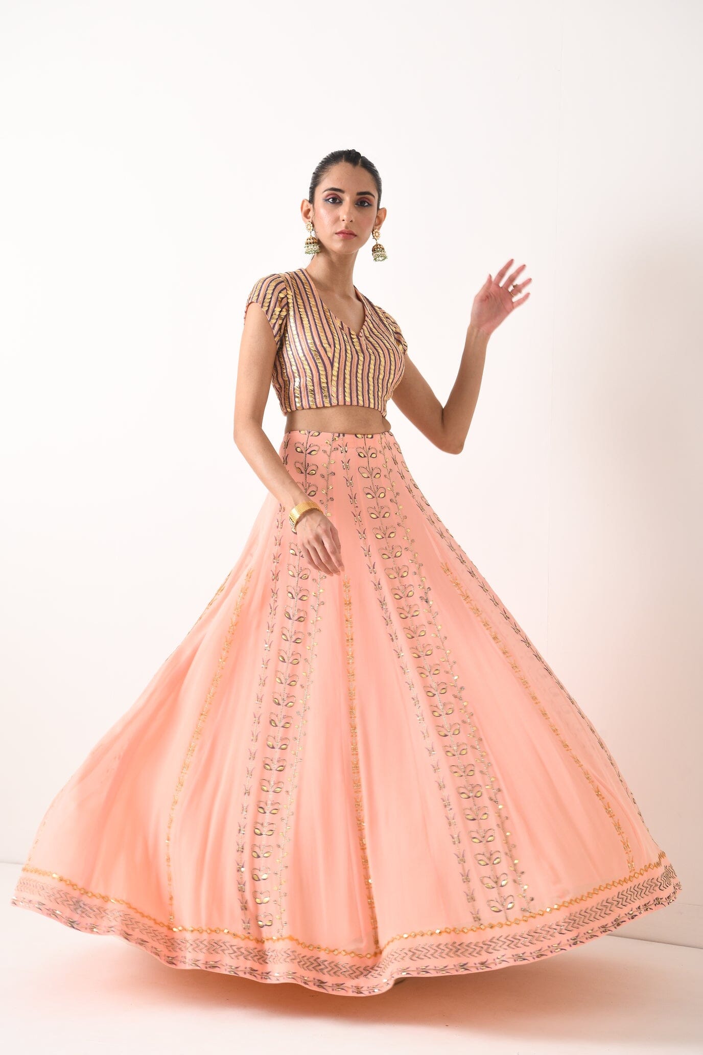 BLUSH PINK THREE BORDER SMALL BOOTI LEHNGA