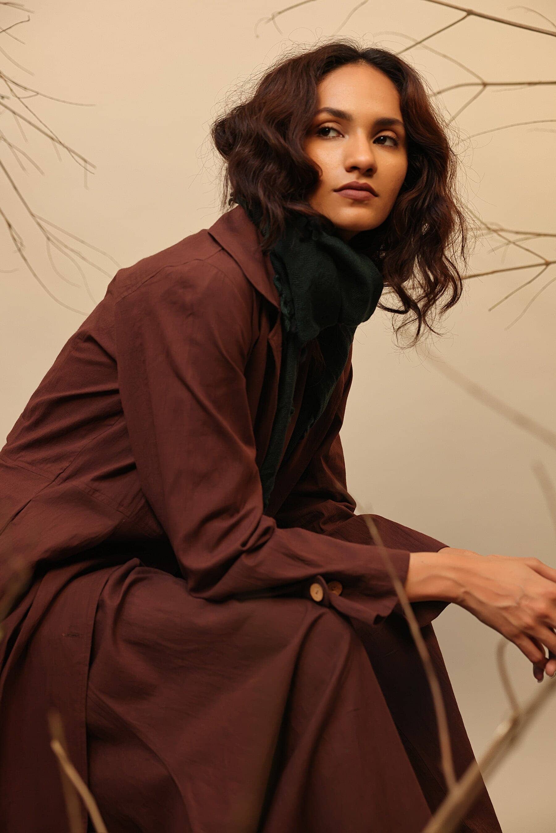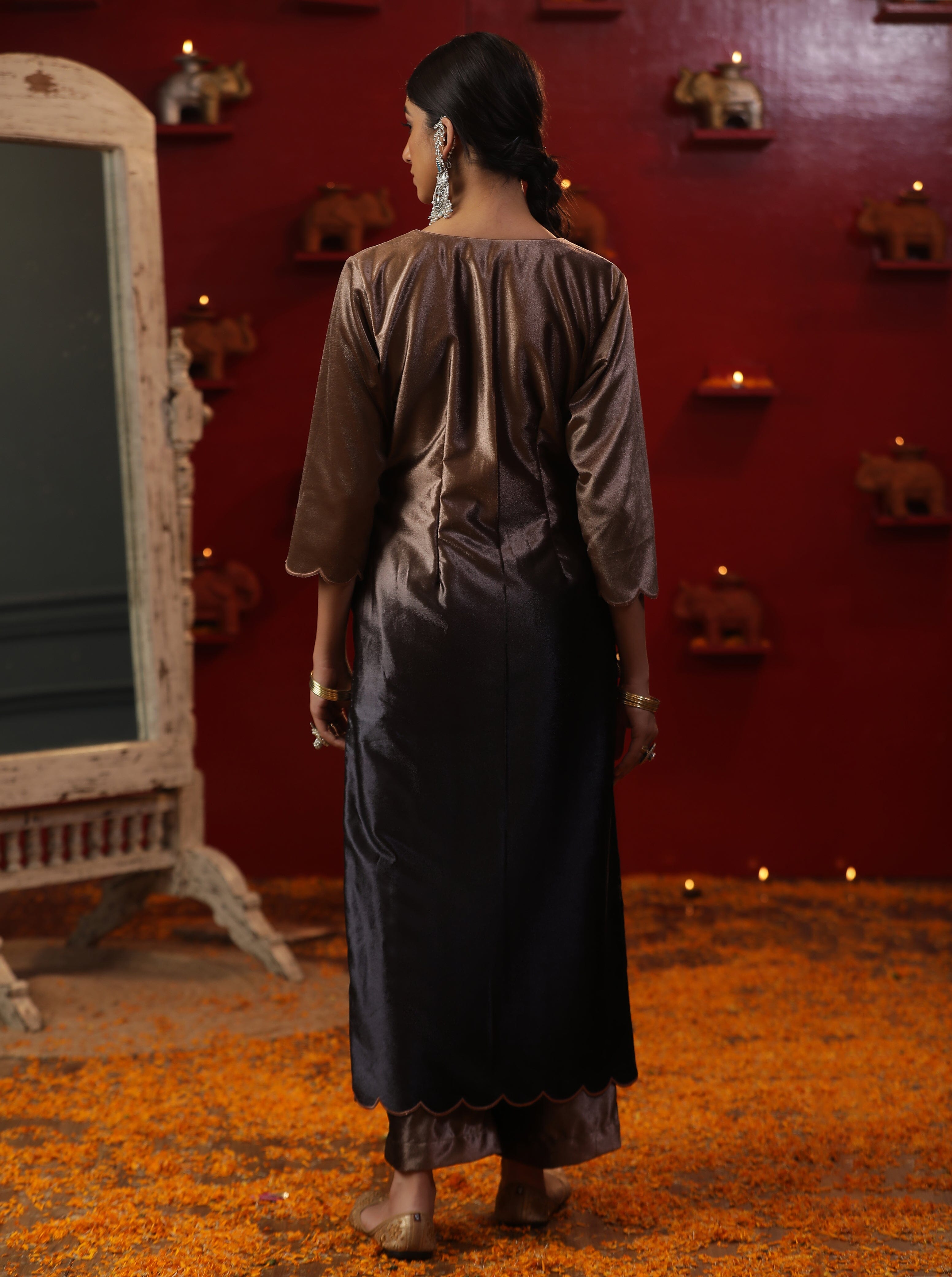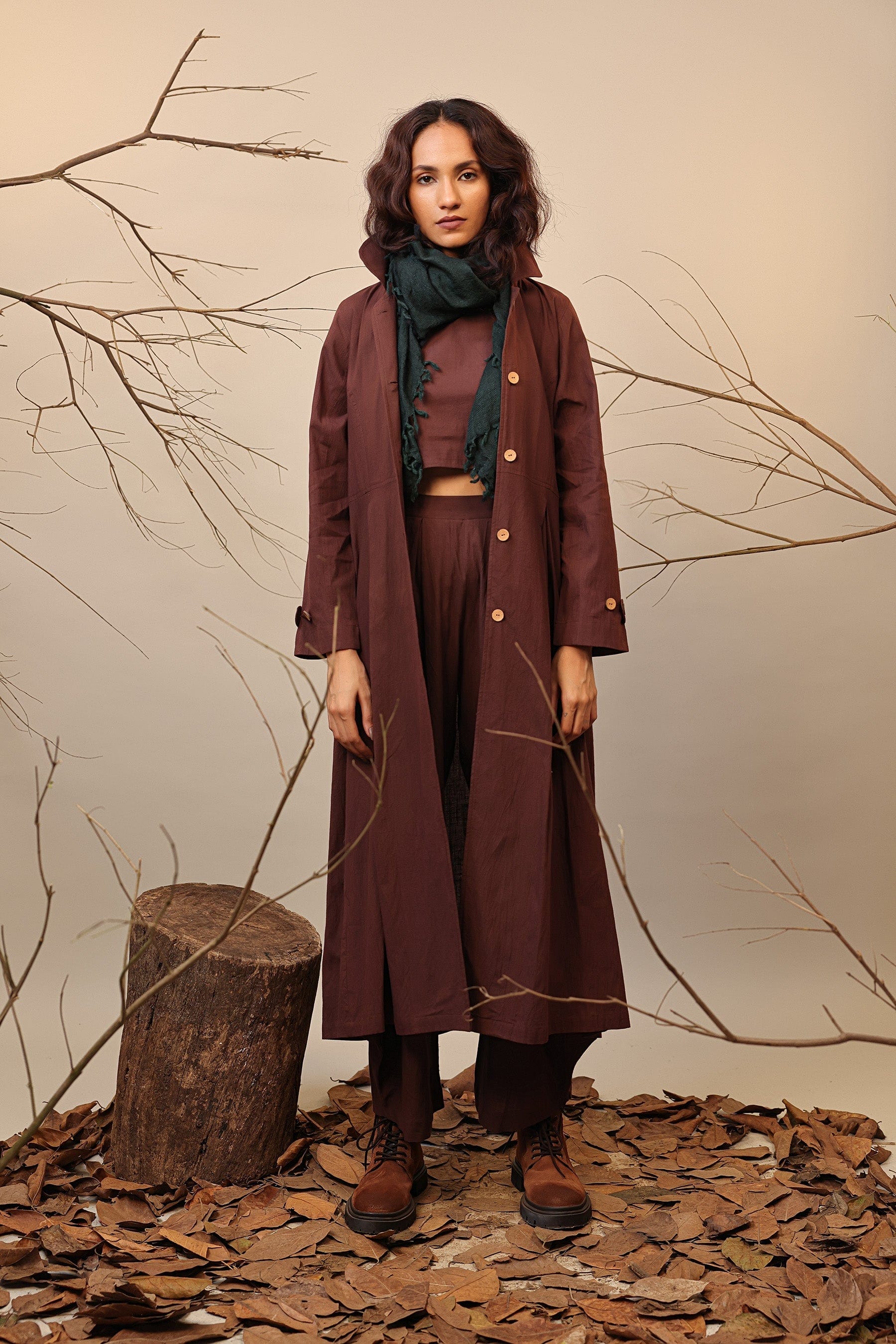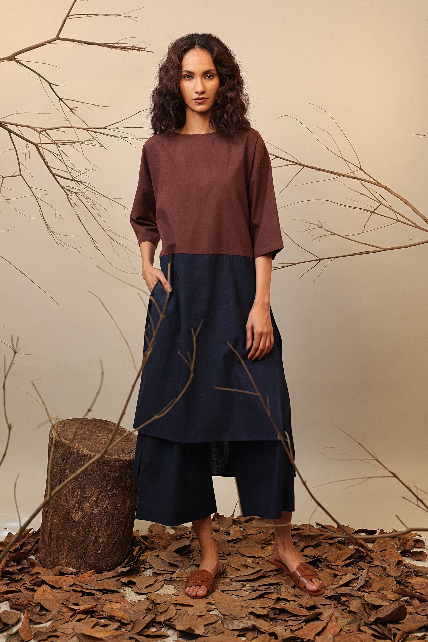 Brown & Blue Shirt Tunic Set (2 PCS)