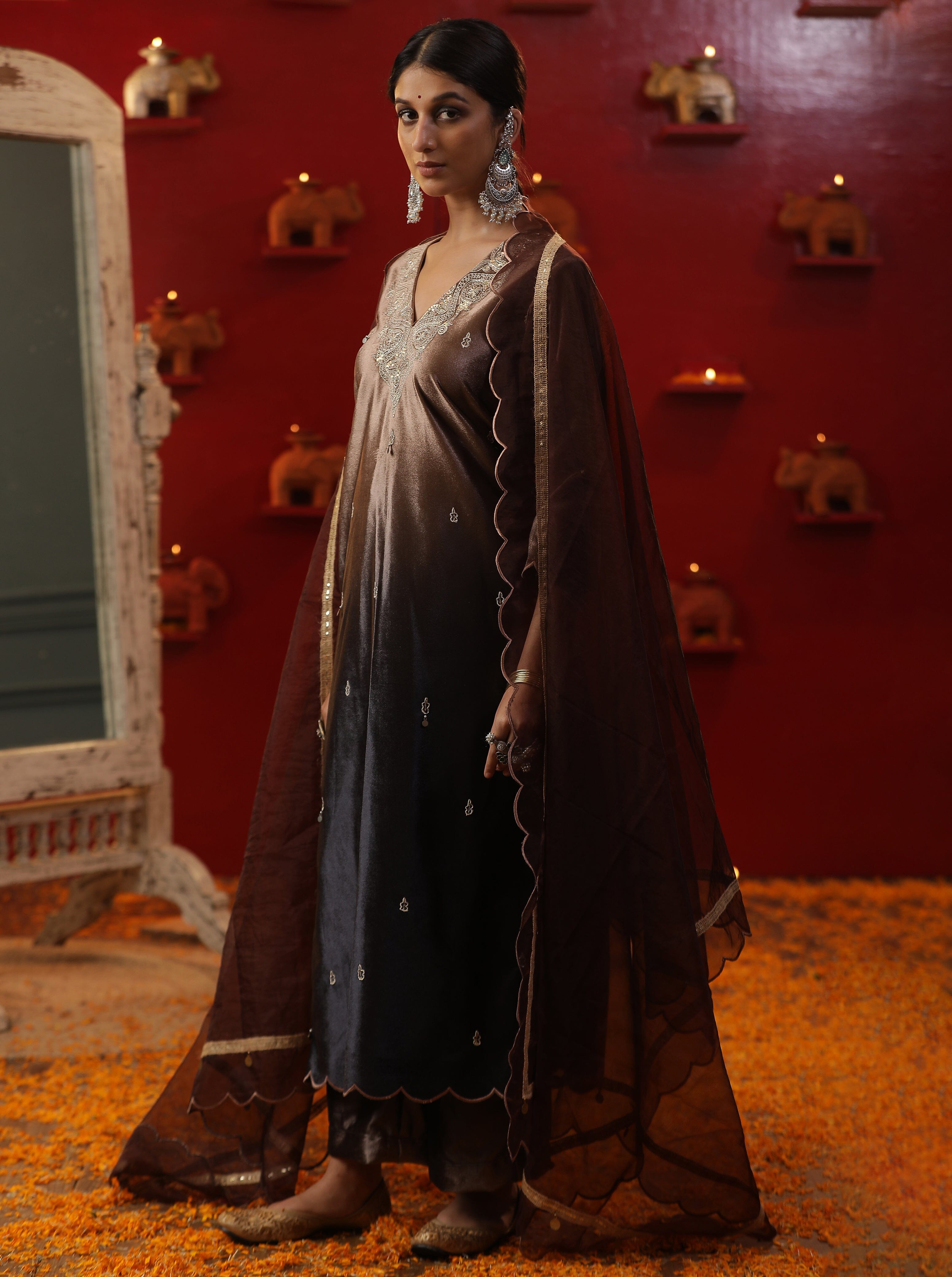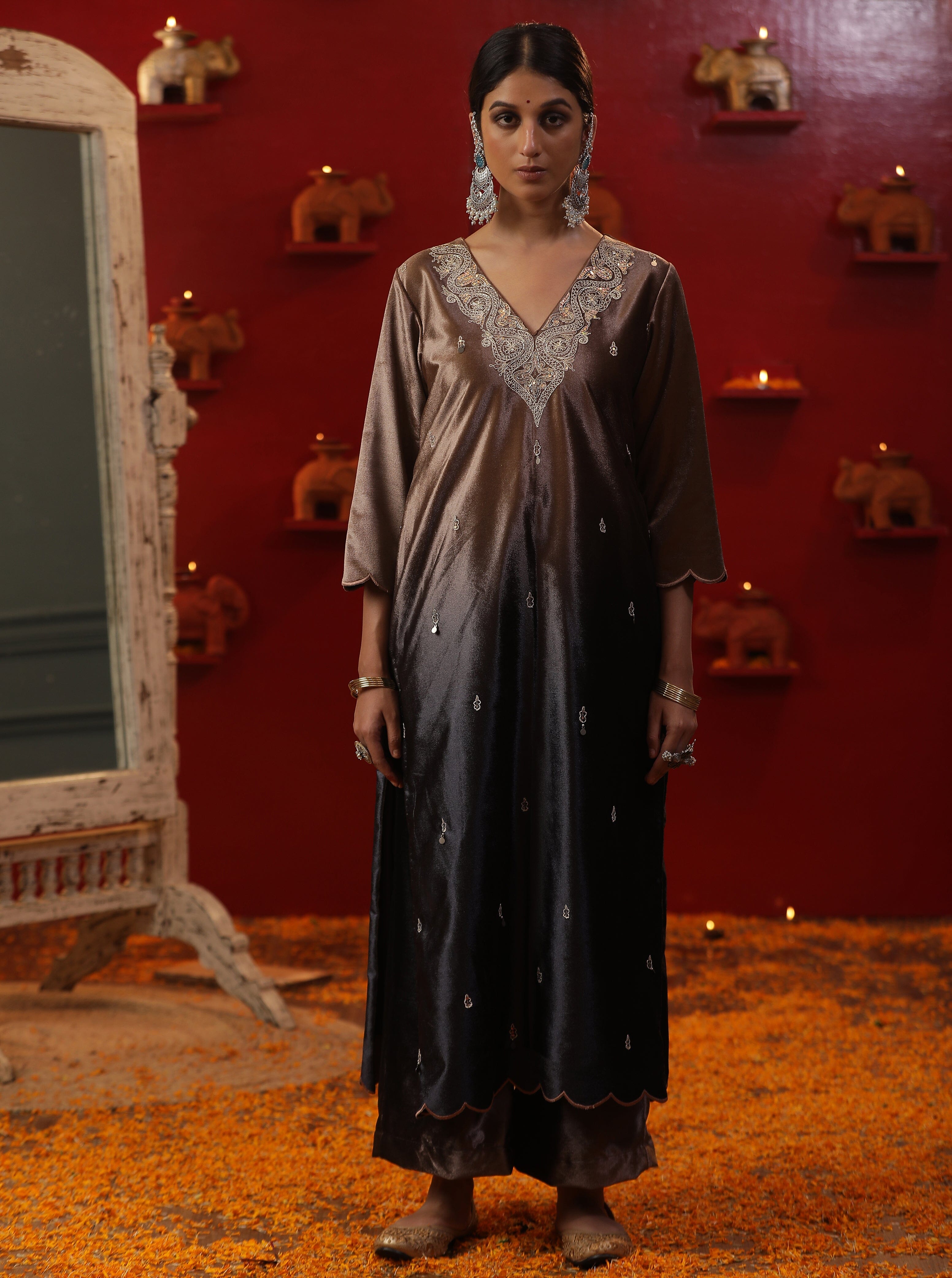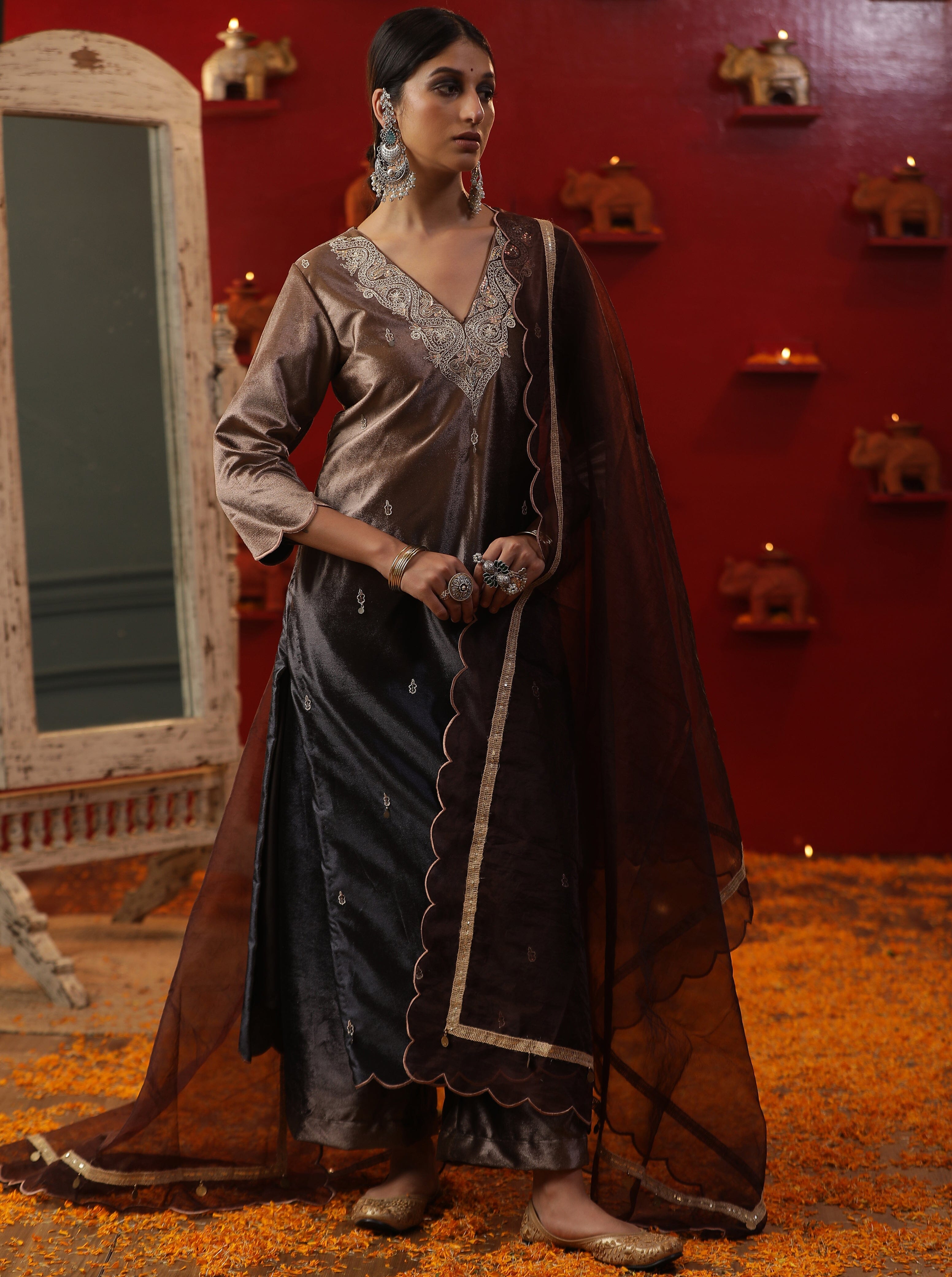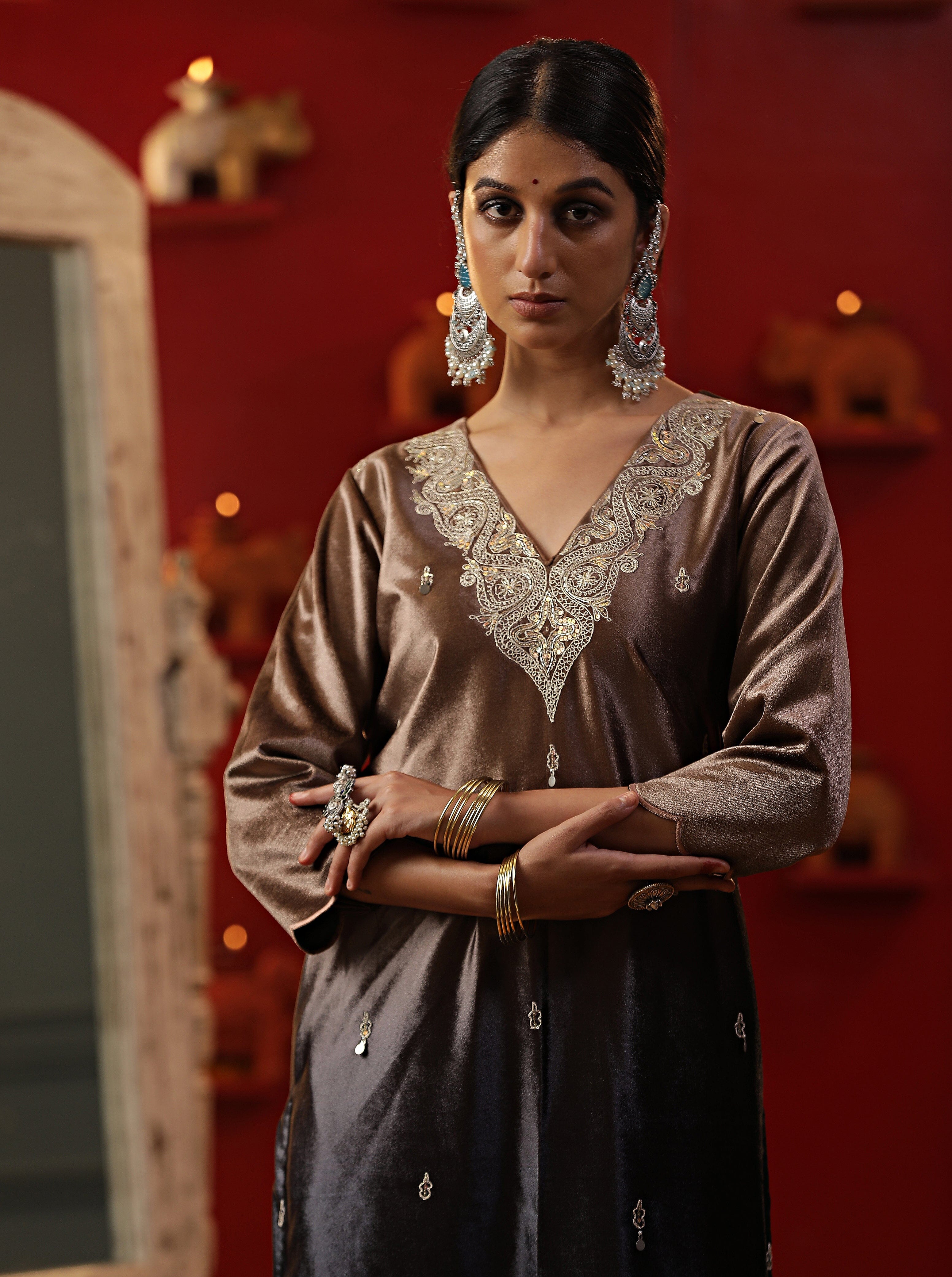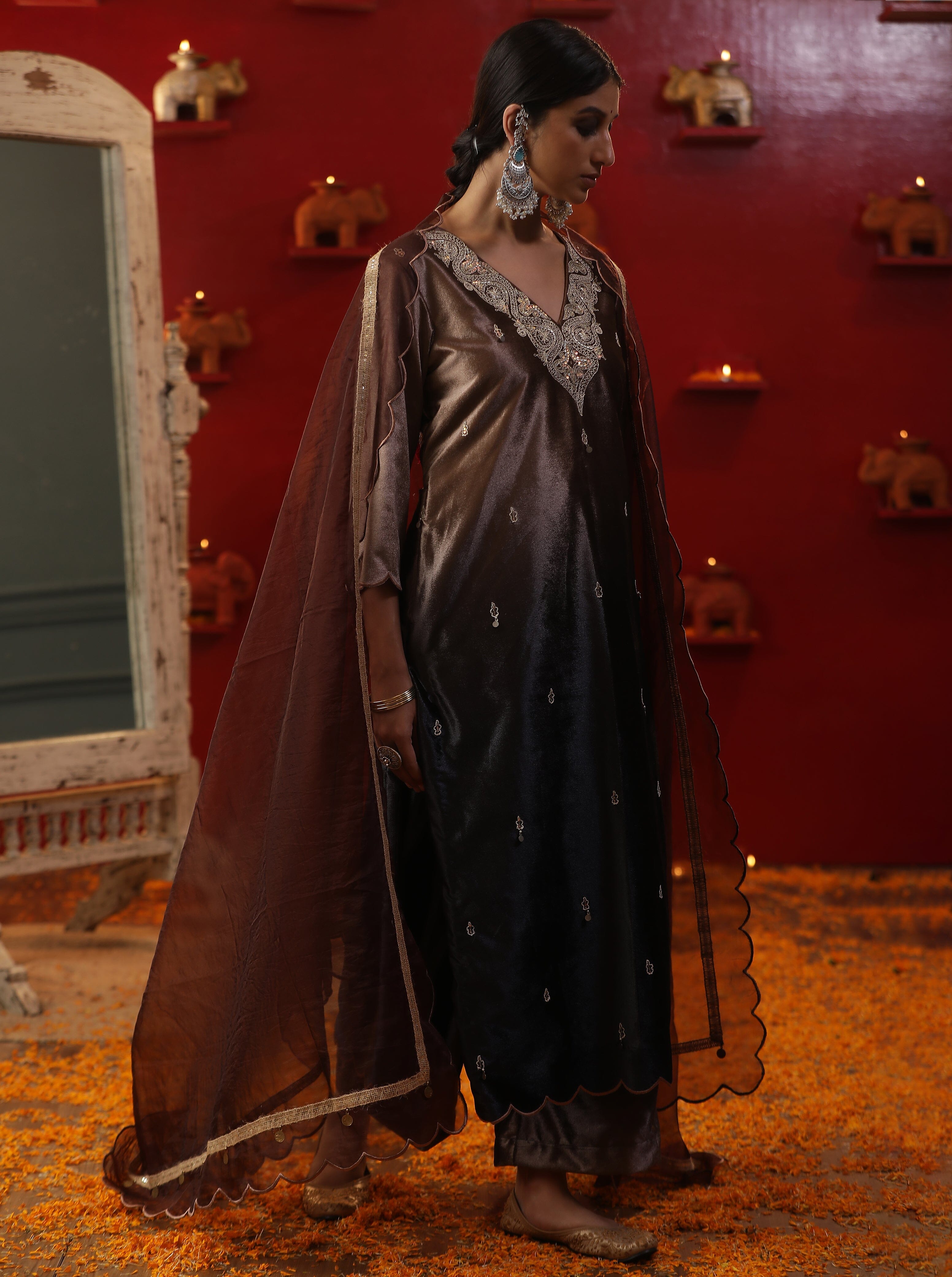 Brown & Blue Shirt Tunic Set (2 PCS)