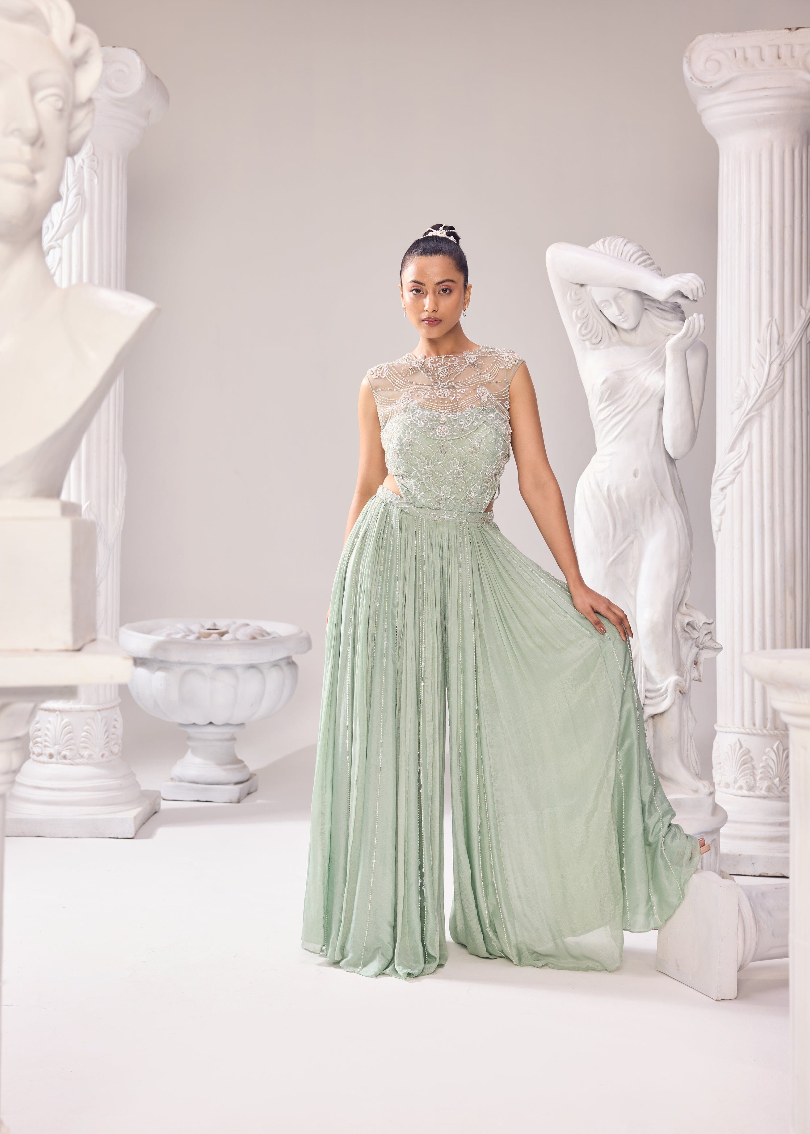 CASPIAN BLOUSE & OMBRE DRAPED SKIRT