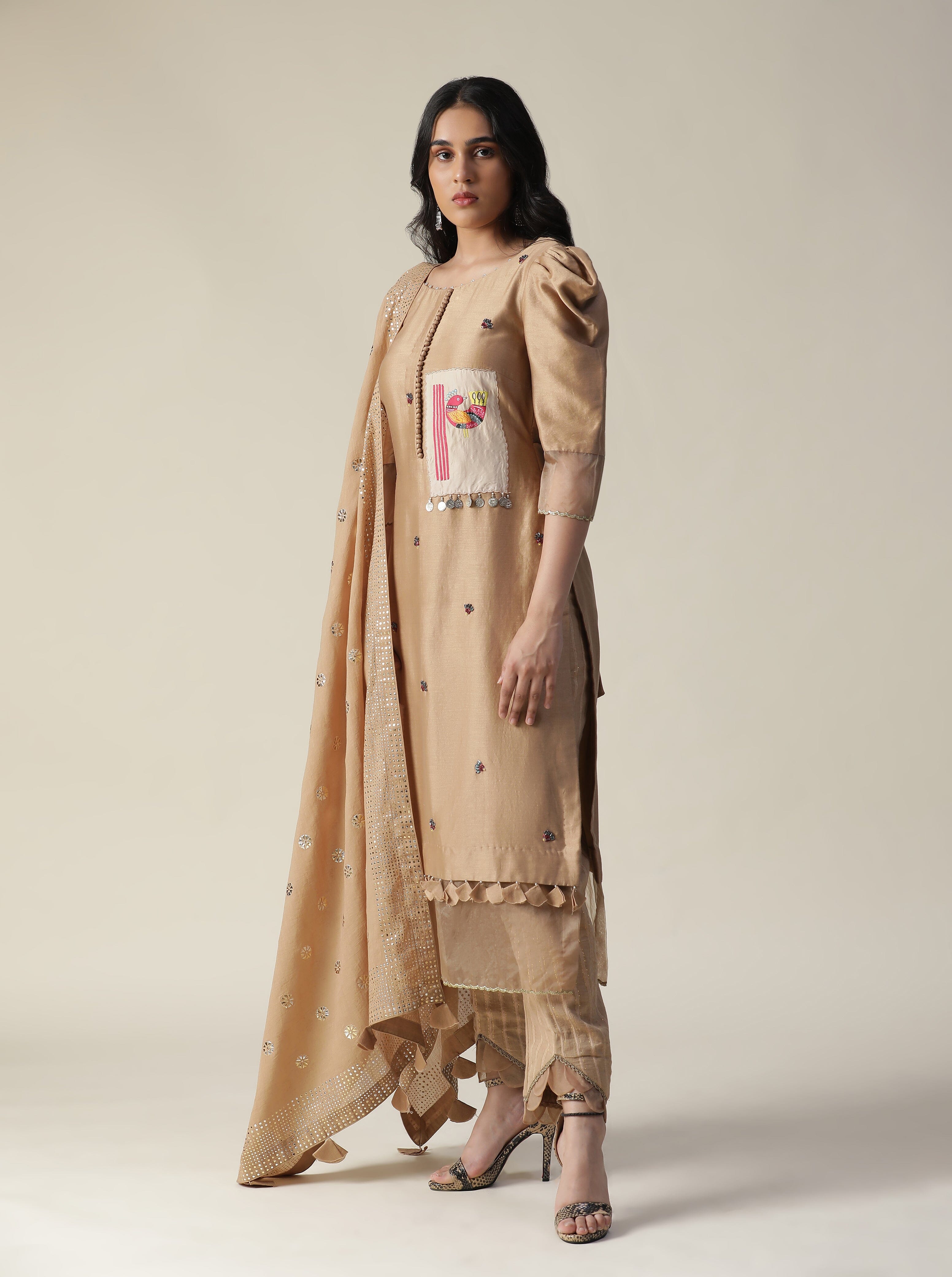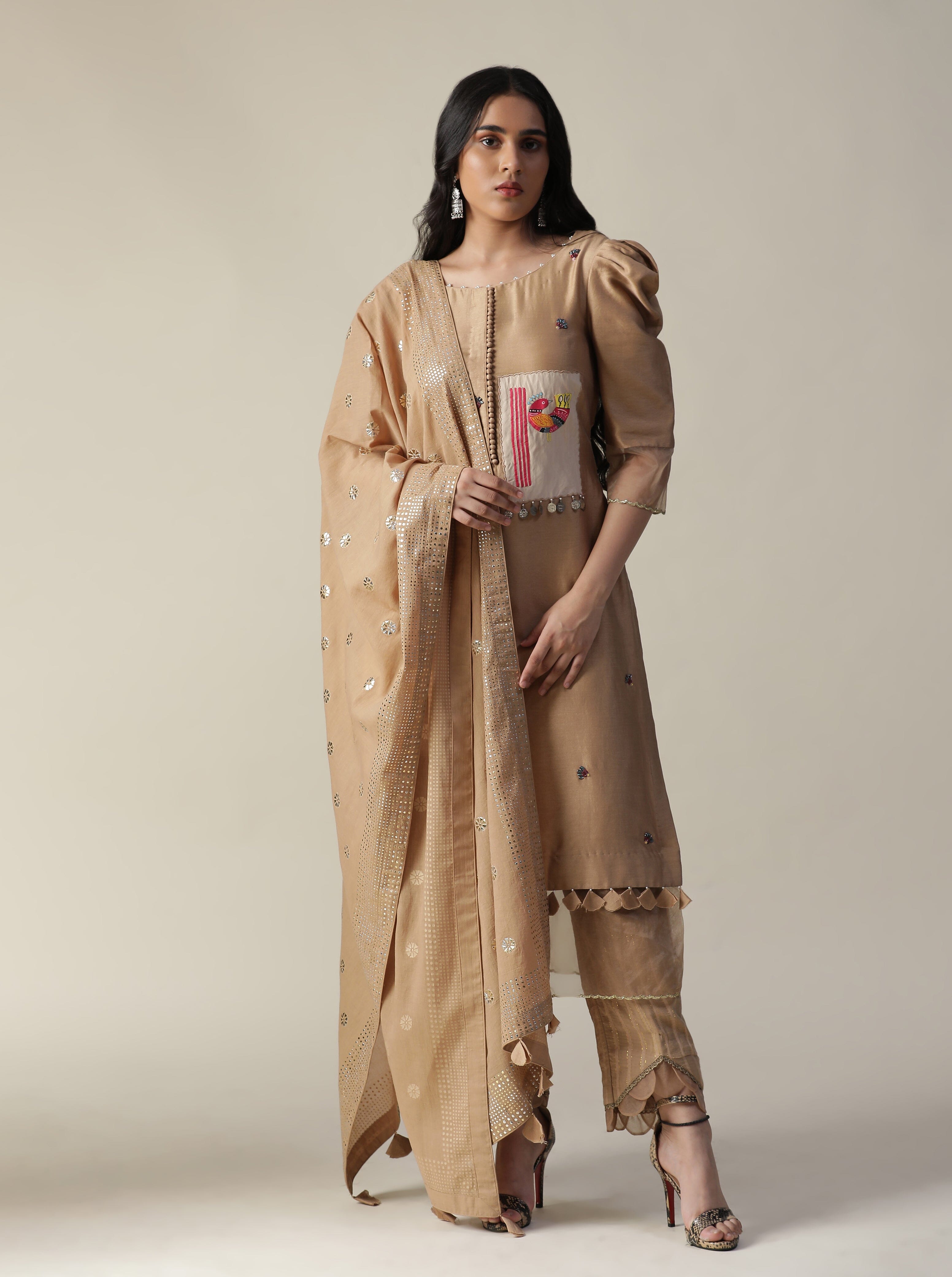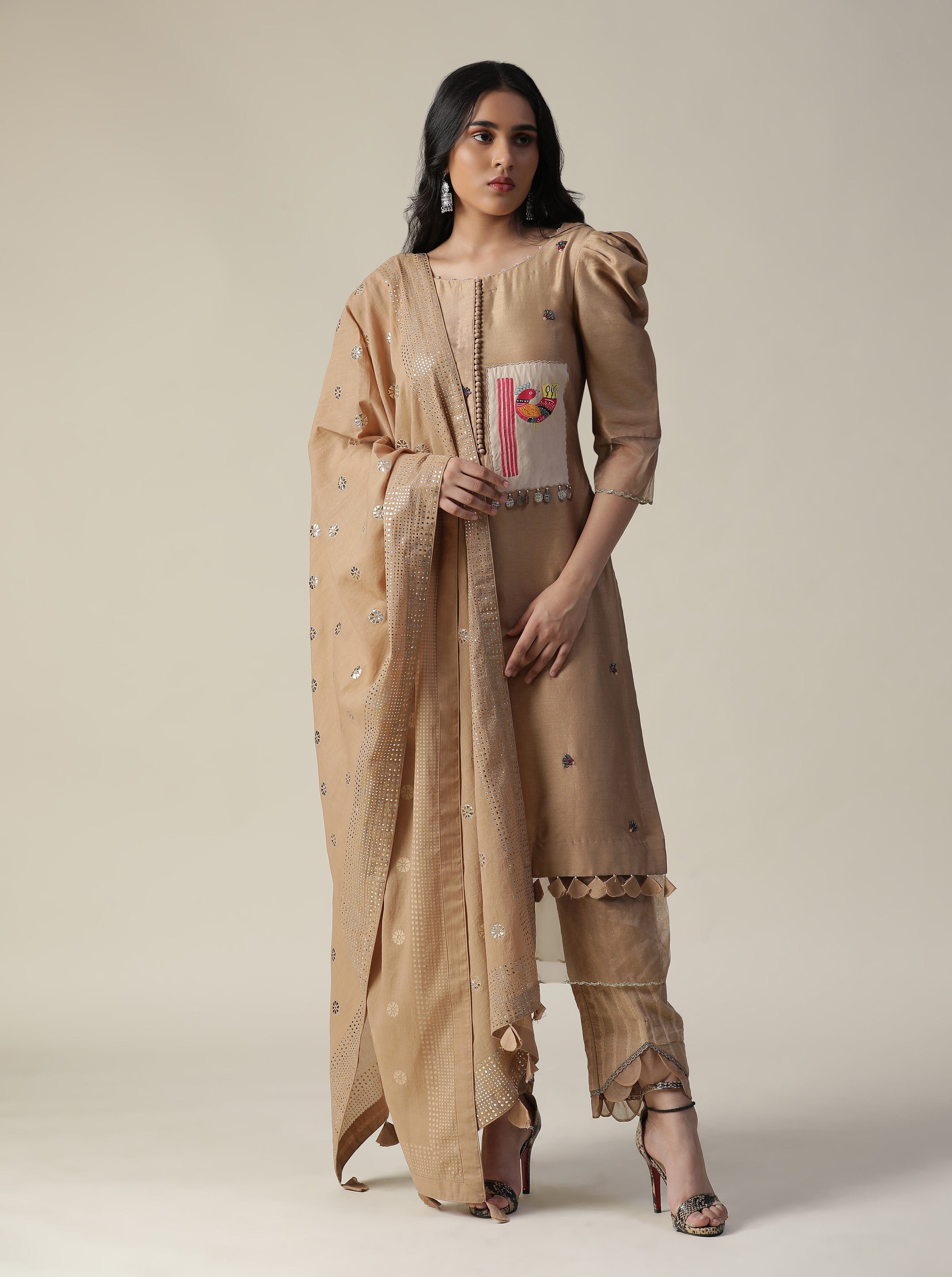 CHANDERI HAND PAINTED BEIGE SUIT SET