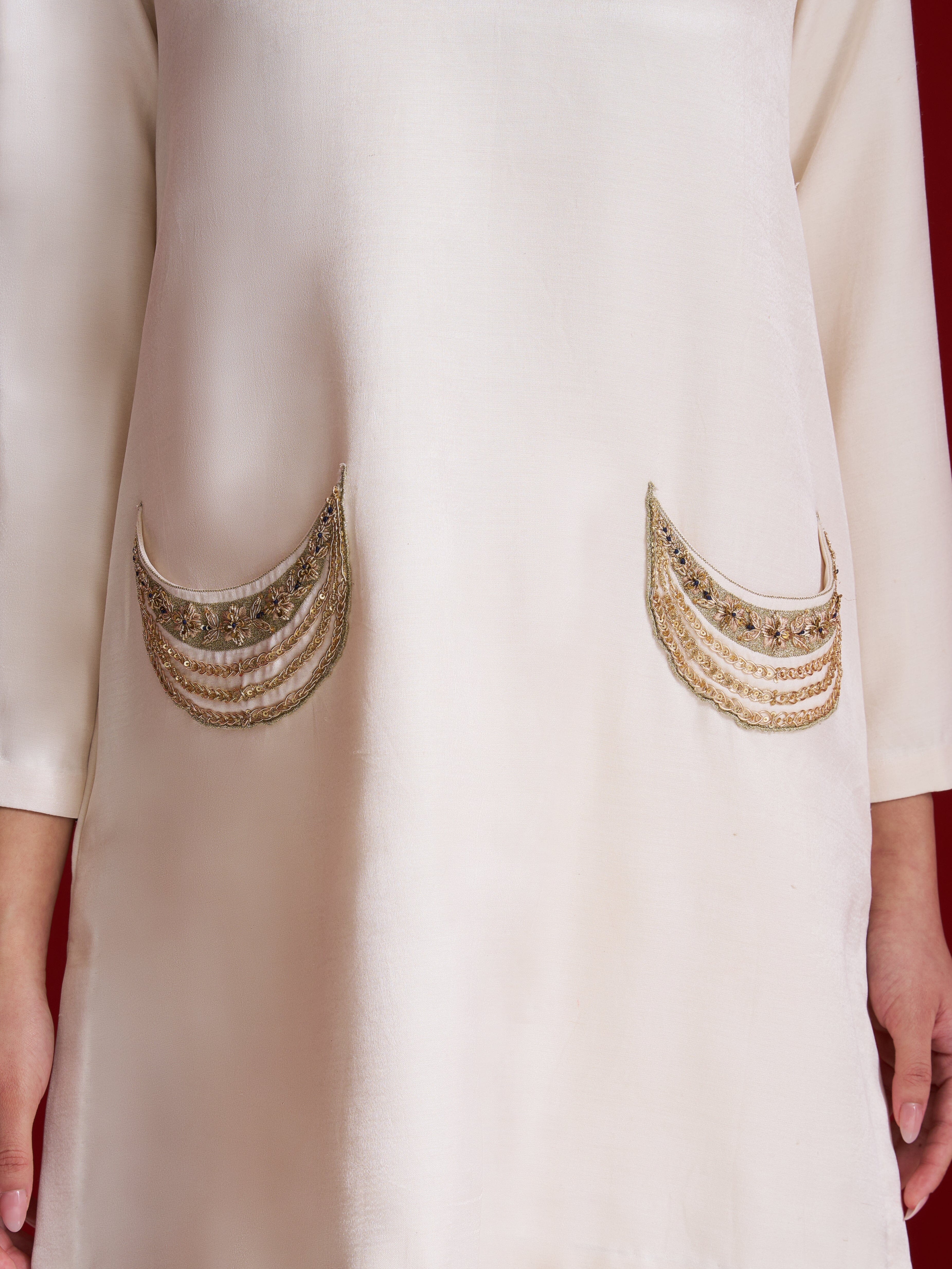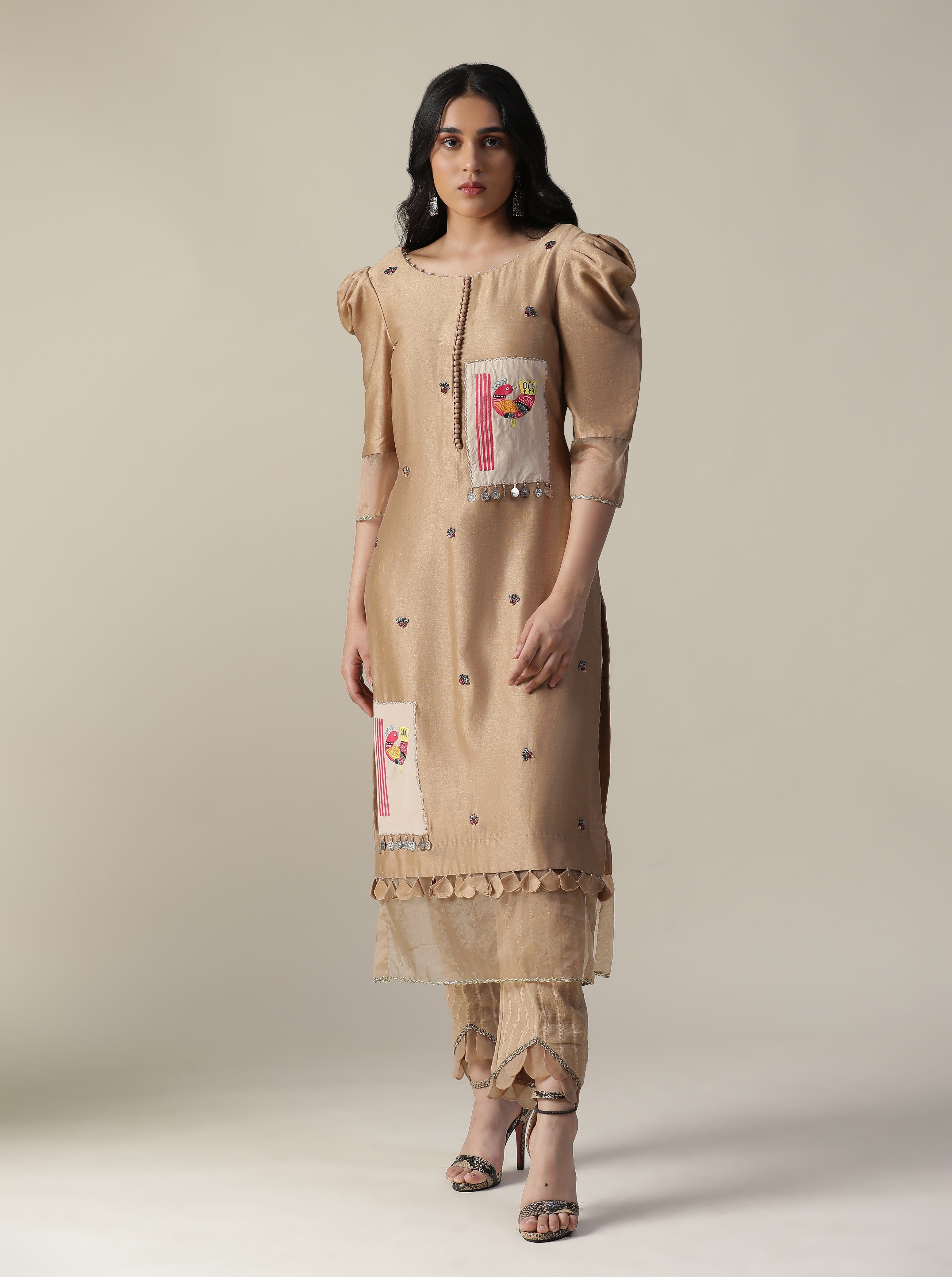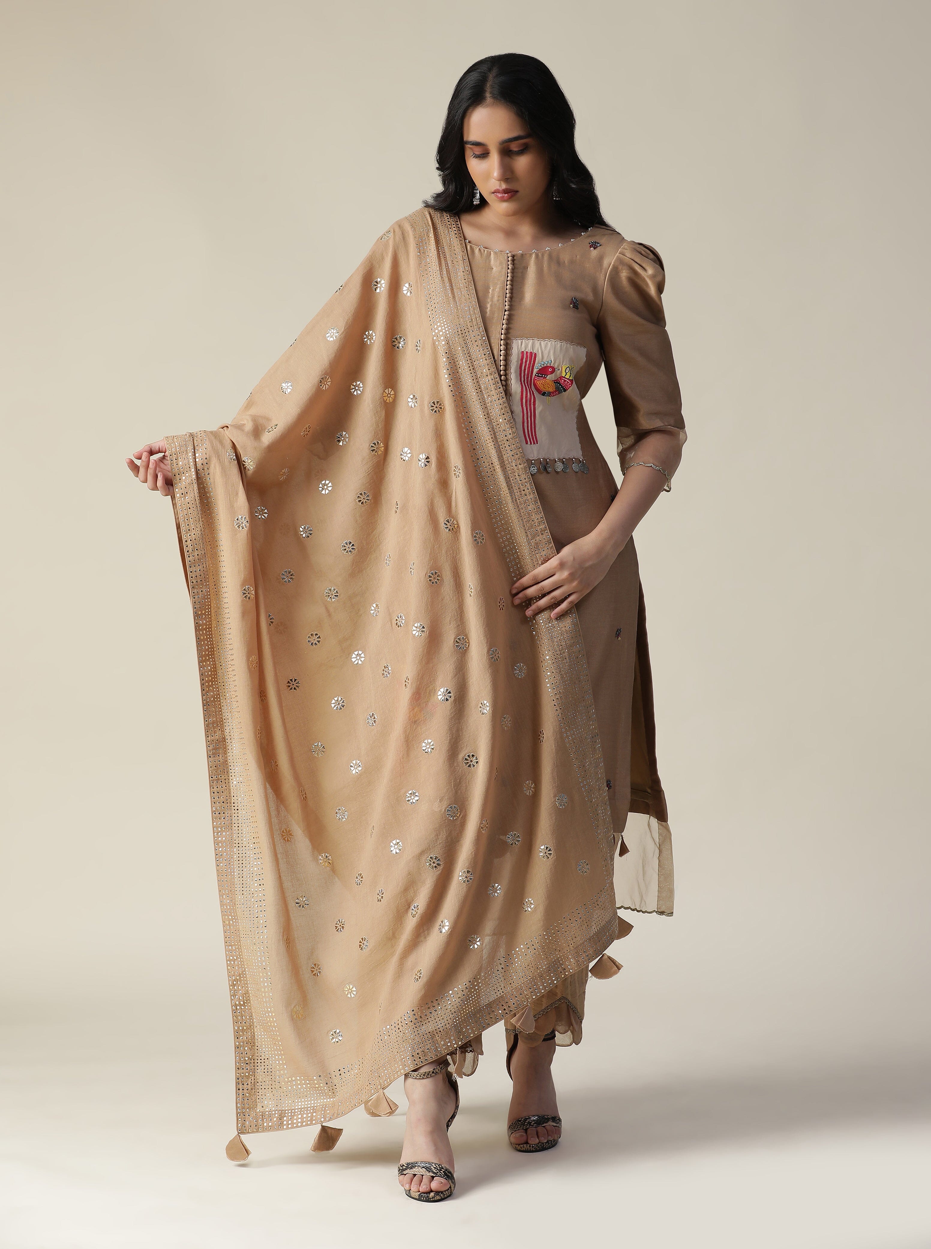 CHANDERI HAND PAINTED BEIGE SUIT SET