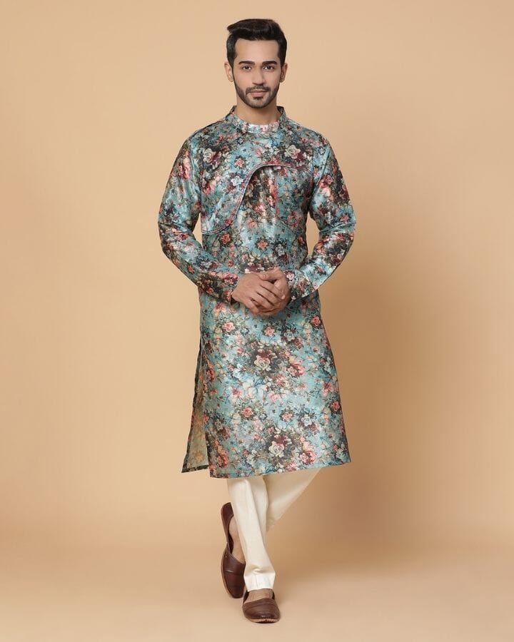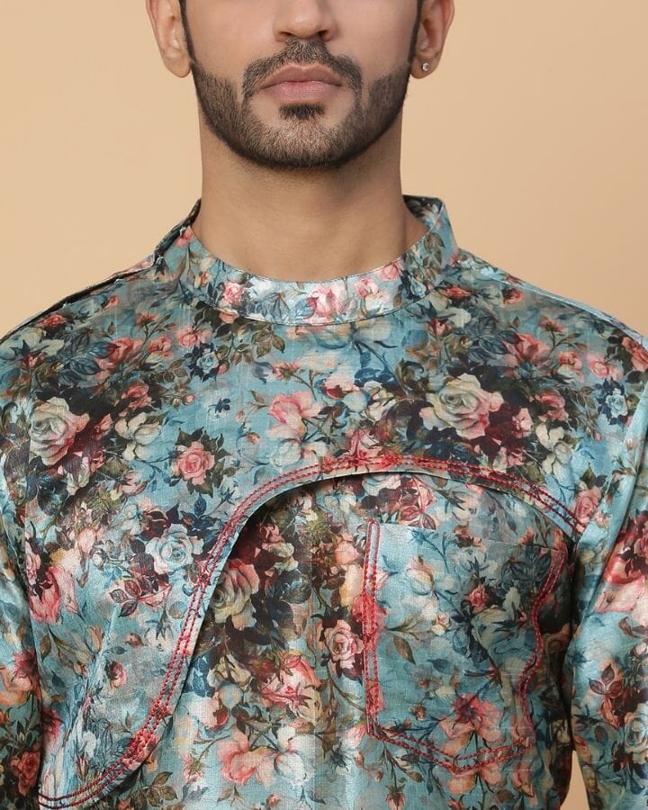 Charcoal Black Ikat Double Breasted Blazer with Belt & Pants