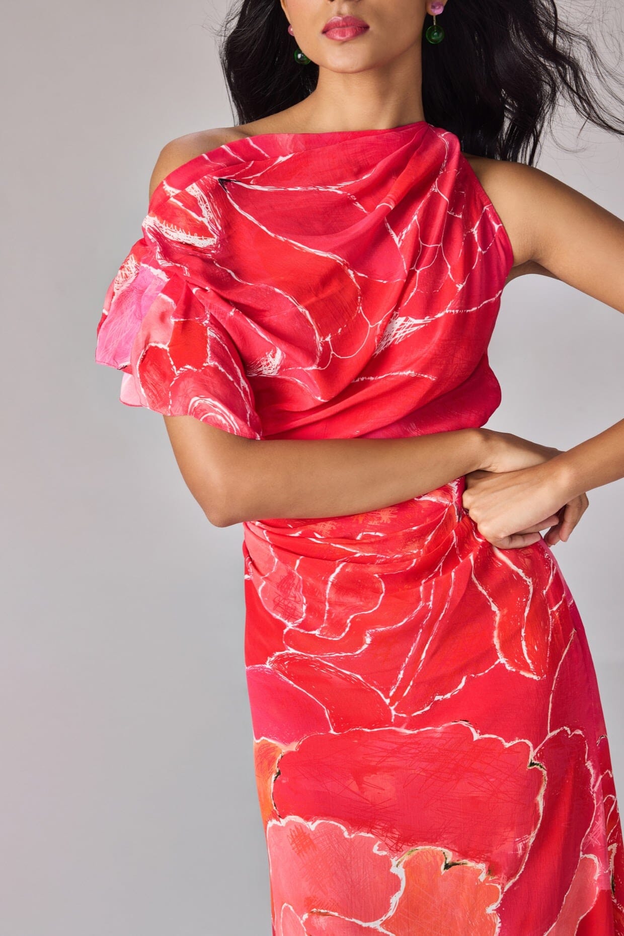 EMERALD DRAPED SHIRT DRESS