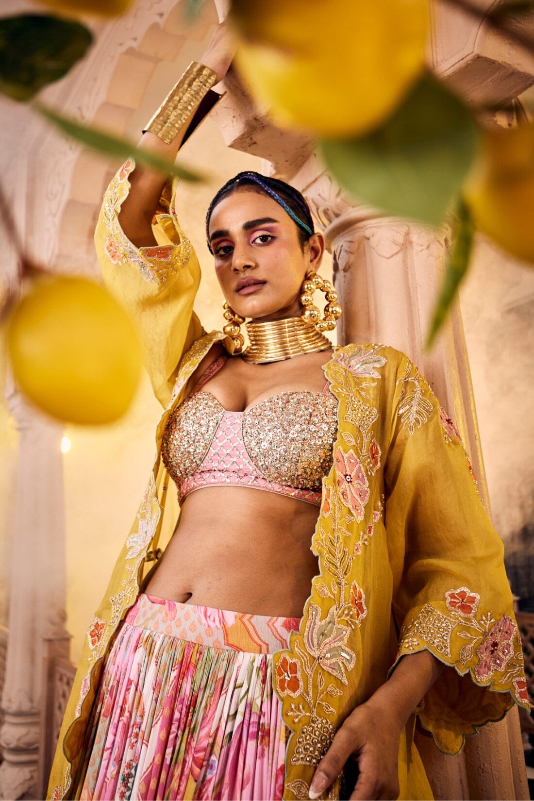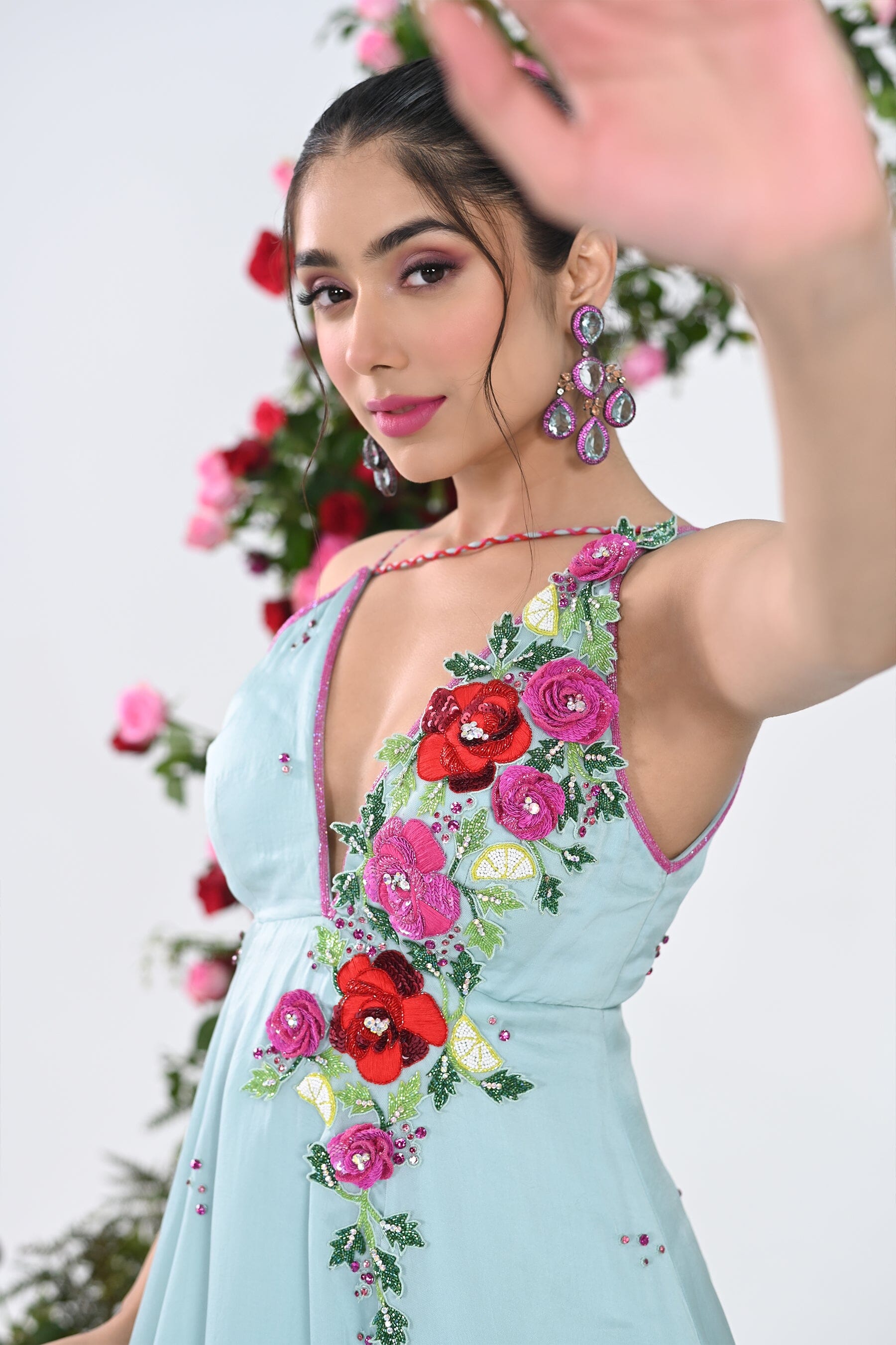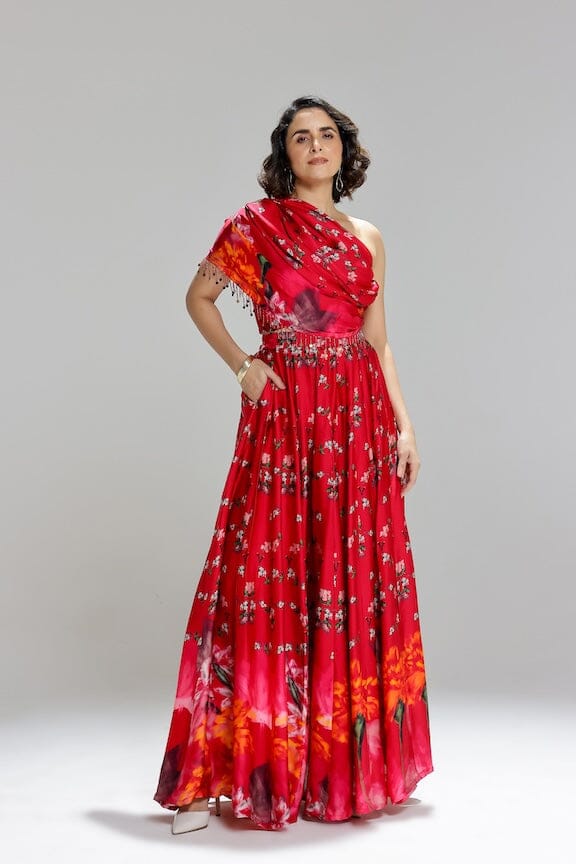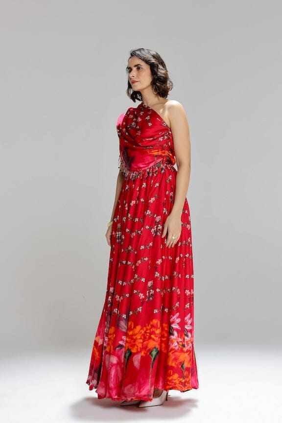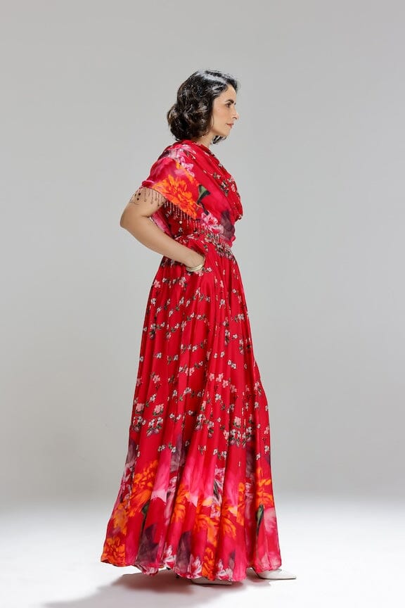 FLORAL CAPE SASS BUSTIER SKIRT SET