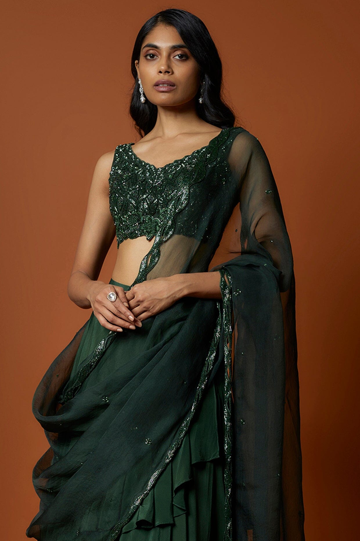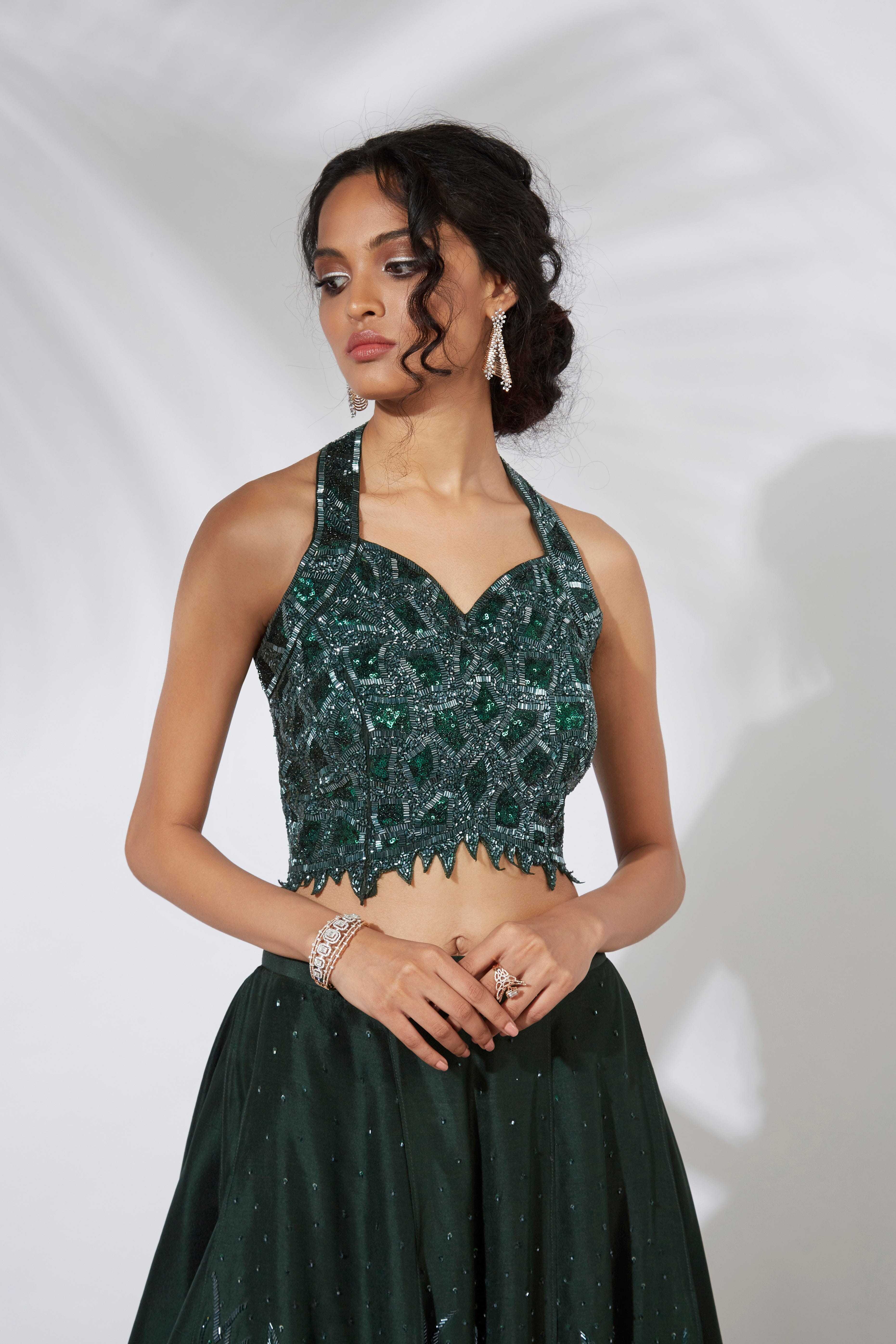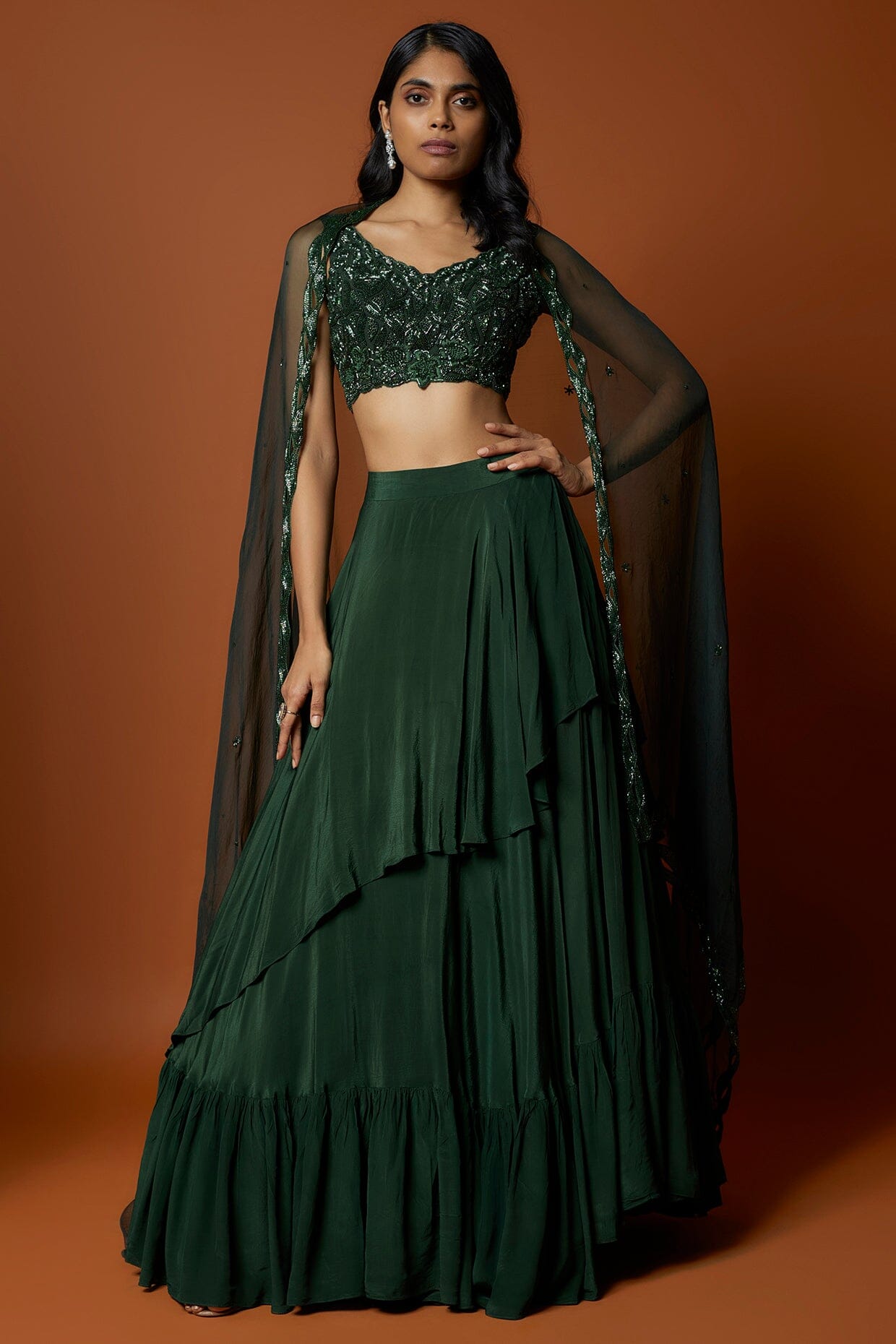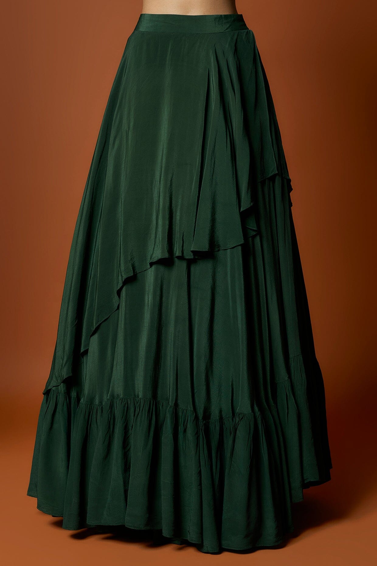 Forest Green Embroidered Choli Skirt And Dupatta Set