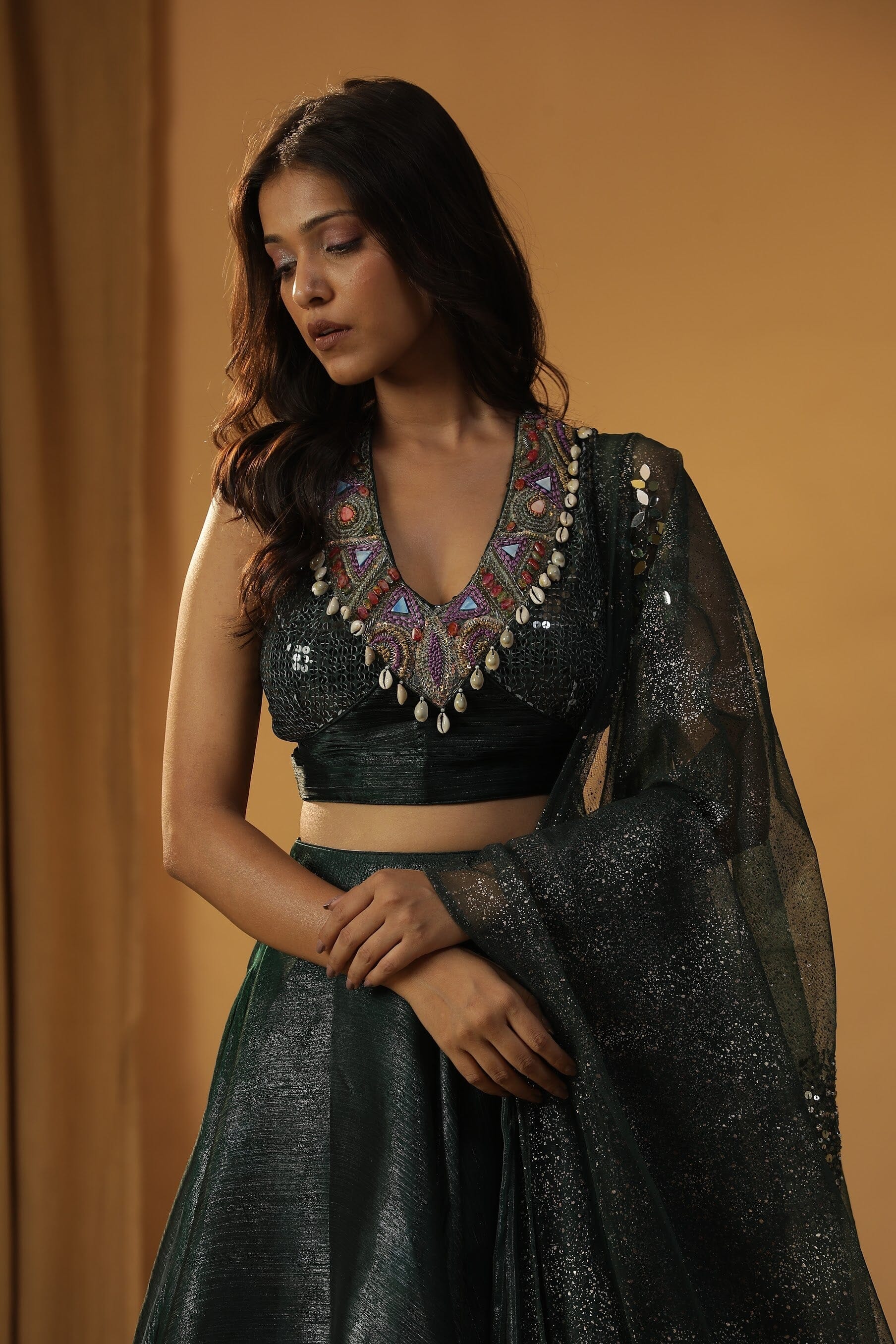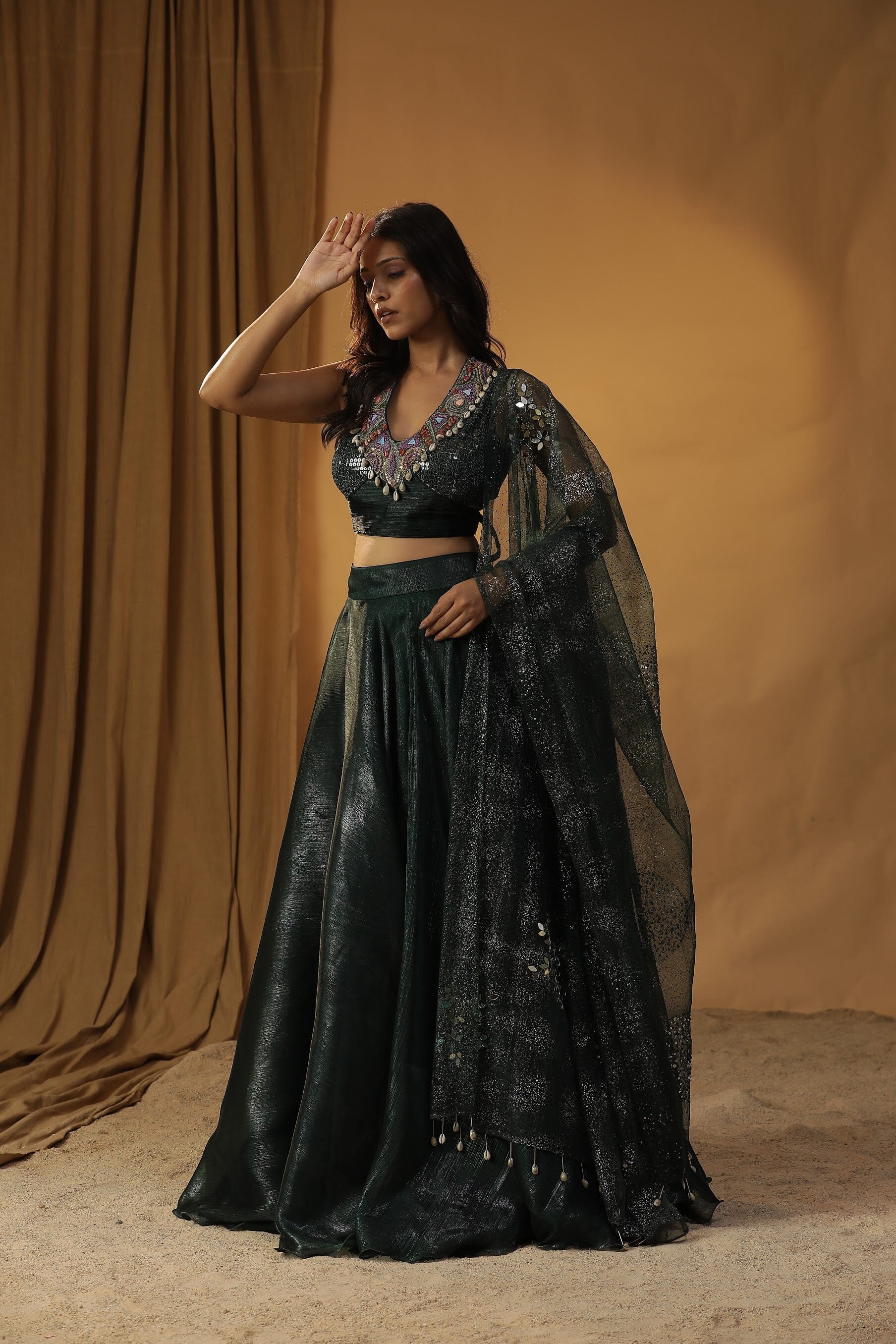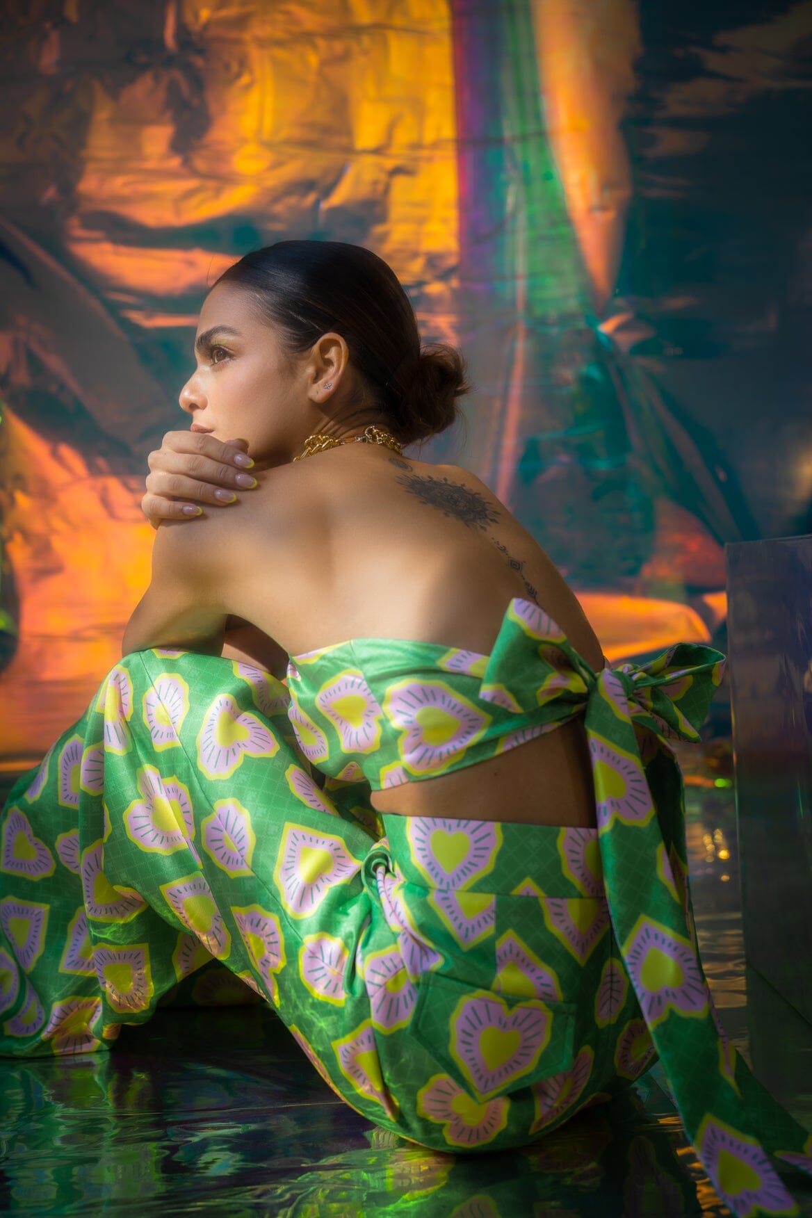 Green Ring Bralette & Pants Set in Blinding Hearts
