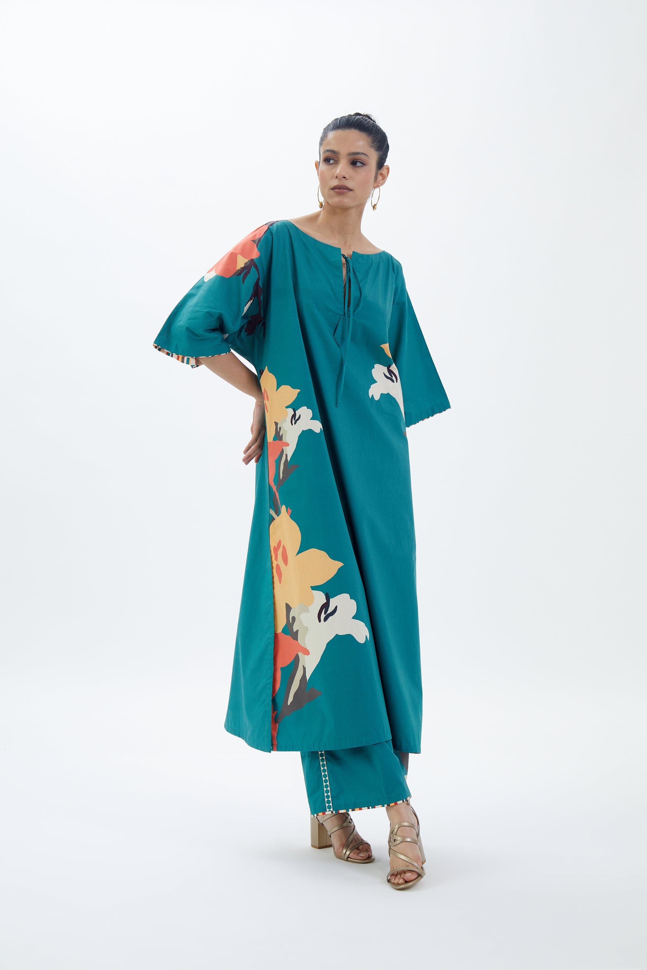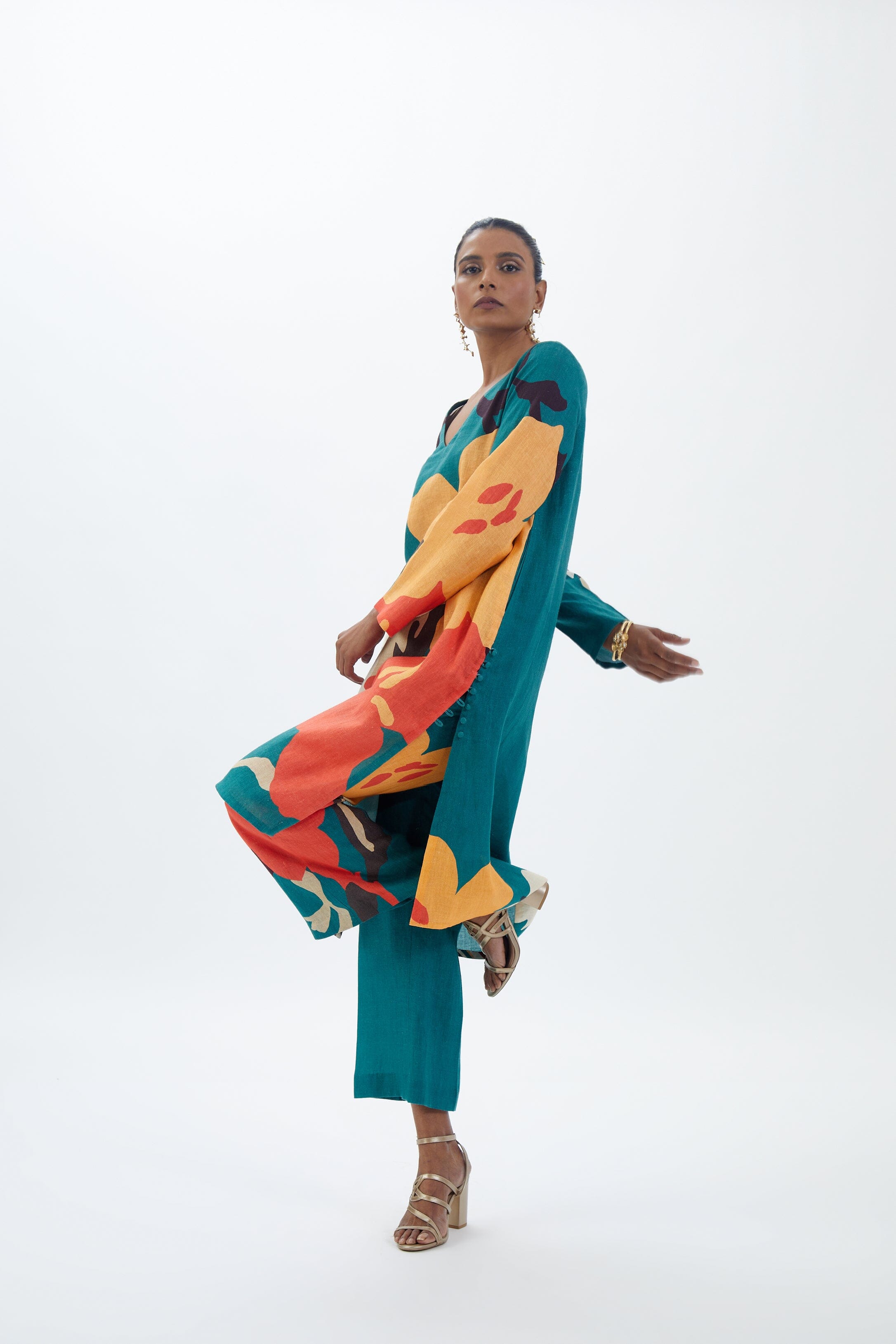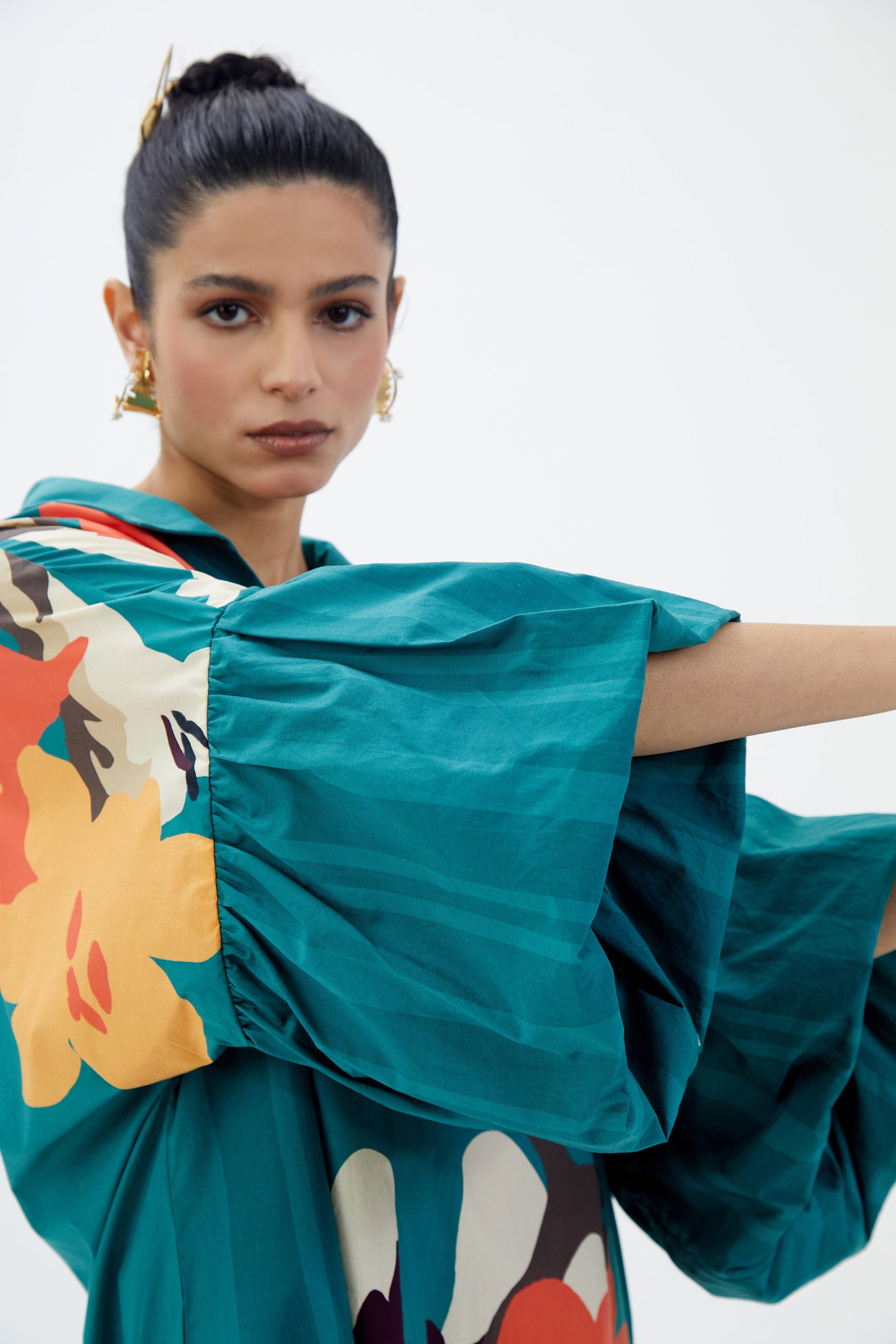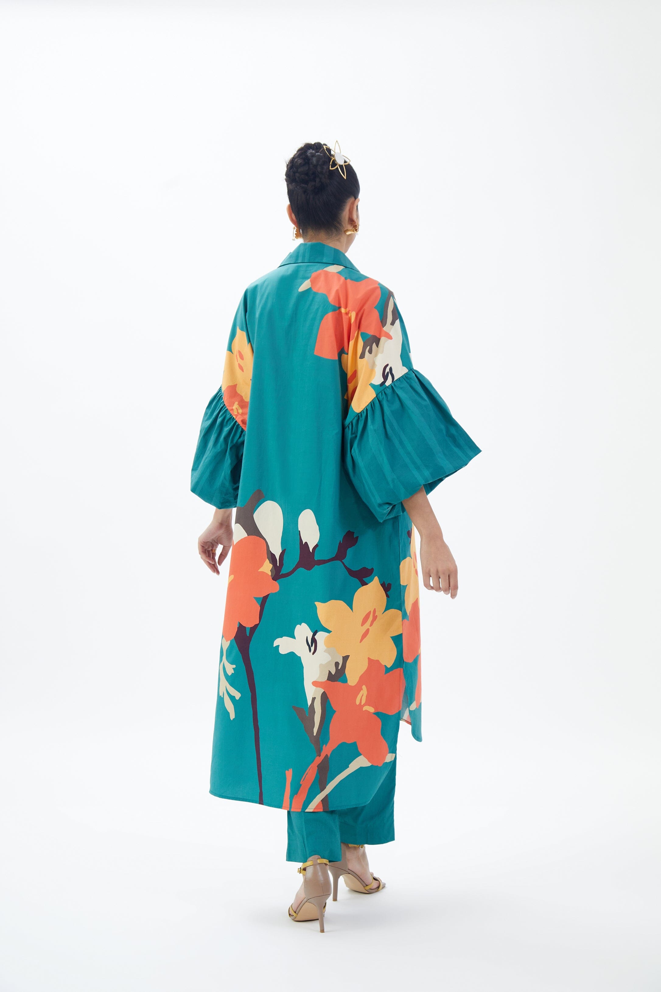 GULBAHAR GREEN FLORAL PRINTED TISSUE KURTA SET