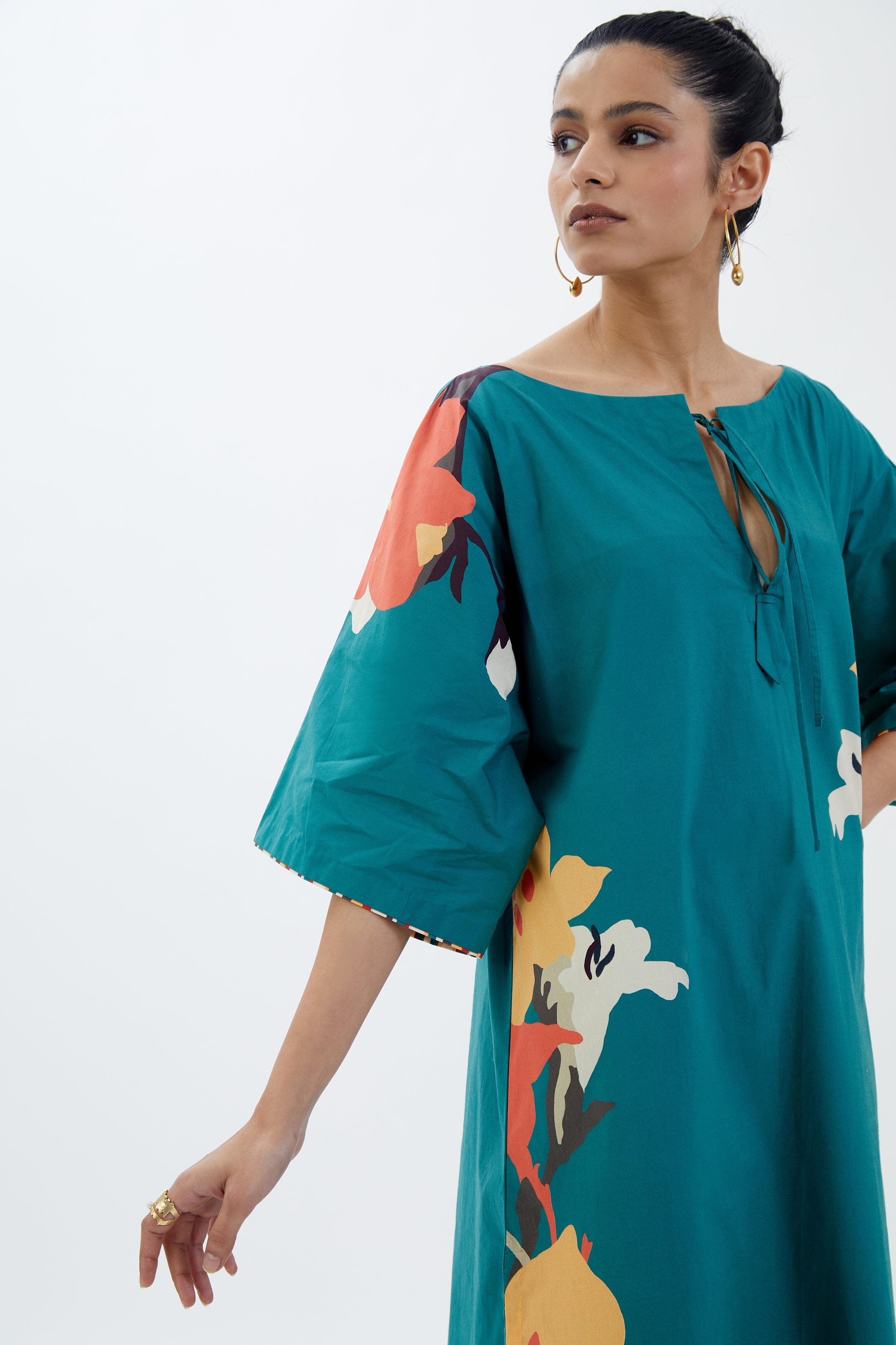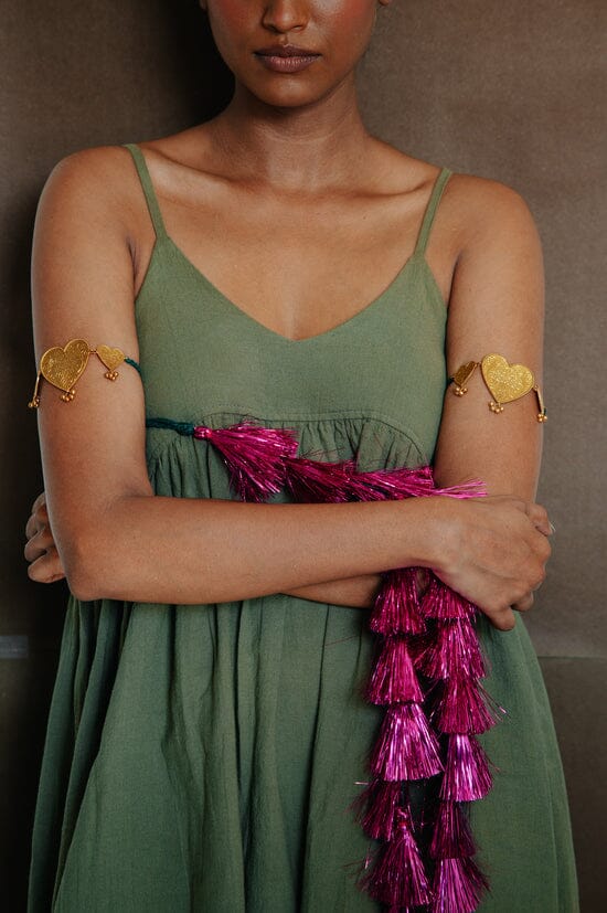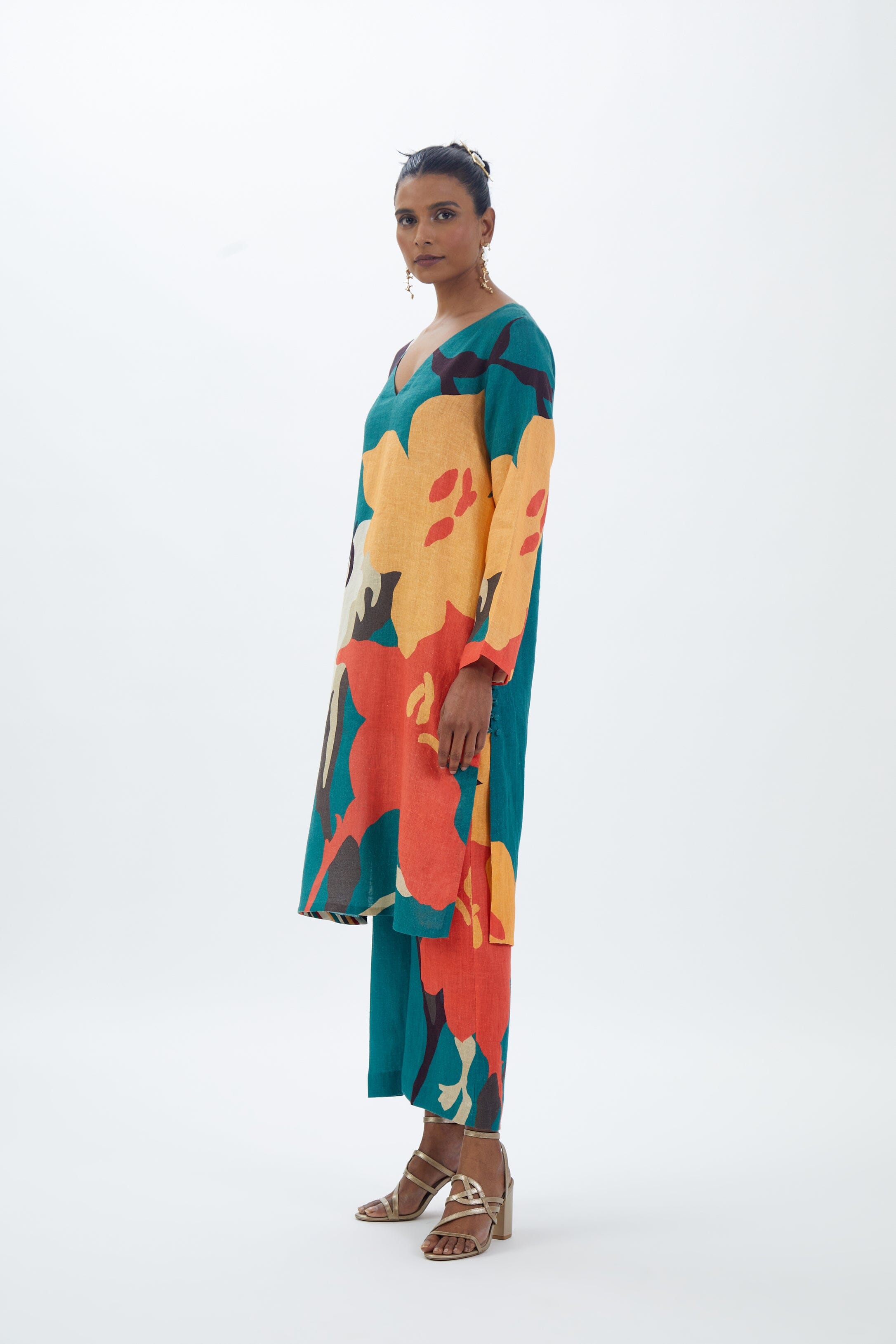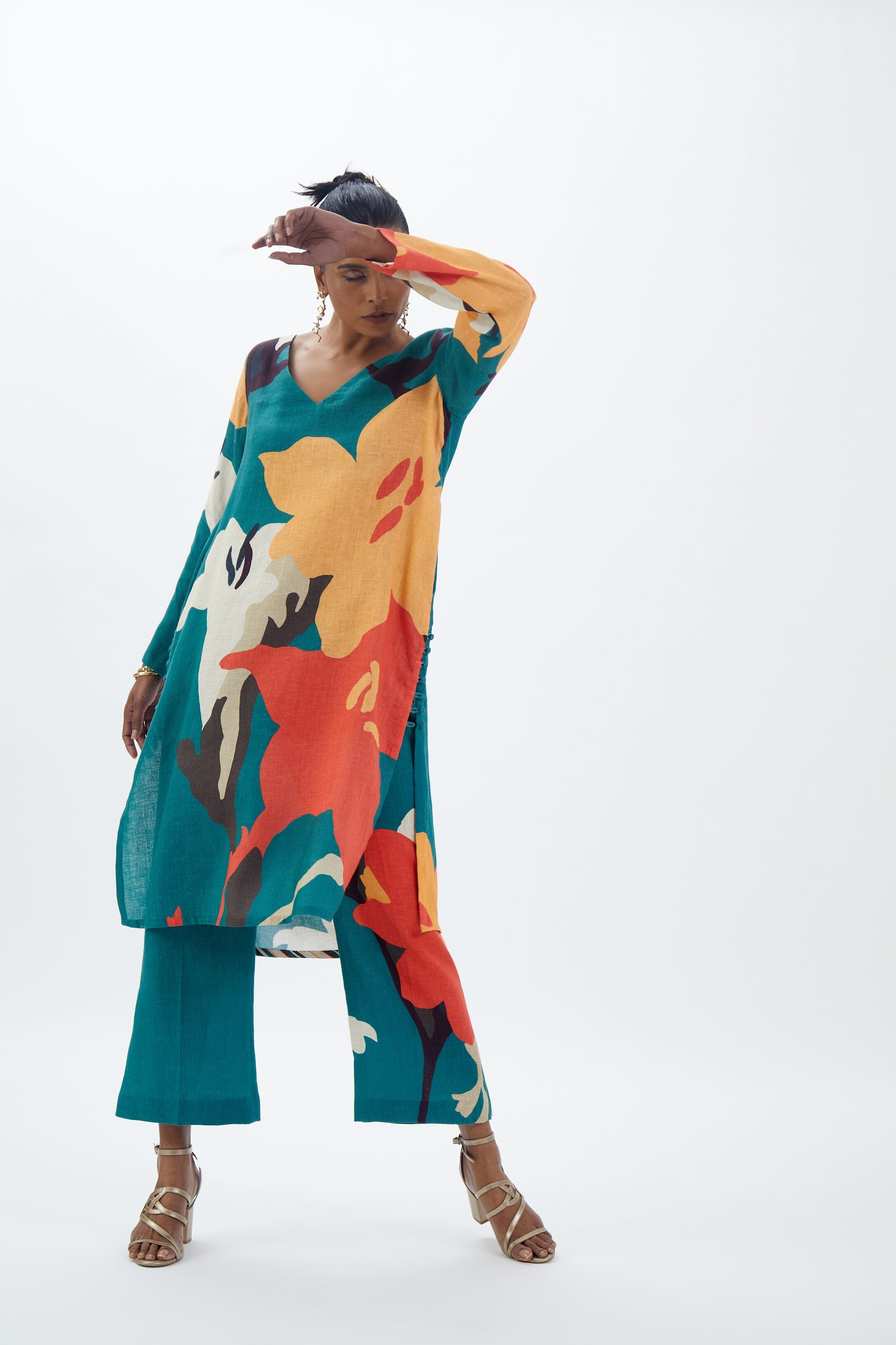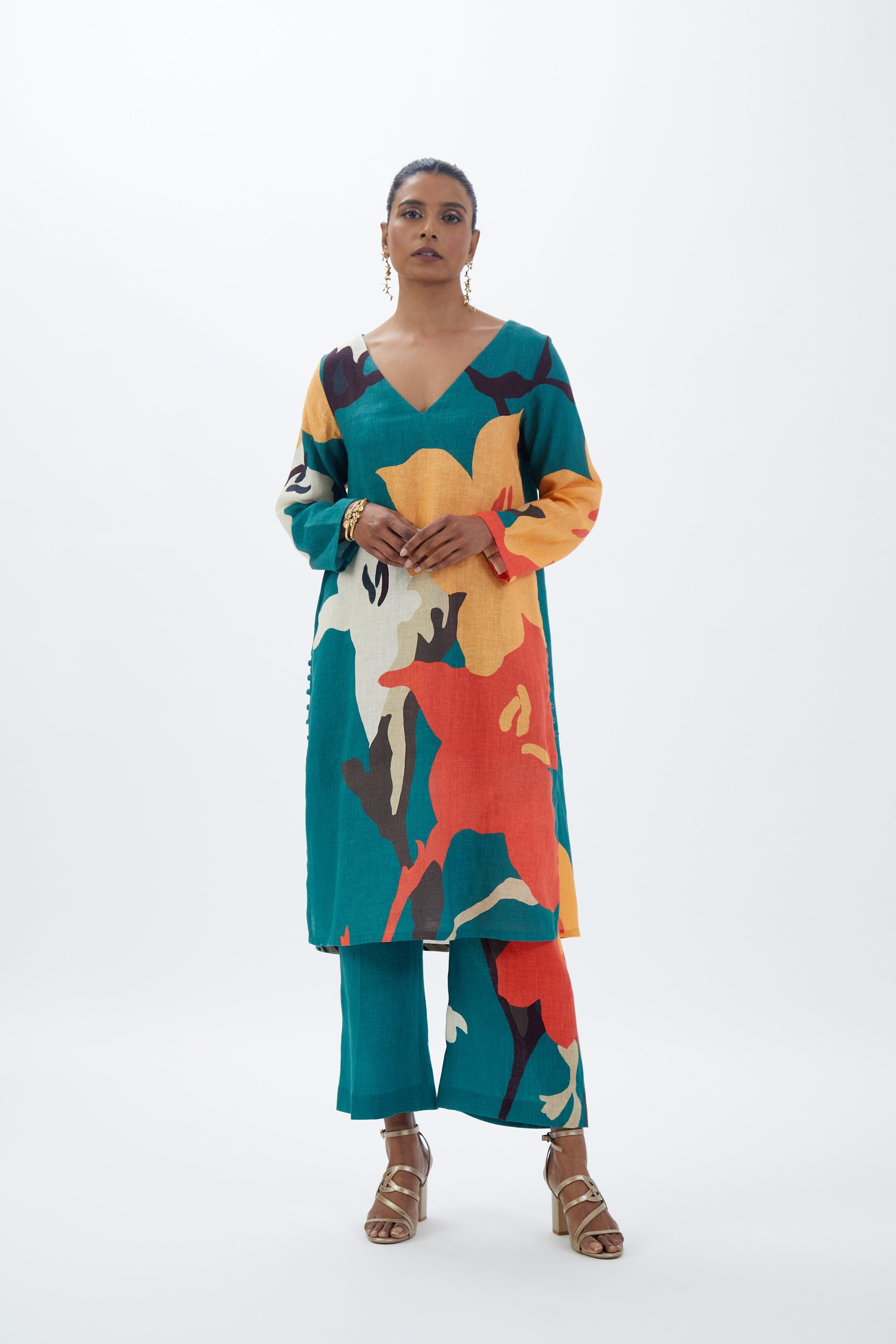 GULBAHAR GREEN FLORAL PRINTED TISSUE KURTA SET