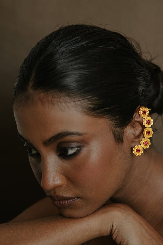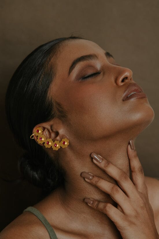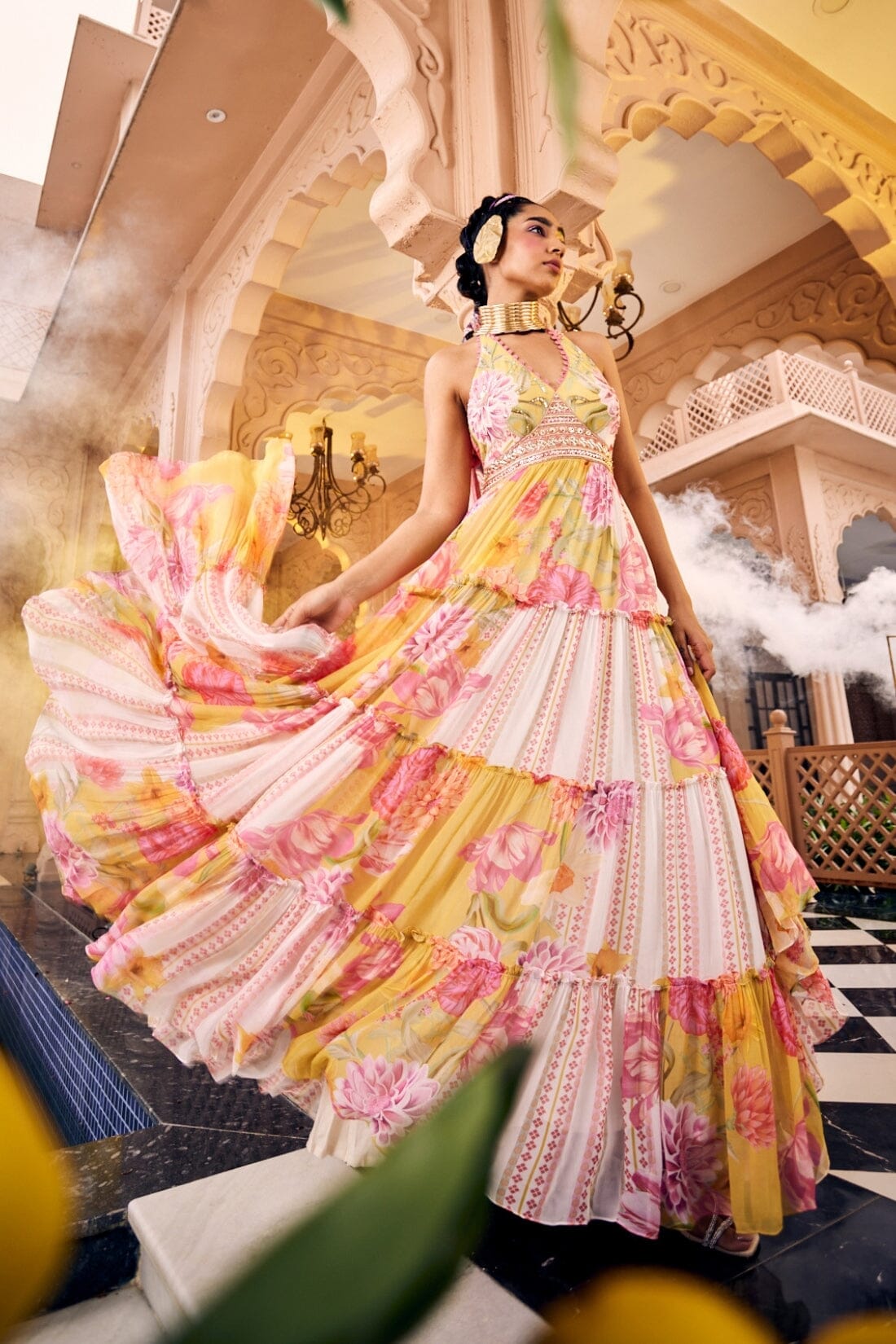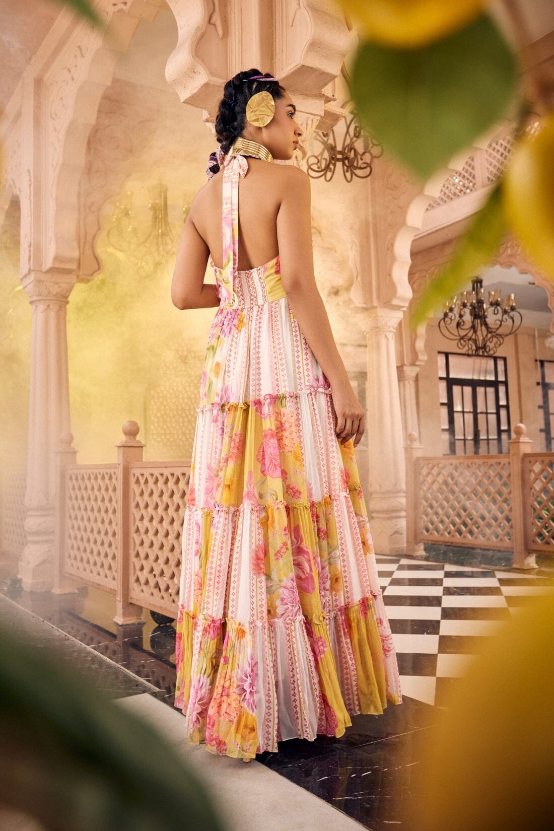 GULBAHAR BEIGE FLORAL PRINTED TISSUE KURTA SET
