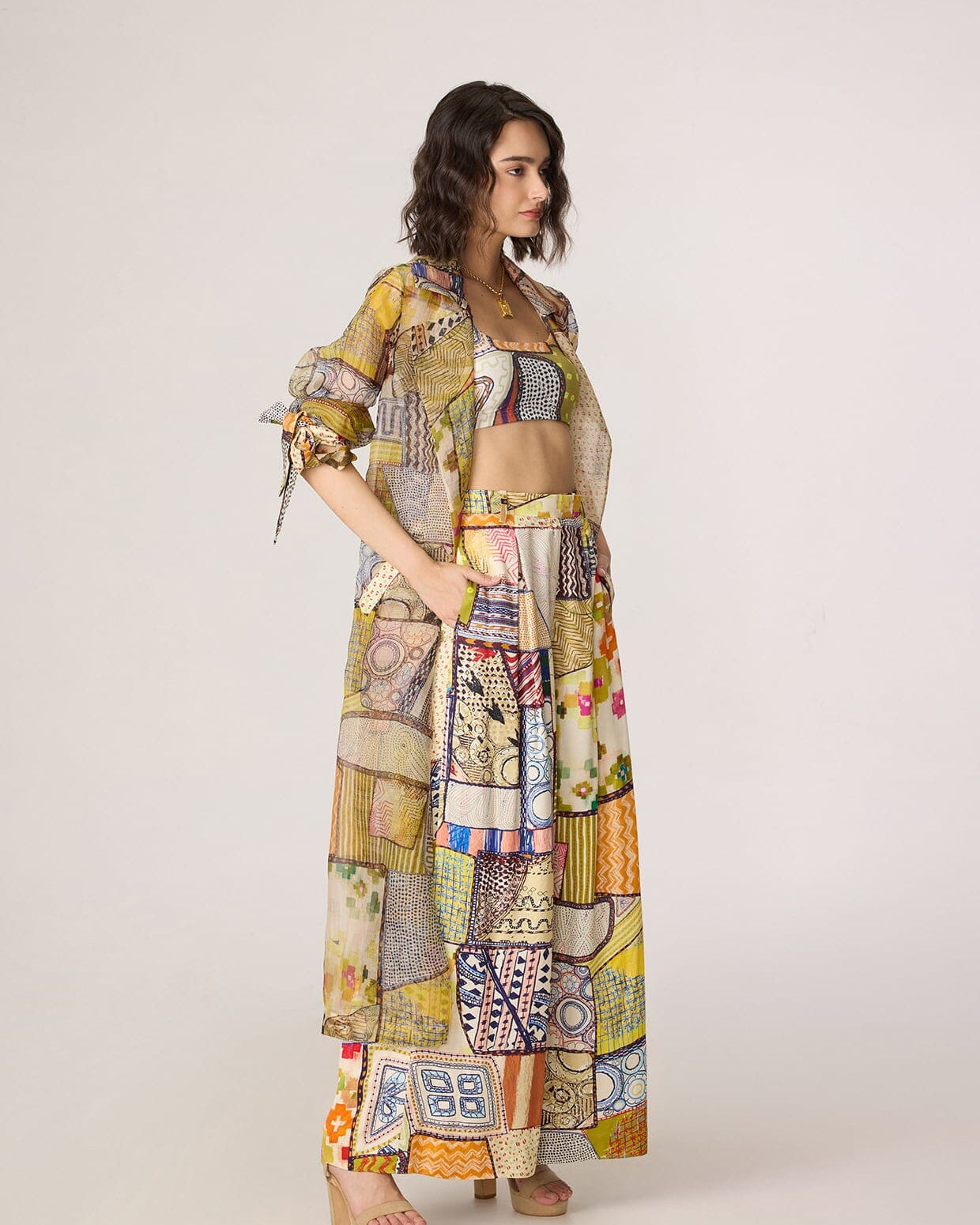 Full-length trousers featuring the Rustic Stripes print. Designed with a clean waistband and a tapered leg, they offer a sharp yet comfortable silhouette.