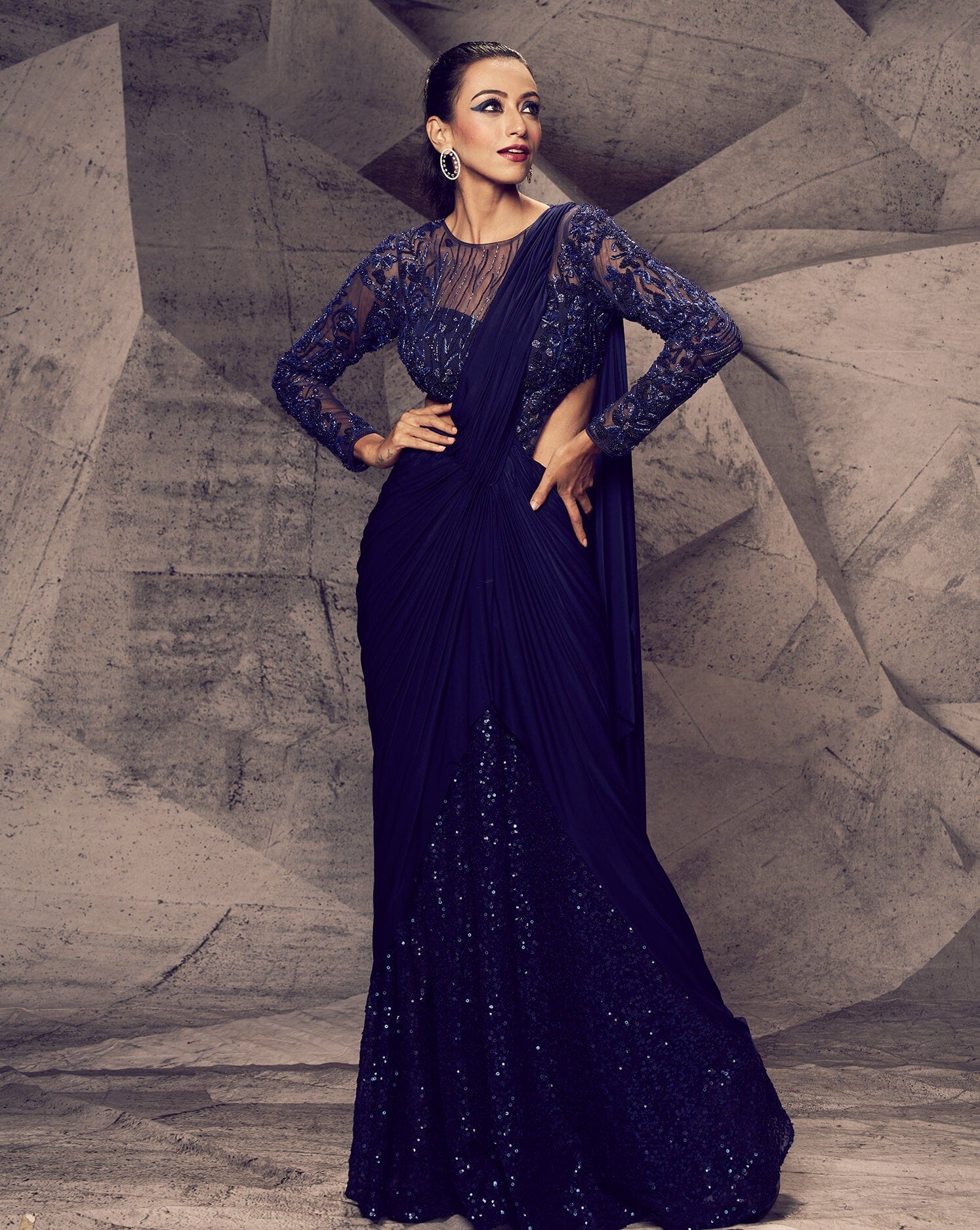 The Shimmering Blue Leotard Sari