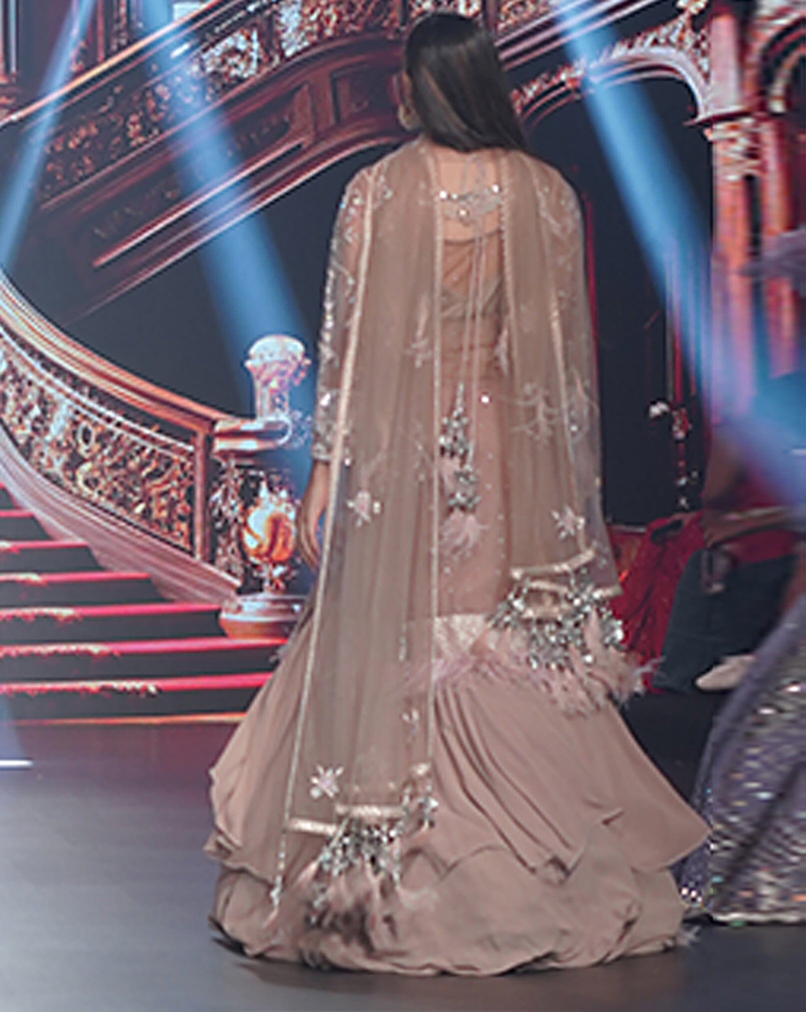 Embroidery : 3D floral embroidery done with resham thread, stones, sequins and kardana beads