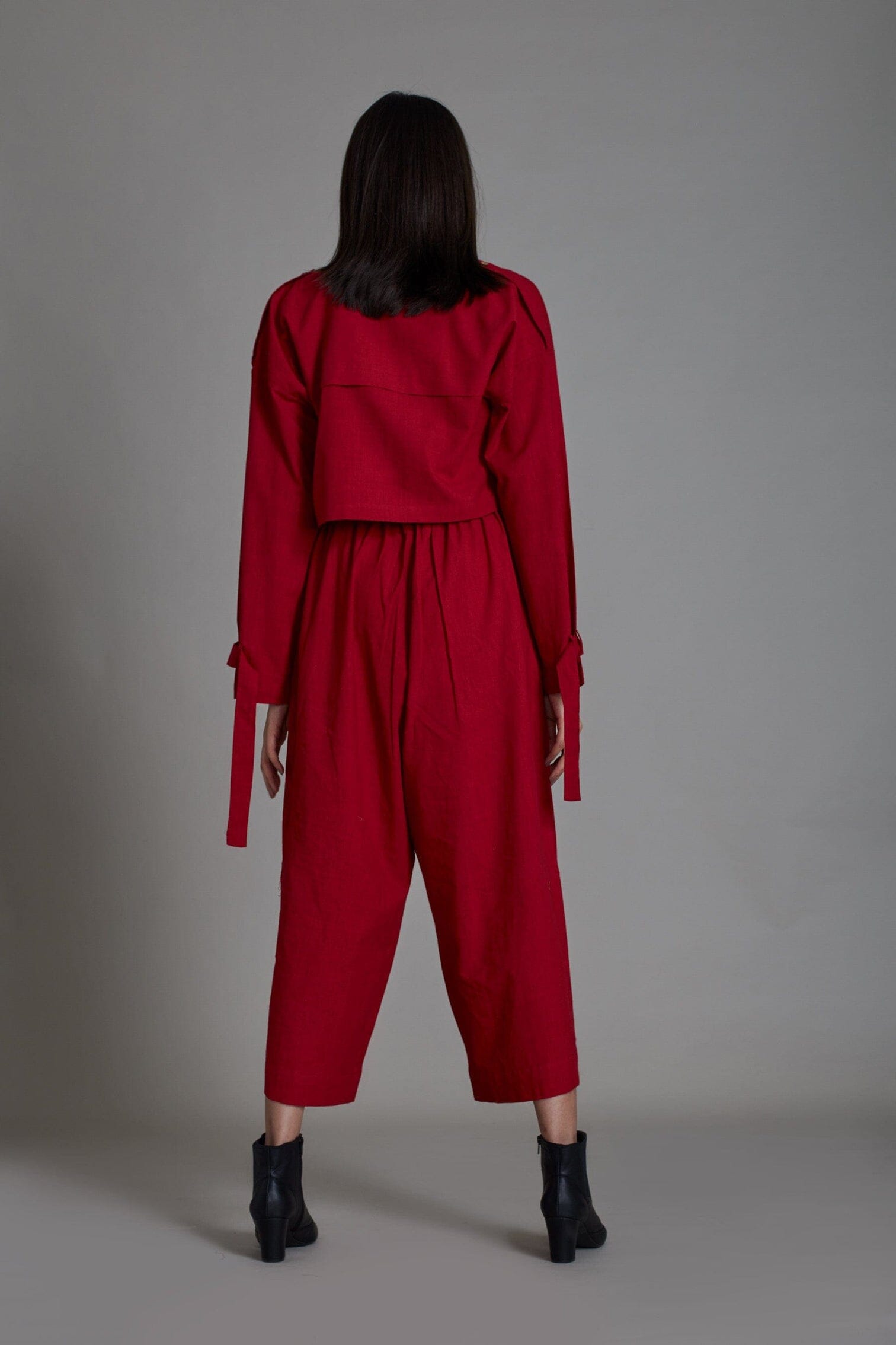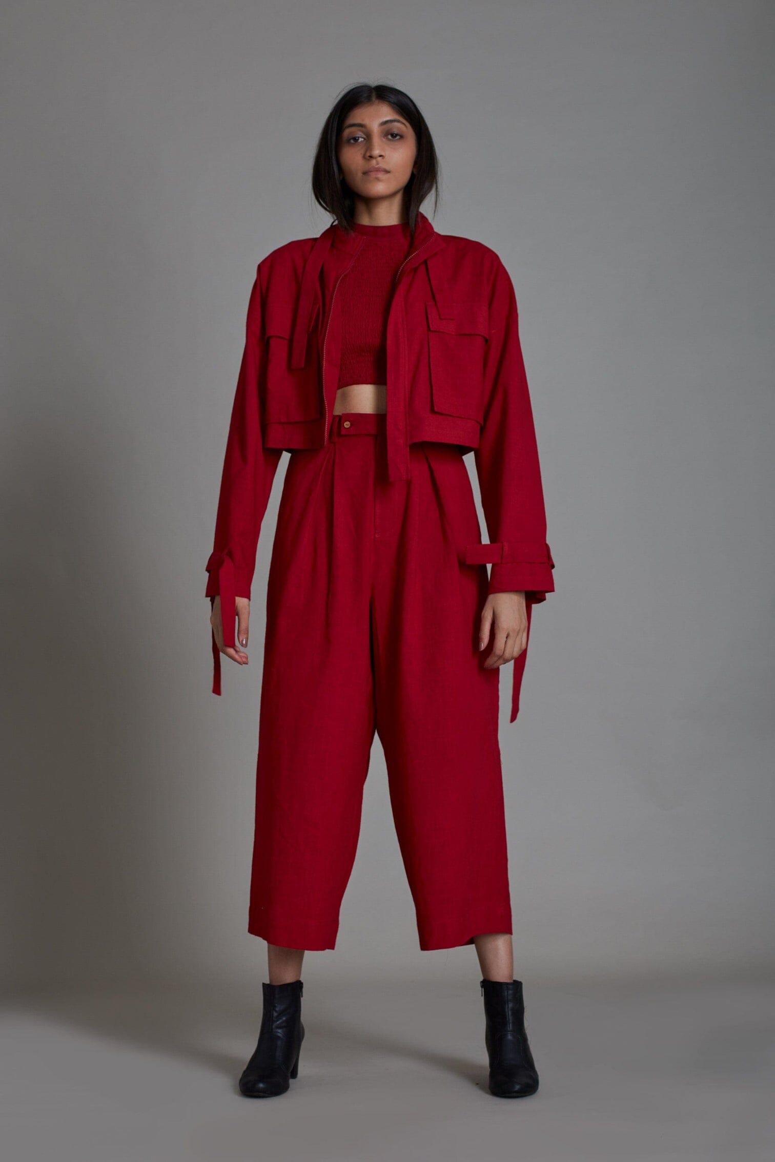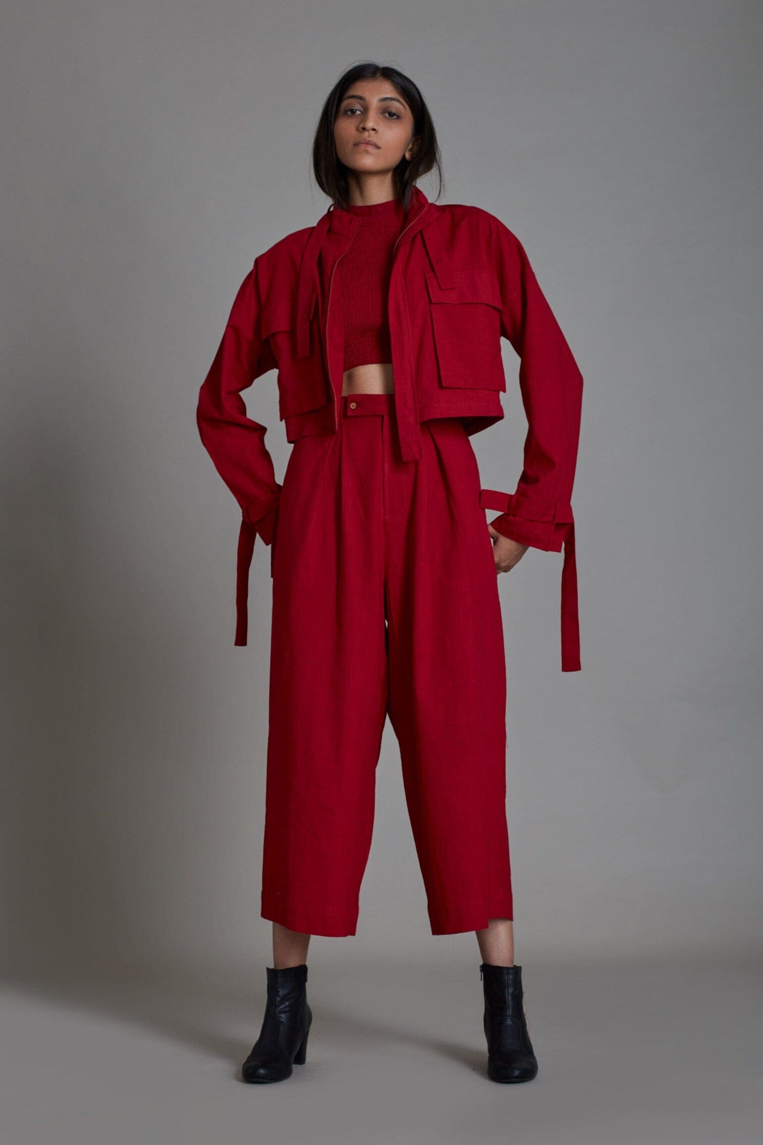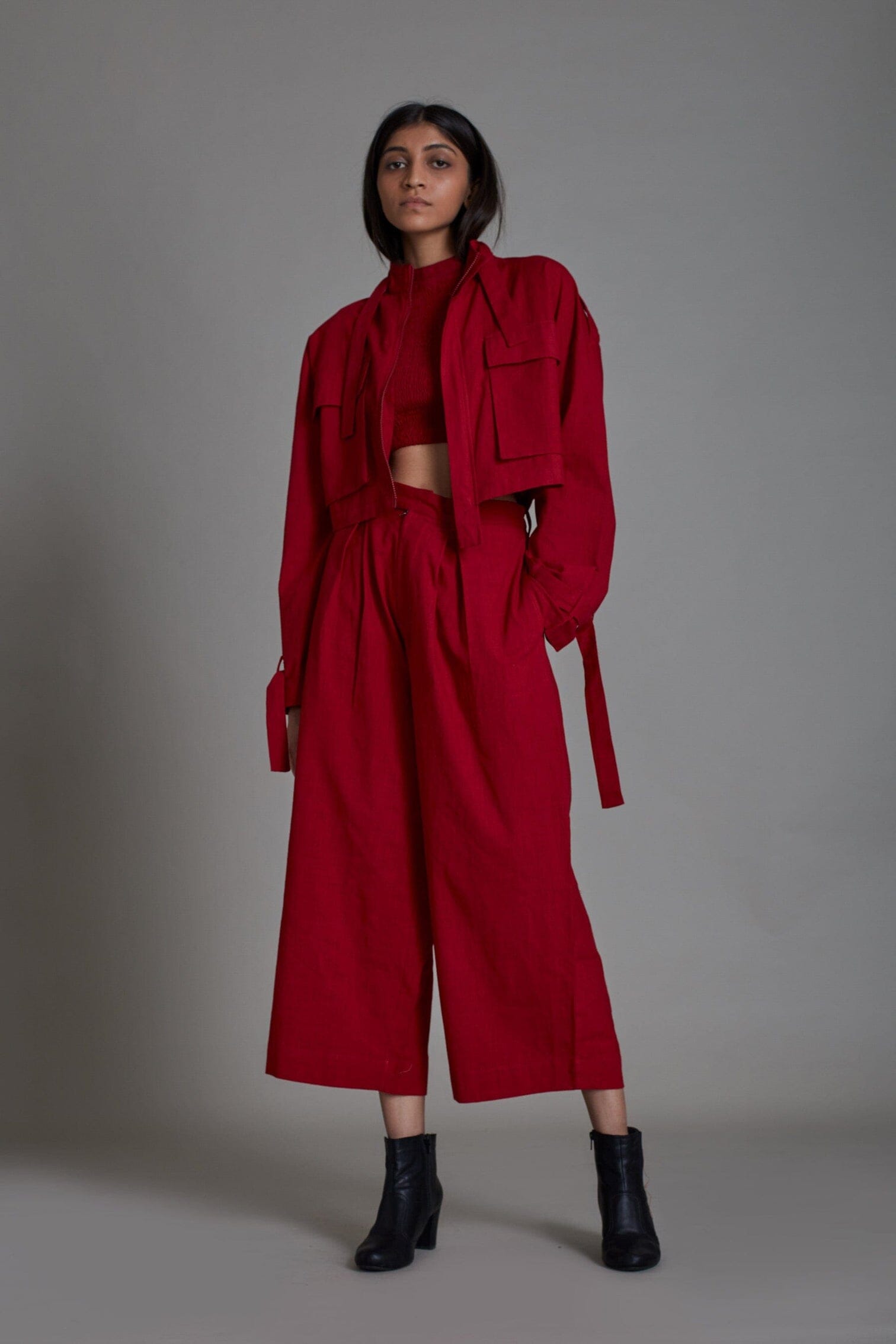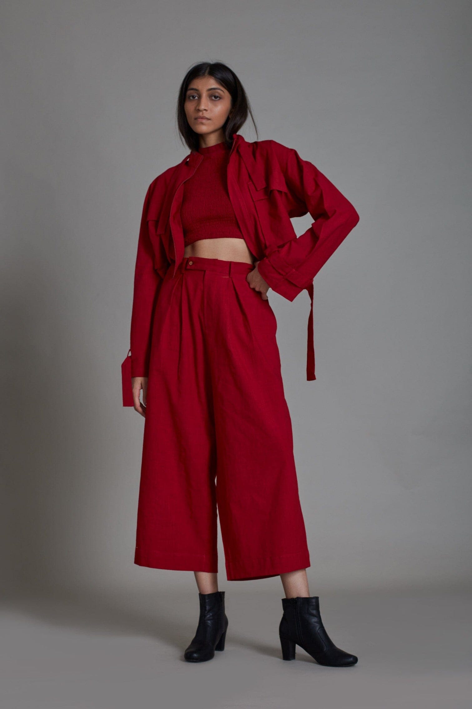 This set features a smocked racer-back top wide-leg pants and a shuffle jacket. These pieces are made of hand-woven cotton. The wide-leg pants are comfortable with elastic detailing at the back and come with pockets too. The top is made with smocked fabric and is cut in style to fit perfectly. Style the pieces together for an edgy look or style it separately for a more casual look. (set of 3)