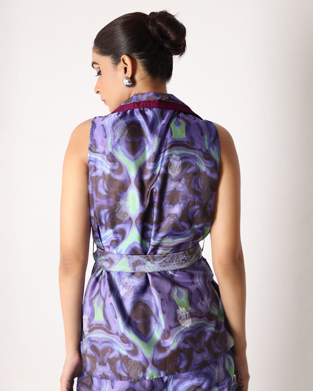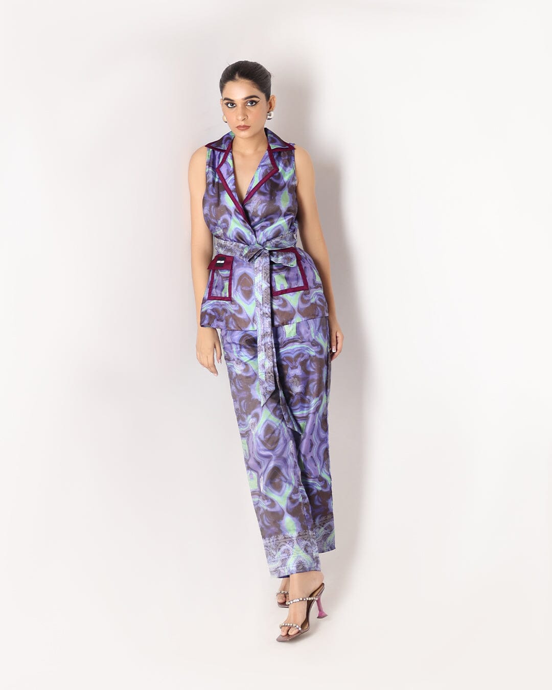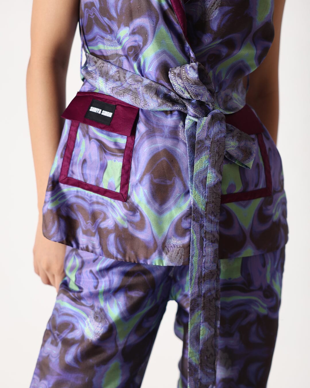 Experience celestial enchantment with our Galaxy Tie-Up Coord Set. Made from exquisite banarasi silk fabric, this set features a captivating galaxy print and a trendy tie-up design, creating a coordinated ensemble that exudes style and elegance with a touch of cosmic charm. The Pant comes with back elastic for that added comfort.