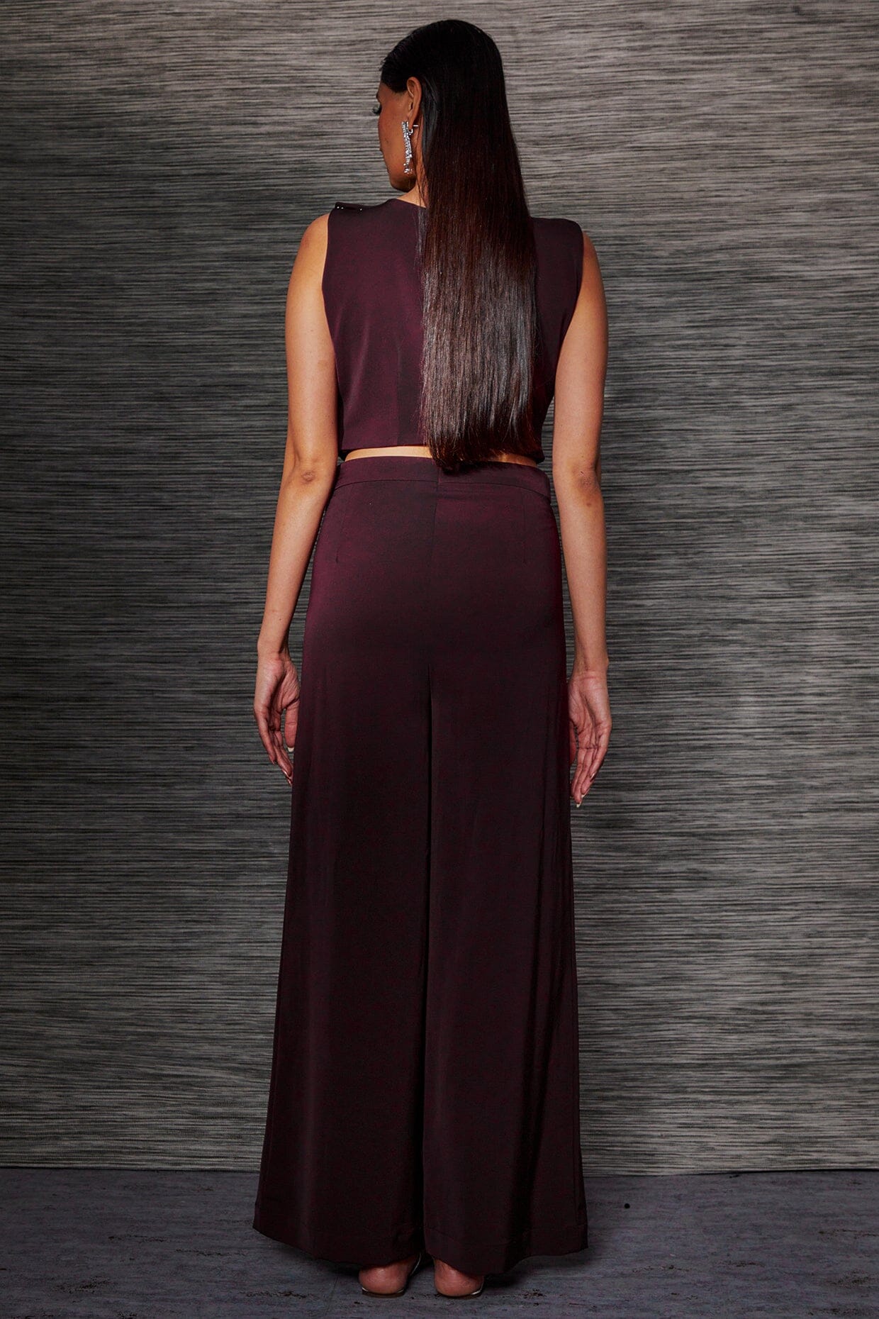 Maroon Pleated Co Ord Set With Drape