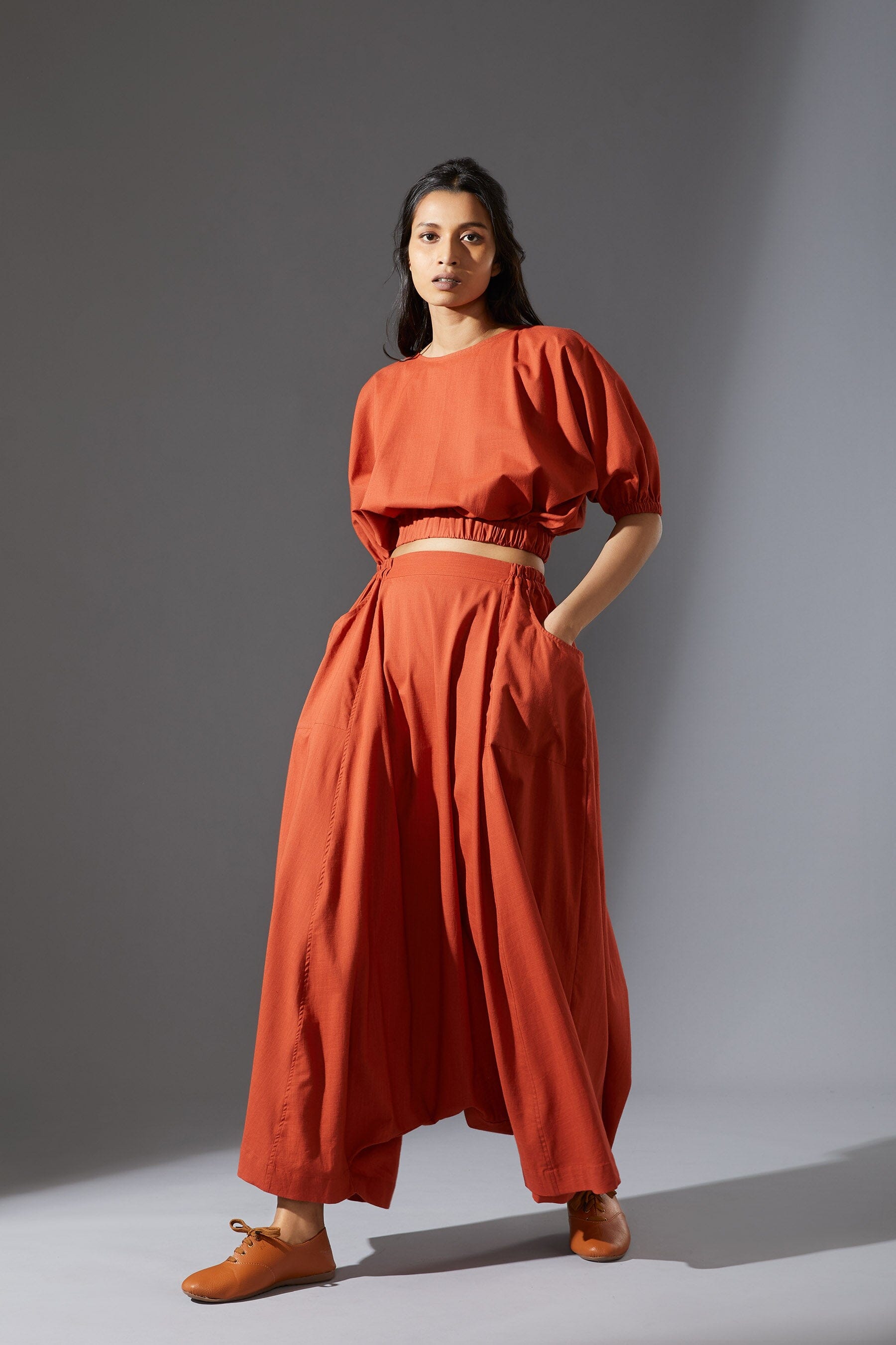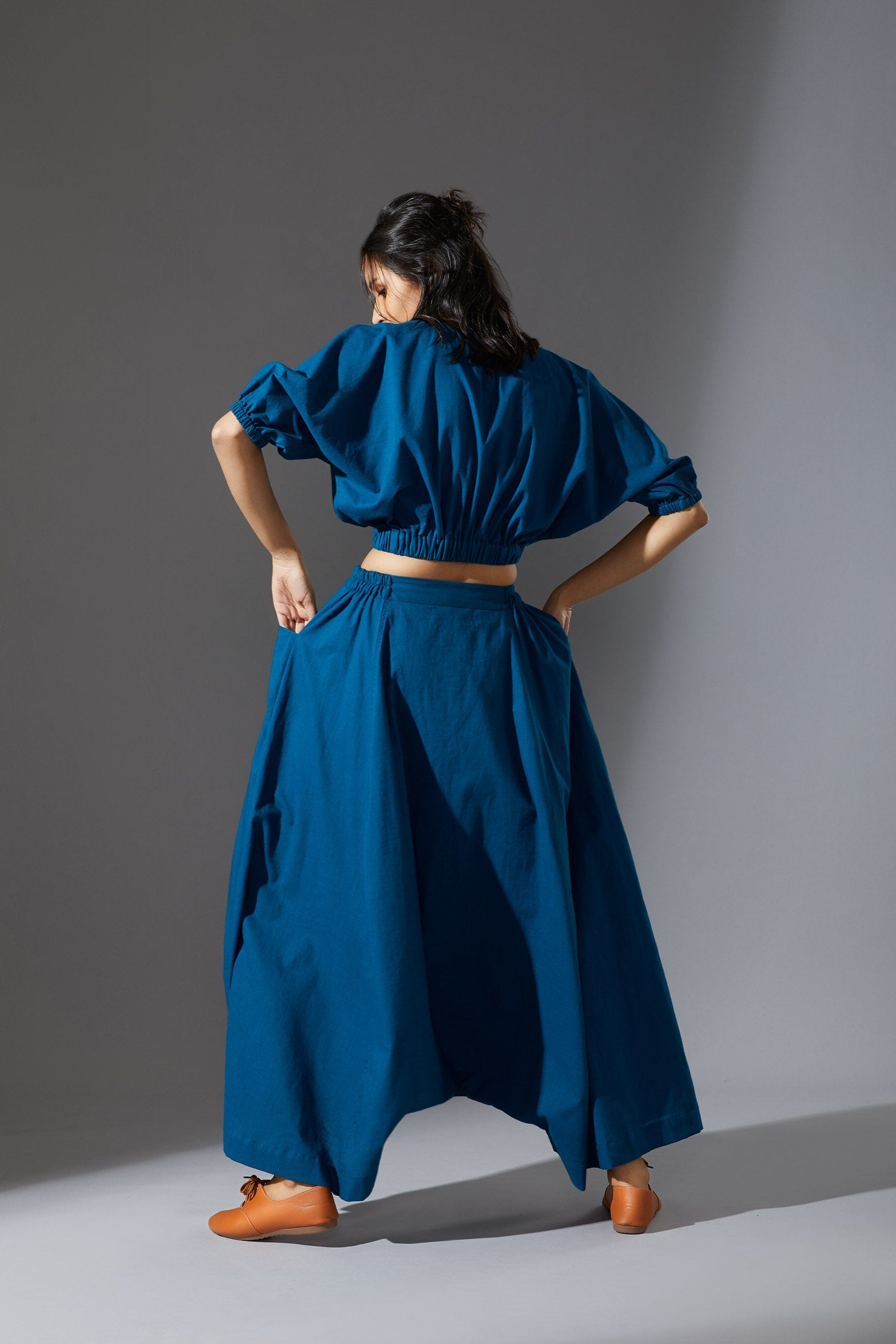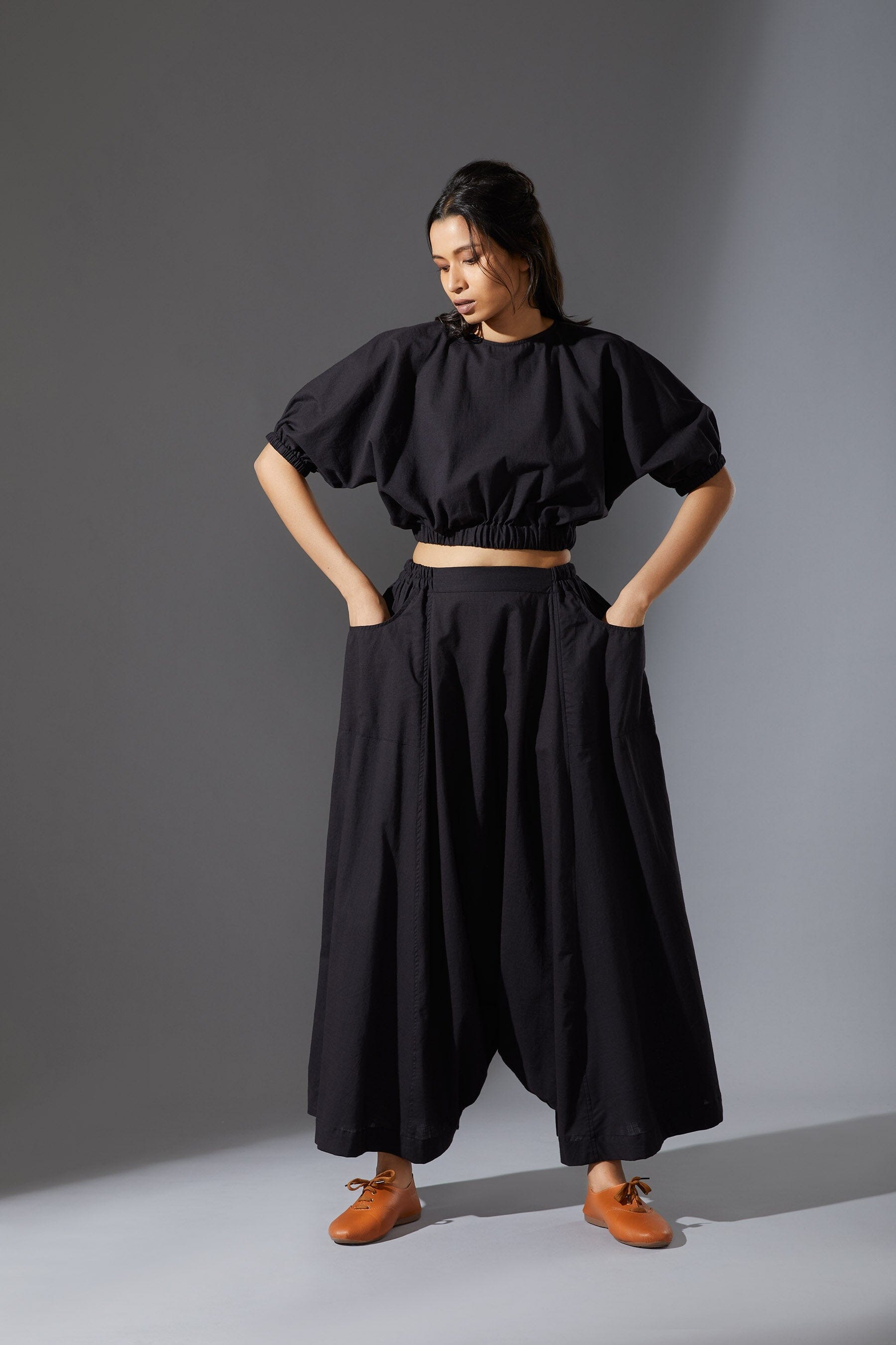 Sphara means bubble in sanskrit !! Our cute bubble top made in luxurious handwoven cotton is super comfortable !! Elastic at the sleeve and bottom hem helps you adjust and style the top the way you like. Team it up with our harems to complete the set!! This set come with the top and pants.