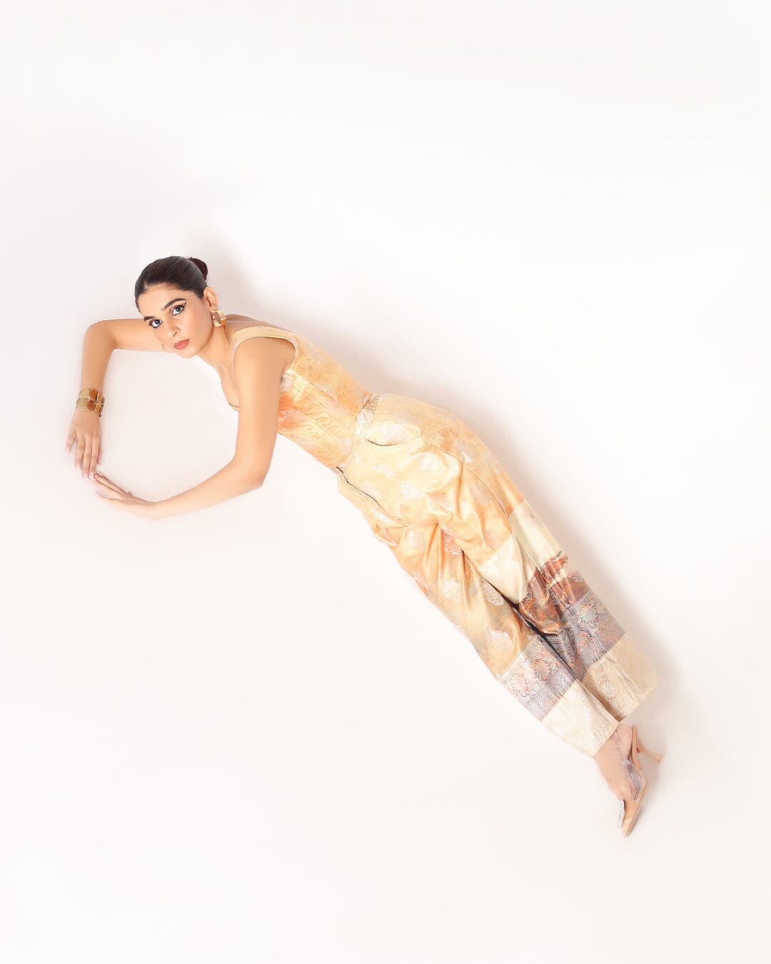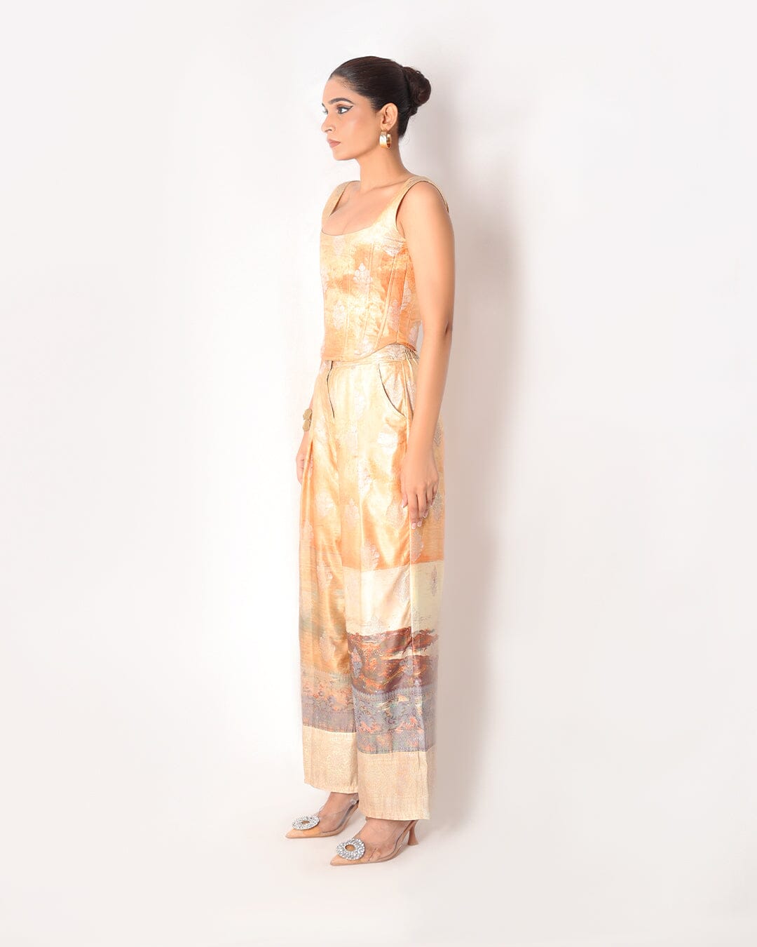 Embrace the allure of a picturesque sunset with our Sunset Corset and Flared Pant Set. Made from exquisite banarasi silk fabric, this set features a stunning corset top and flared pants, capturing the essence of elegance and sophistication with a touch of whimsical beauty. The Pant comes with back elastic for that added comfort.