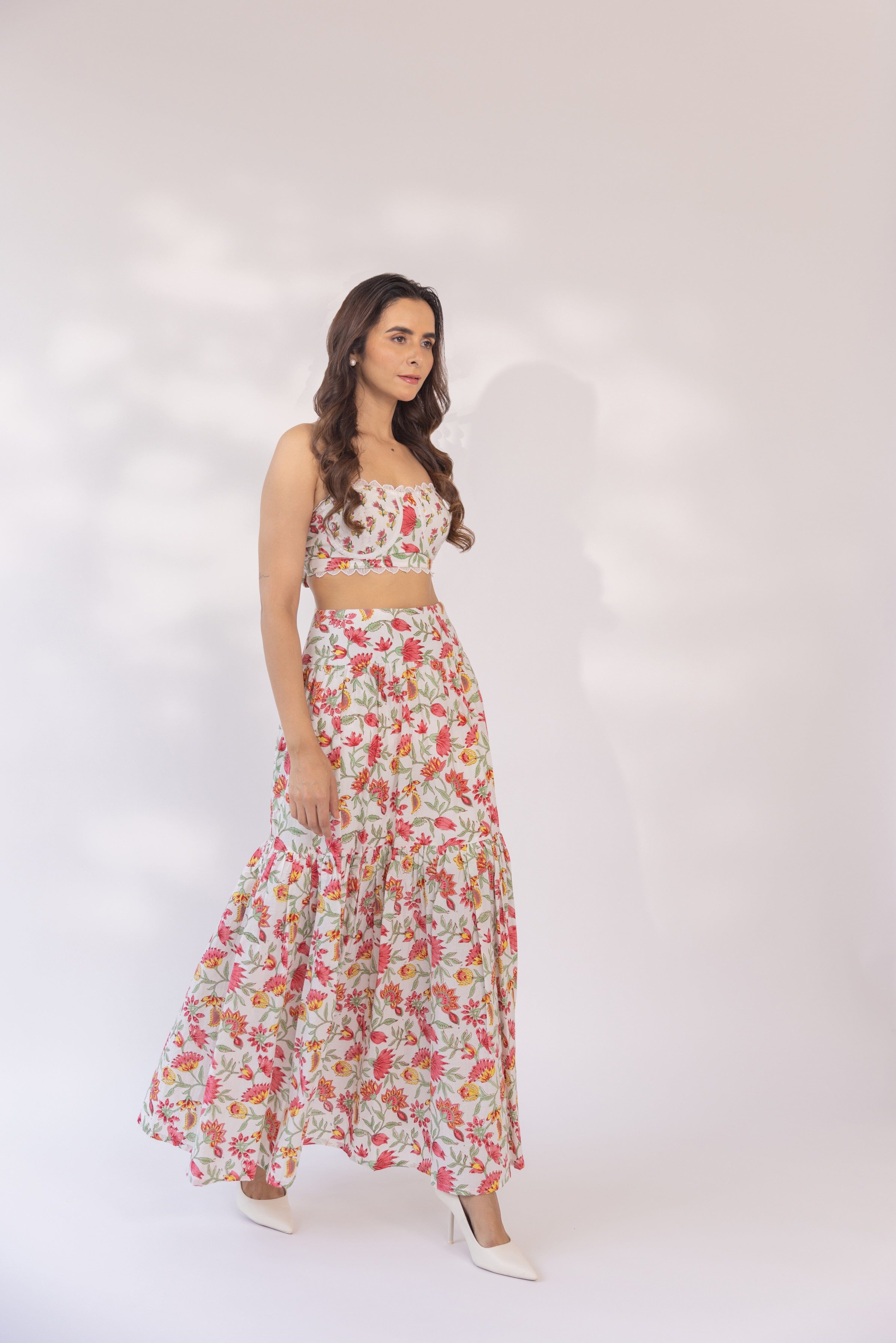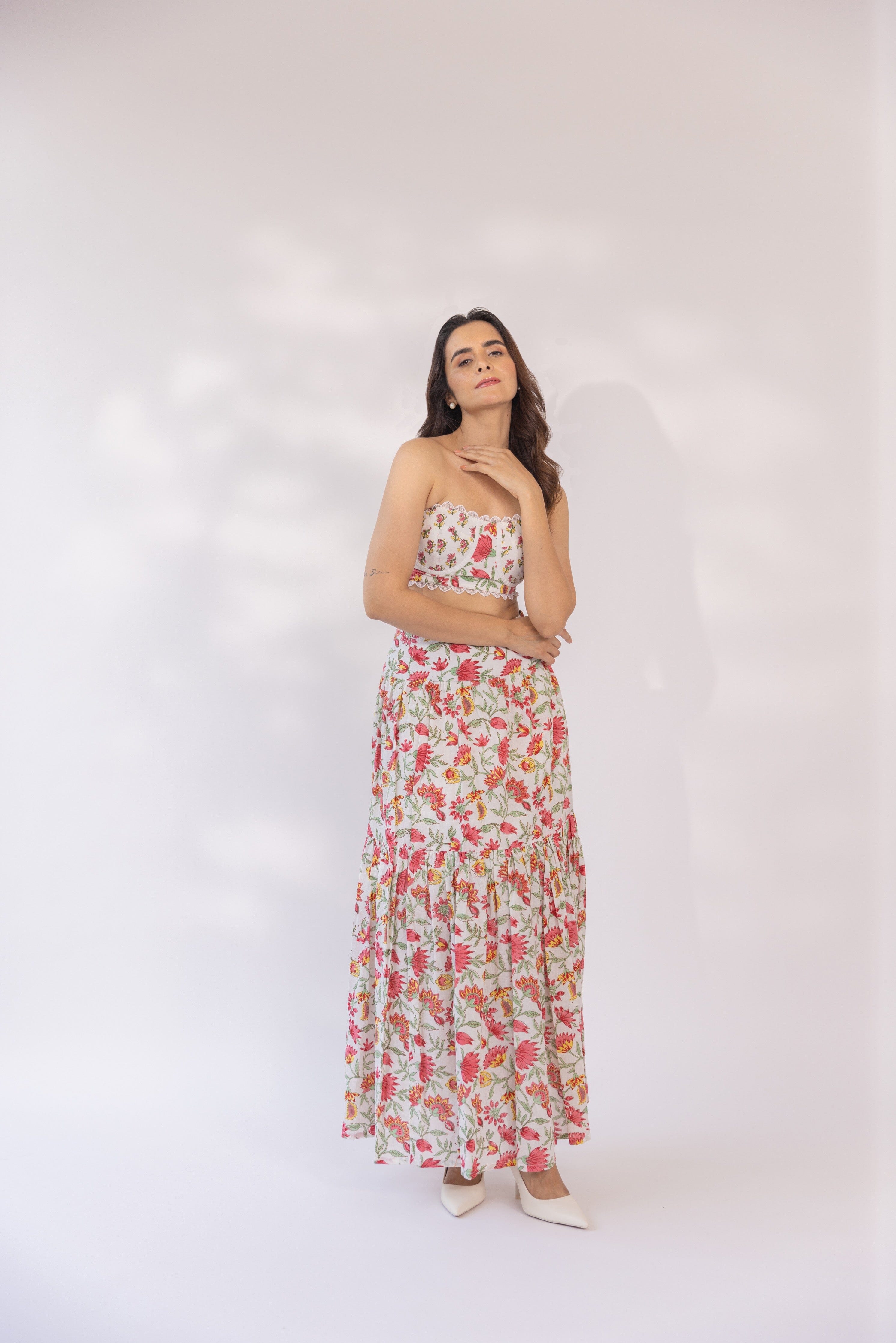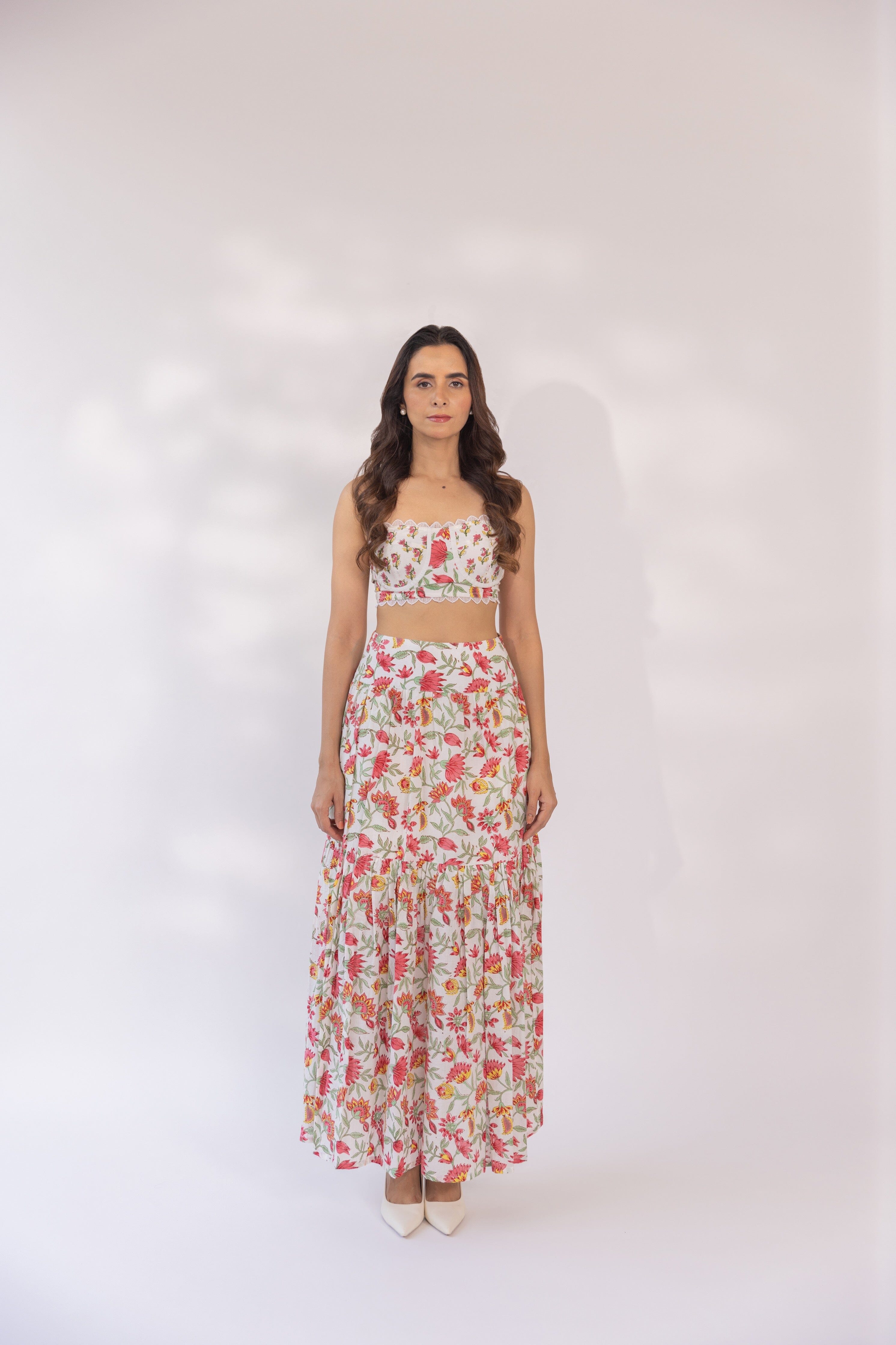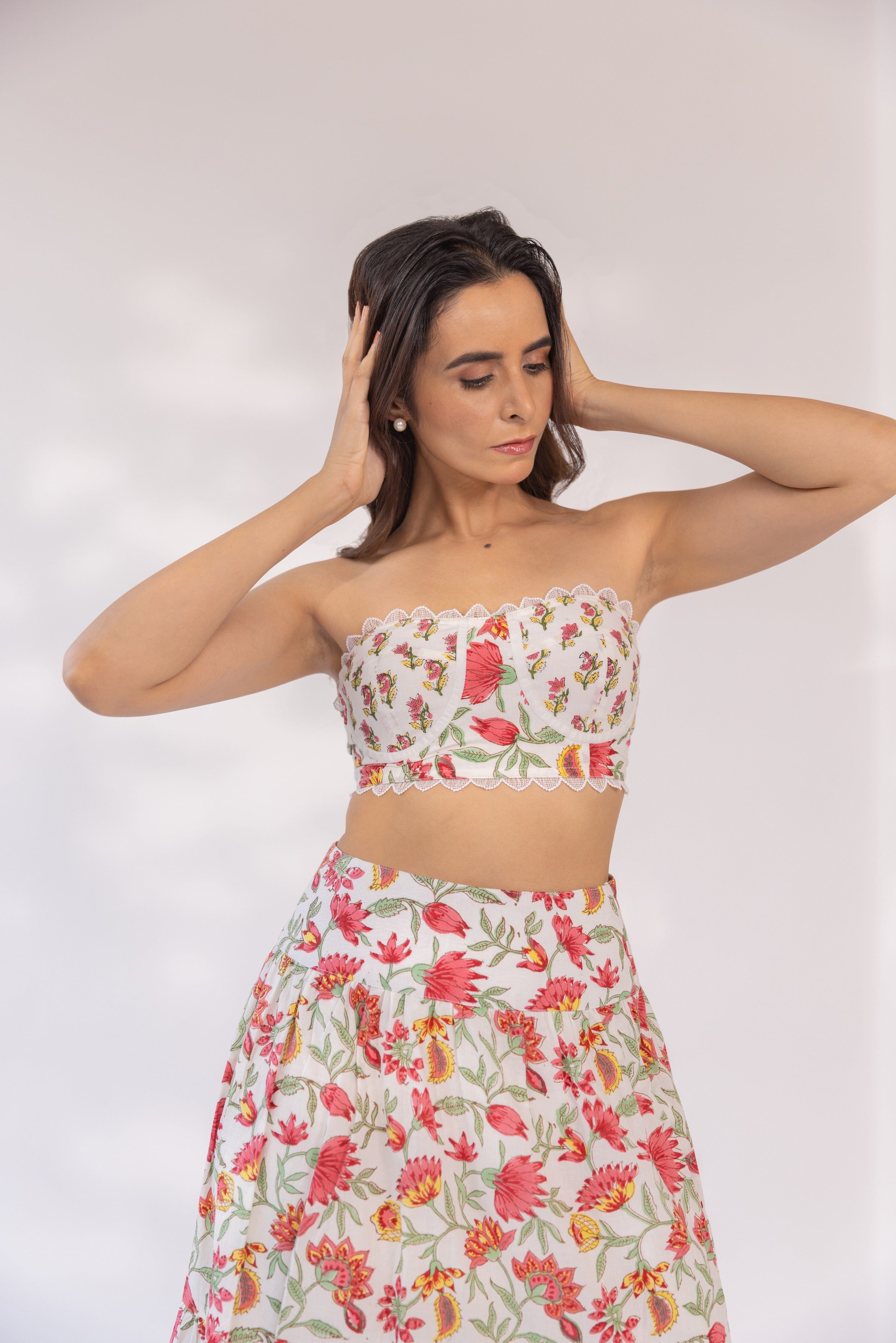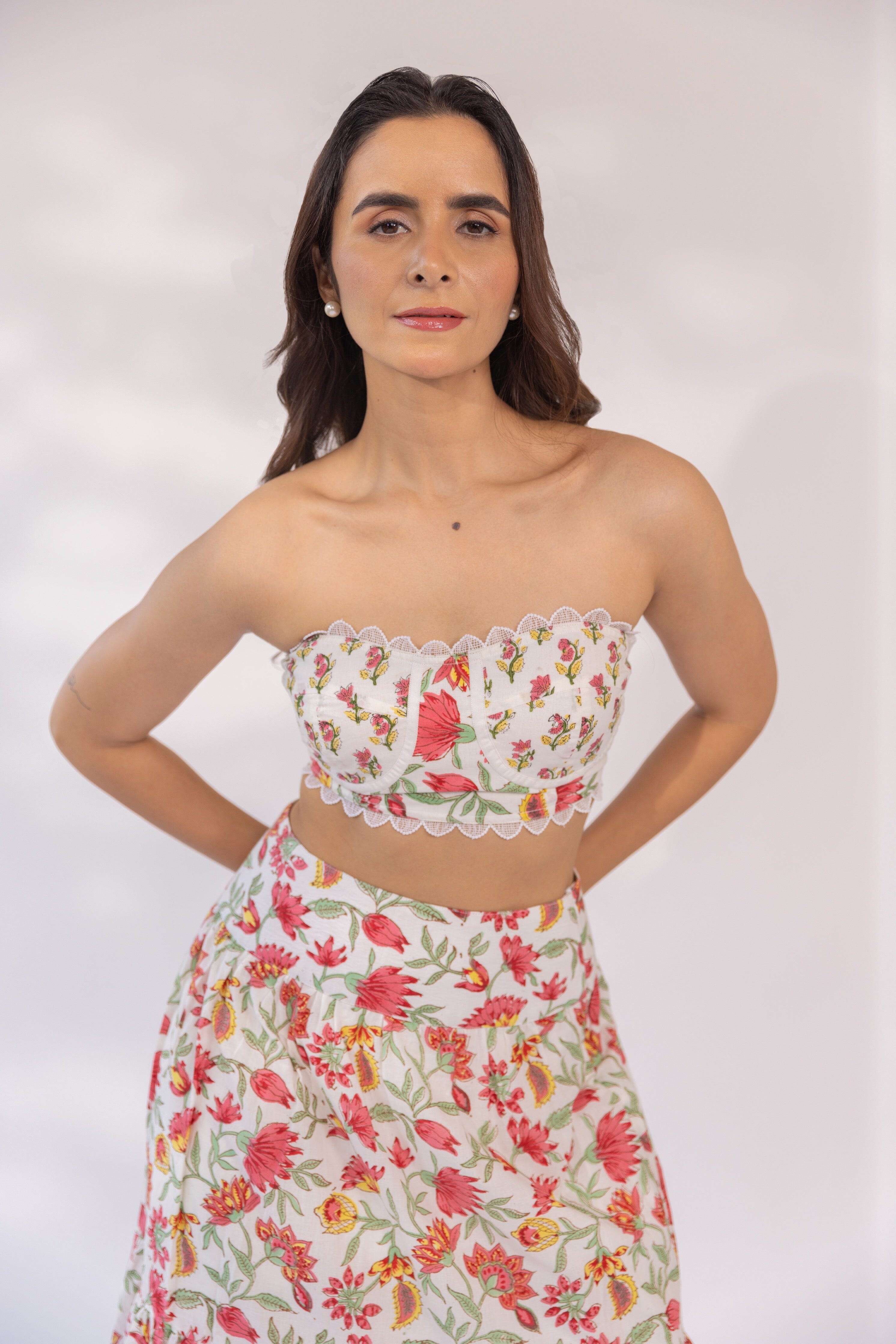 ZULIKA BLOCKPRINTED BUSTIER & MIDI SKIRT