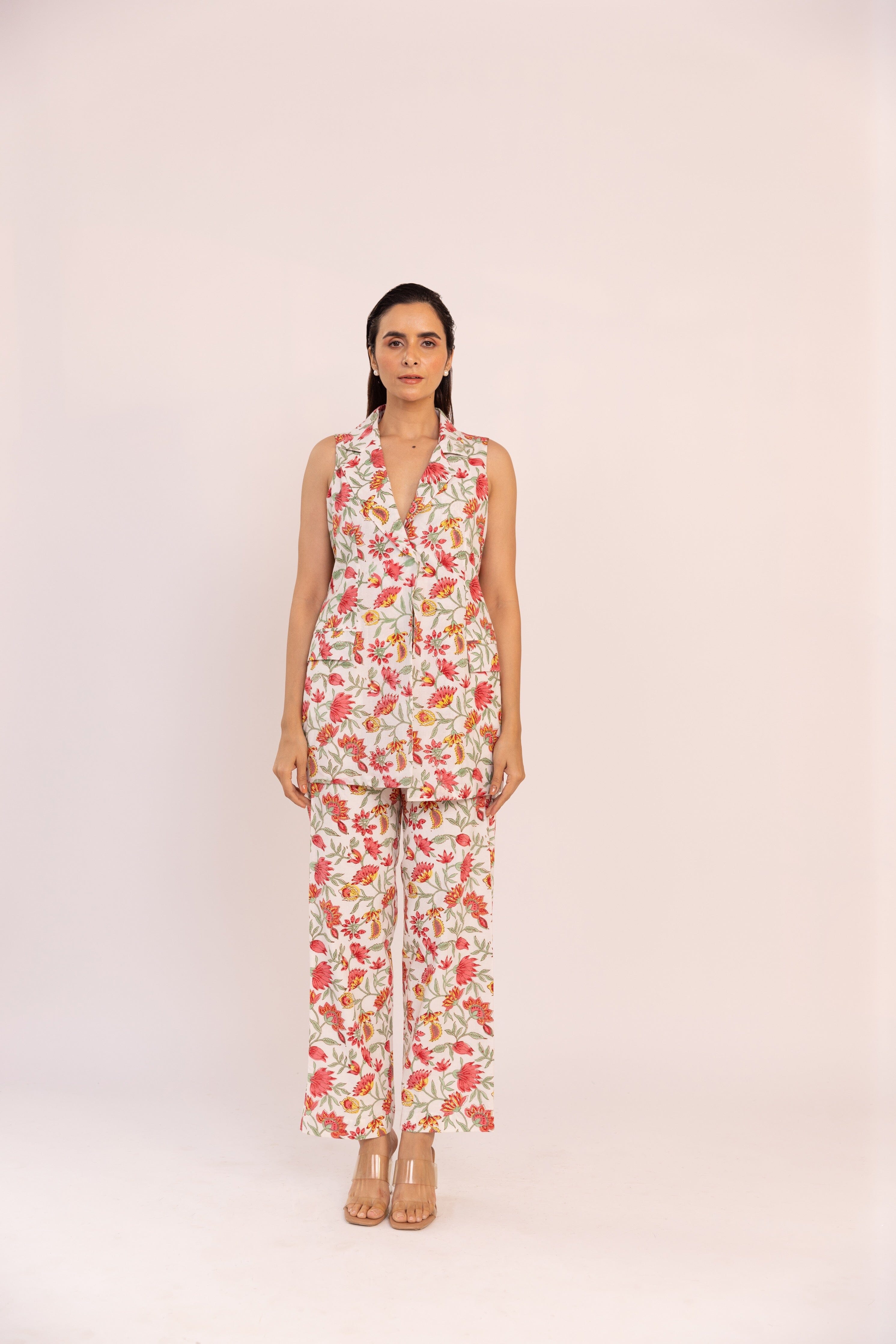 ZULIKA BLOCKPRINTED HALF JACKET & PANTS