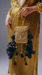 Crafted with care, this statement piece features bold black hangings that create a dramatic, flowing effect with every move. Accentuated by intricate mini bull charms.