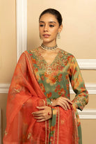 GULBAHAR GREEN FLORAL PRINTED TISSUE KURTA SET