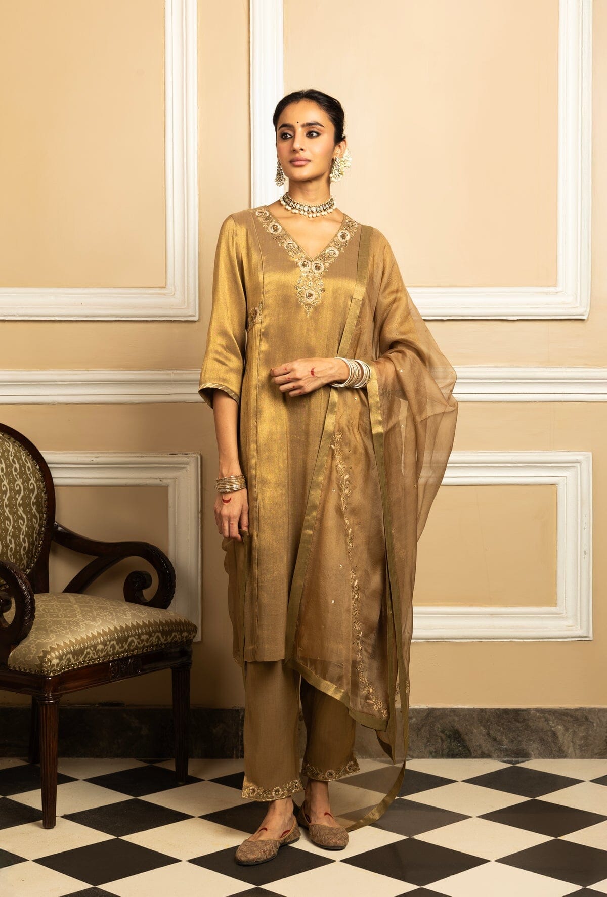 SUHANI GOLD TISSUE KURTA SET