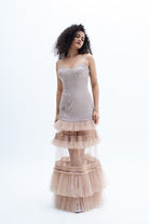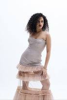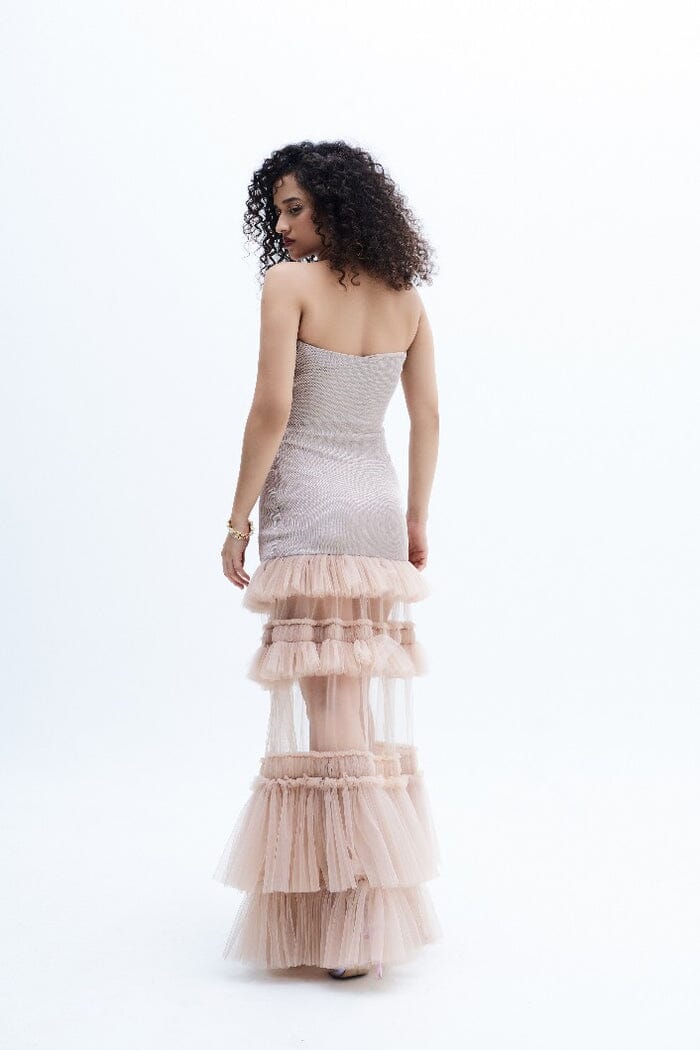 Our stunning styleLY22 dolled up ruffles dress . This chic piece, styled with our structured NET, is ideal for a girls' day out, brunch, birthday parties, and more. Featuring elegant SHIMMER tube dress and a sheer net ruffle design, our styleLY22 effortlessly complements our flare fit creating a refined look that transitions beautifully through the spring-summer collection.Embrace effortless elegance in every moment!