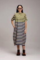 Egg-Shell Green & Blue Dual Striped Dress