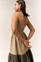 Discover our dual-tone denim corset dress, the ultimate holiday essential that effortlessly transitions from day to night. With its breezy design and easy-to-wear style, this maxi dress features gathered ruffle tiers that create a flattering A-line silhouette, making it perfect for any occasion, be it casual outings or festive celebrations.