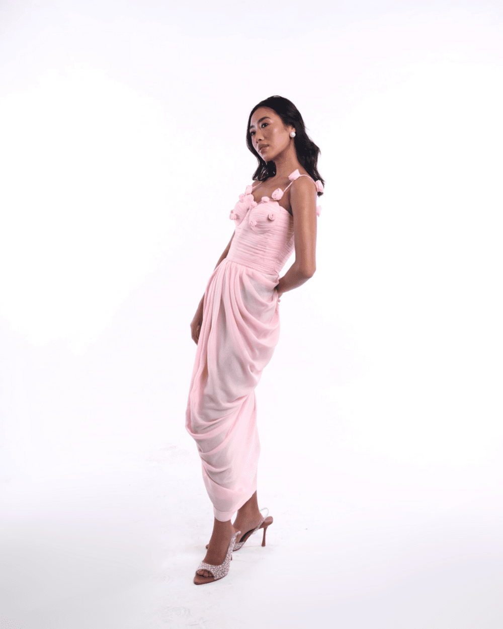 Soft, romantic, and oh-so-sweet. The Rosee Dress channels vintage femininity with a dreamy drape and delicate rosebud details. Its effortlessly graceful, like a love letter in motion.A perfect pick for garden parties, brunches, engagement showers, baby showers, or day weddings. Pair it with pearl earrings, strappy heels or sparkly mules, and let the charm do the rest.