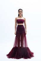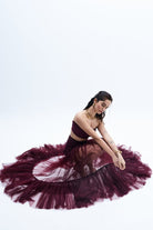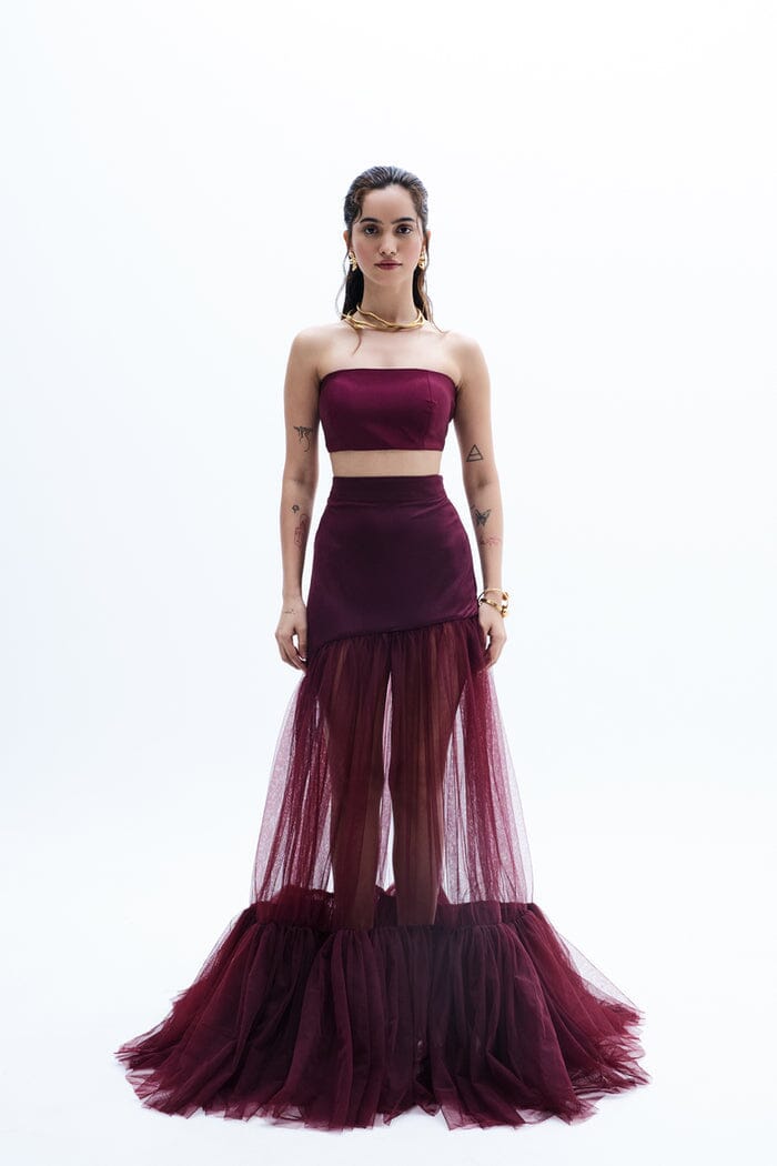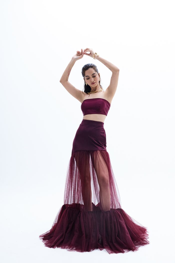 Fabric - Top -maroon Skirt- maroon SOFT NET