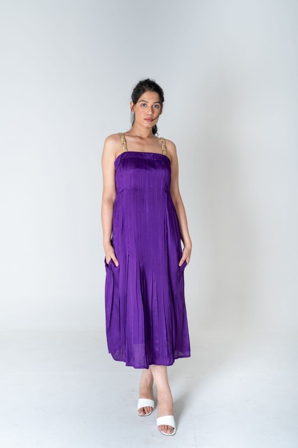 Purple-Pink Braided Sleeve Midi Dress