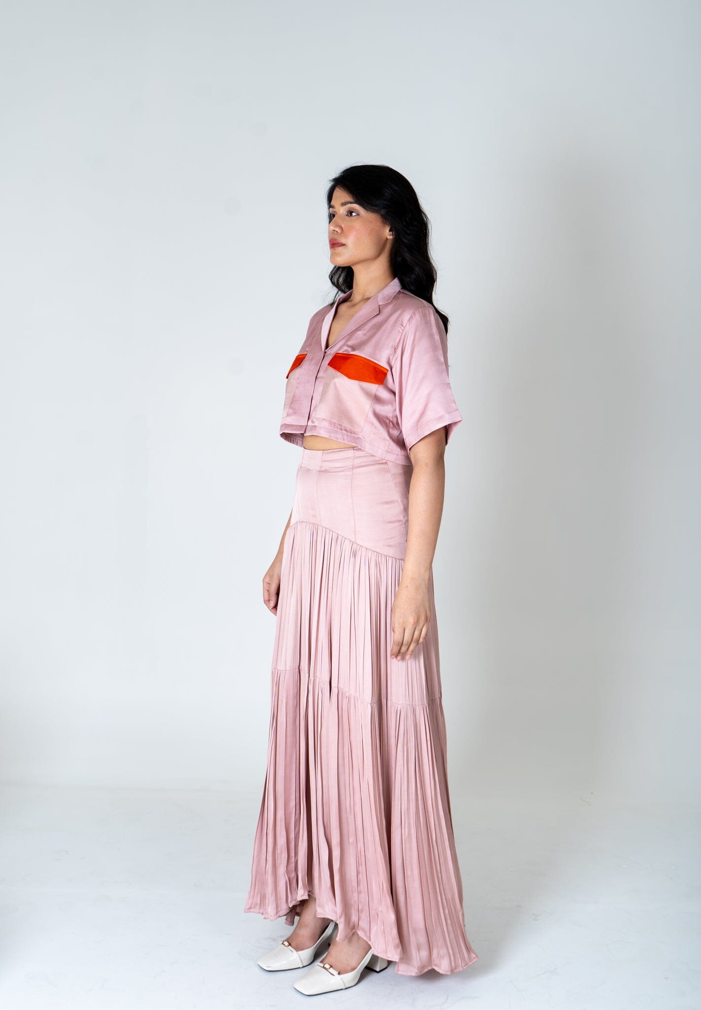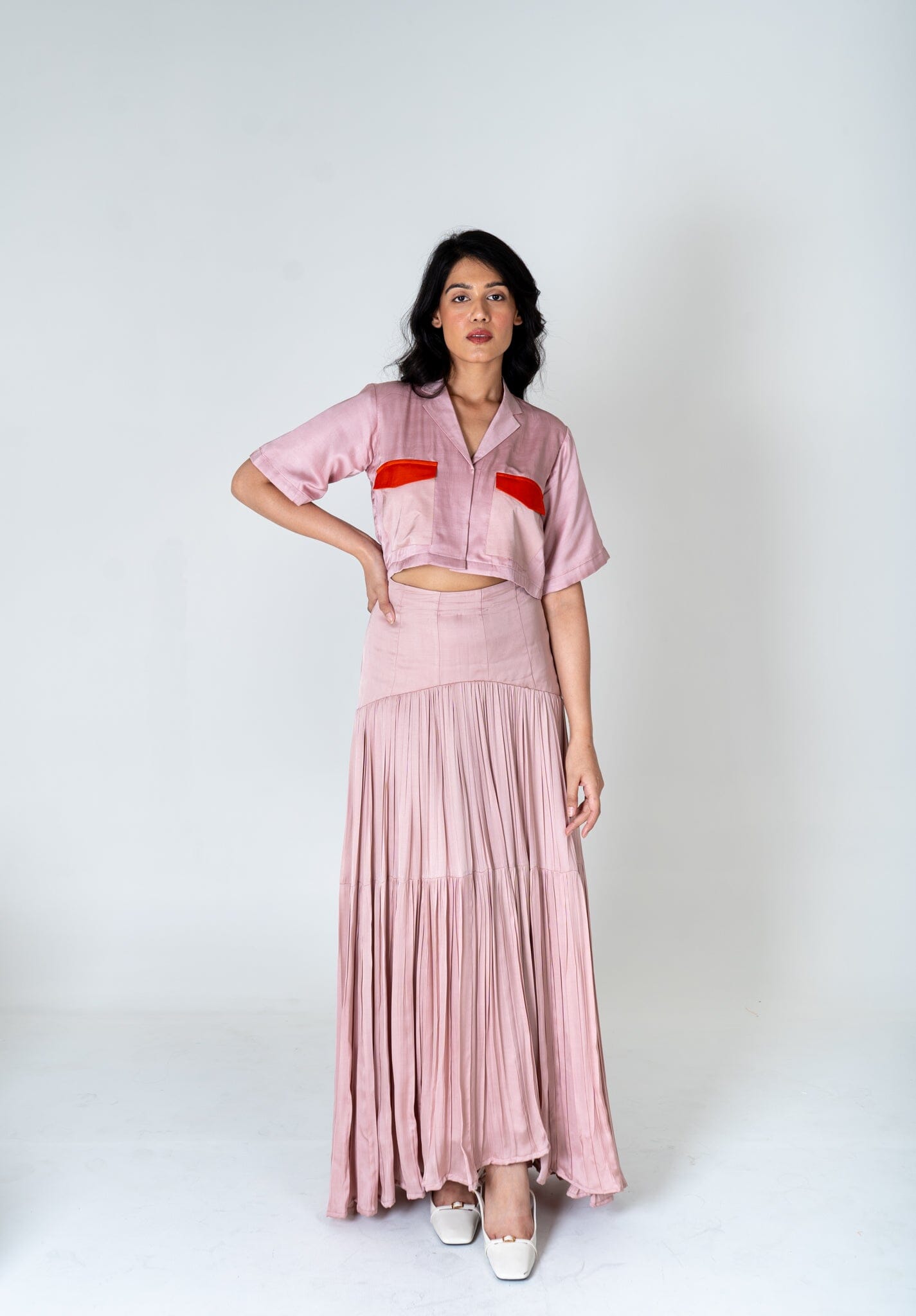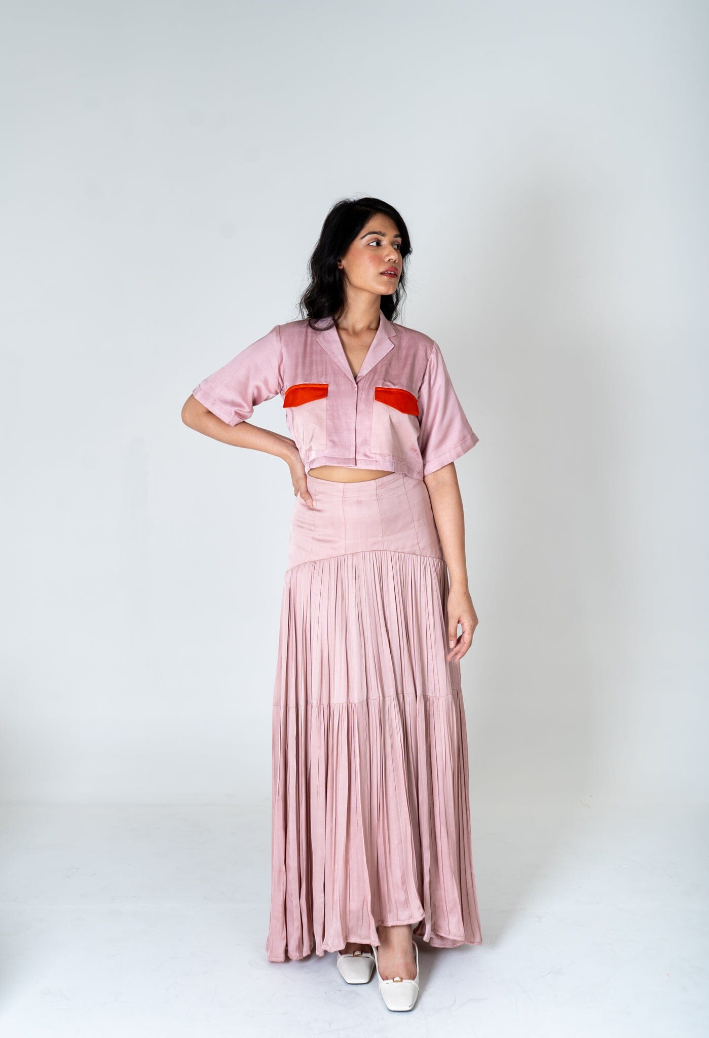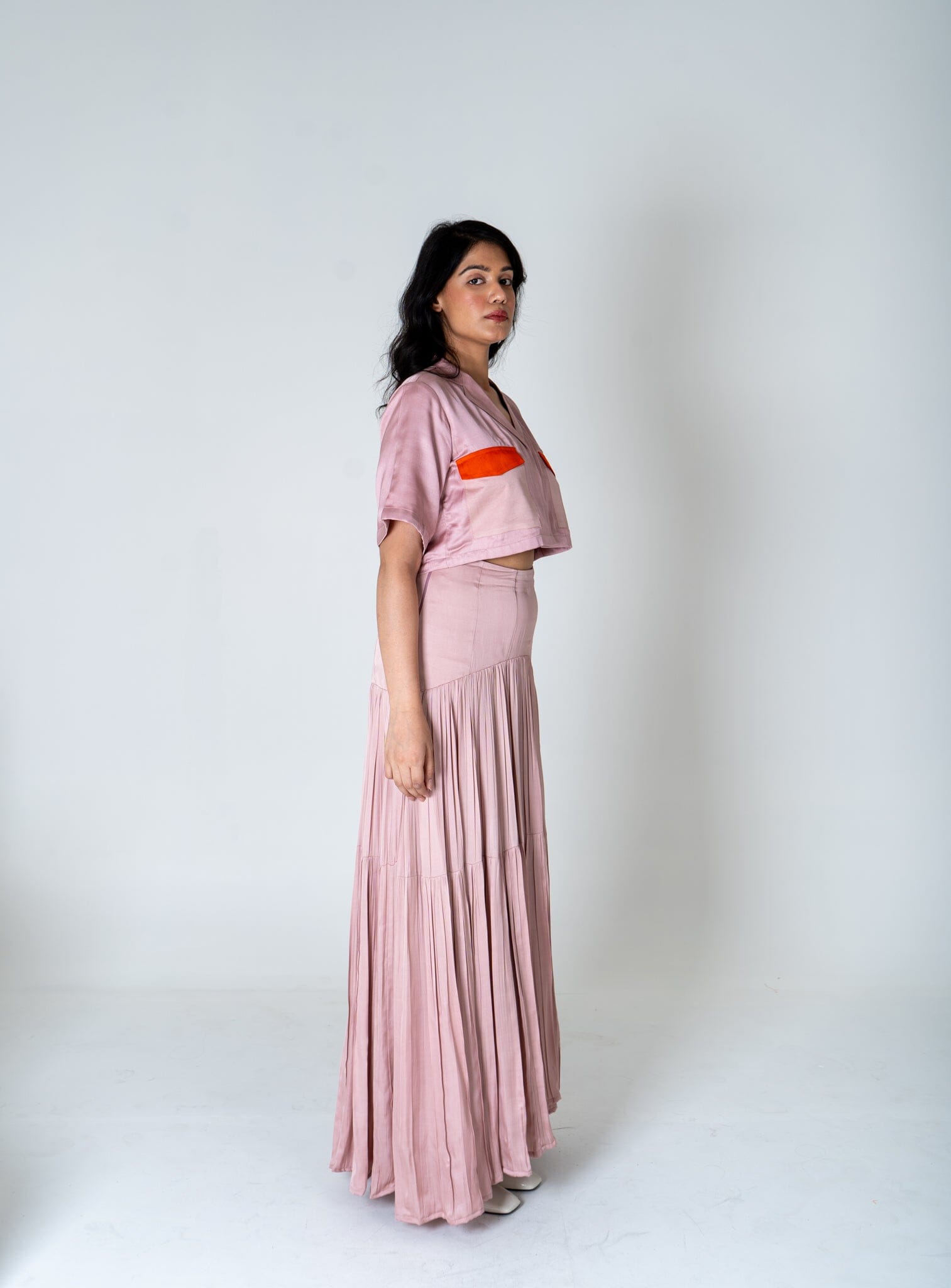 Pink-Orange Color-Blocked Maxi Skirt Set